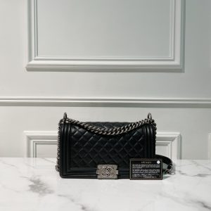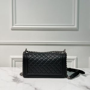 CHANEL MEDIUM BOY HANDBAG, Black/Silver
