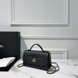 CHANEL 25C TOP HANDLE MINI CLUTCH, Black/Gold