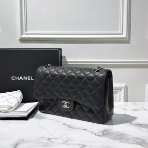 CHANEL LARGE CLASSIC FLAP, Black/Silver