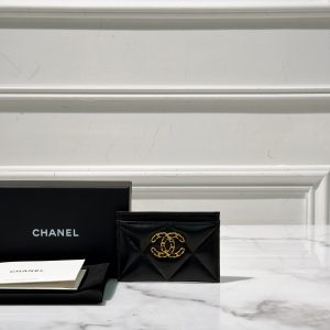 CHANEL 19 CARD HOLDER, Black/Gold