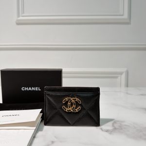 CHANEL 19 CARD HOLDER, Black/Gold