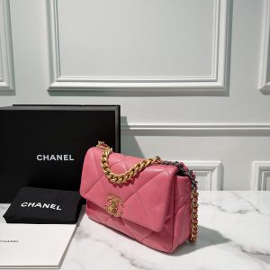 CHANEL SMALL 19 BAG, Pink/Gold