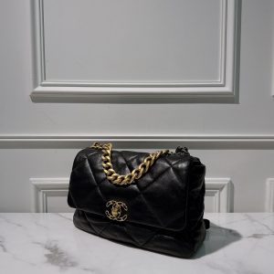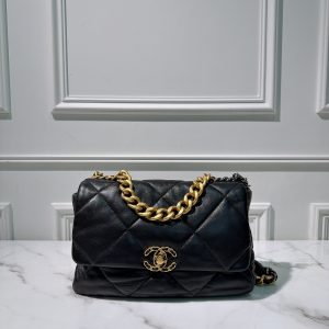 CHANEL MEDIUM 19 BAG, Black/Gold