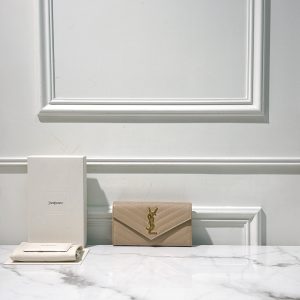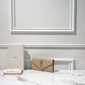 YSL LONG WALLET, Beige/Gold