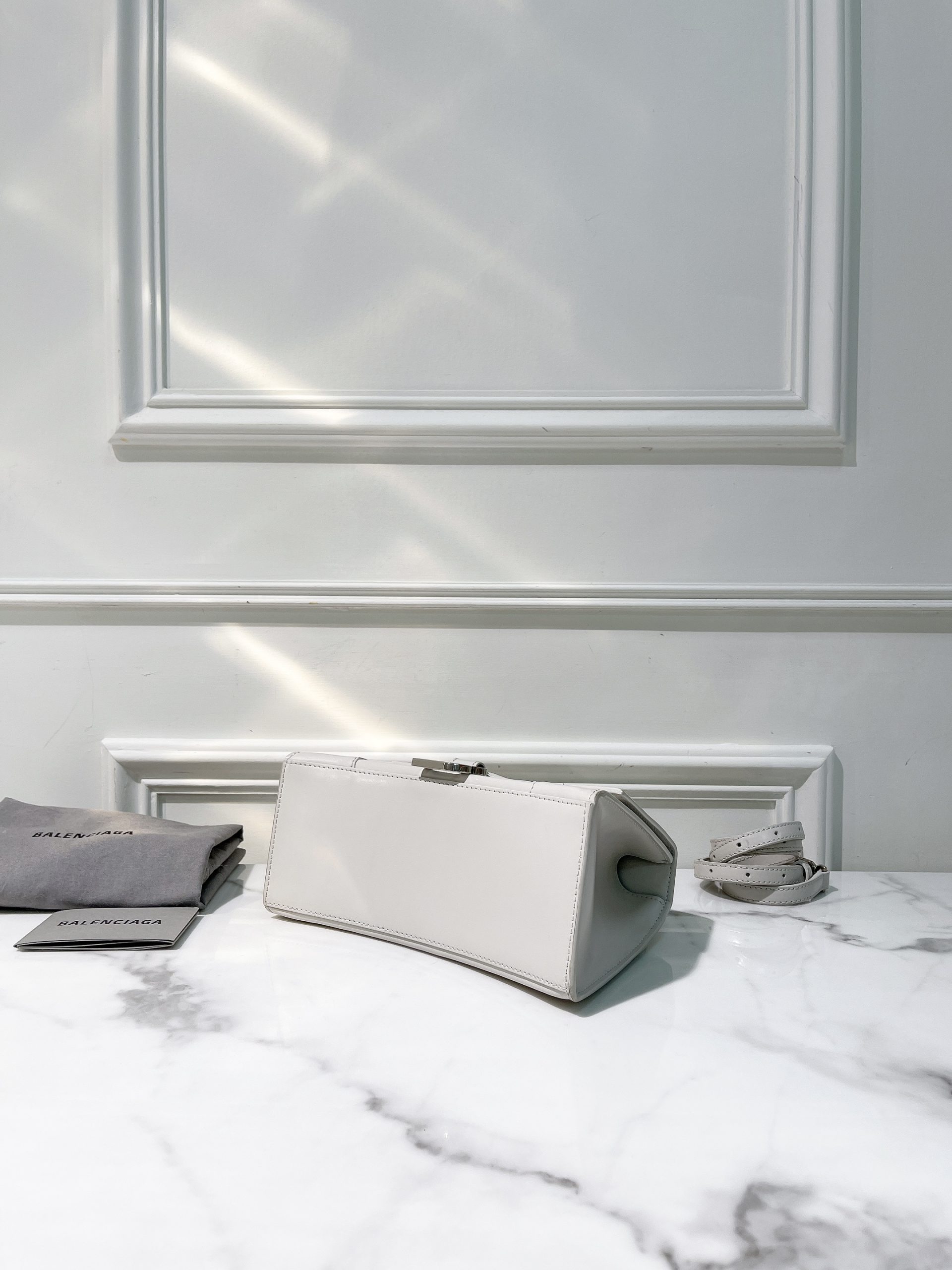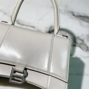 BALENCIAGA HOURGLASS SMALL, White/Silver