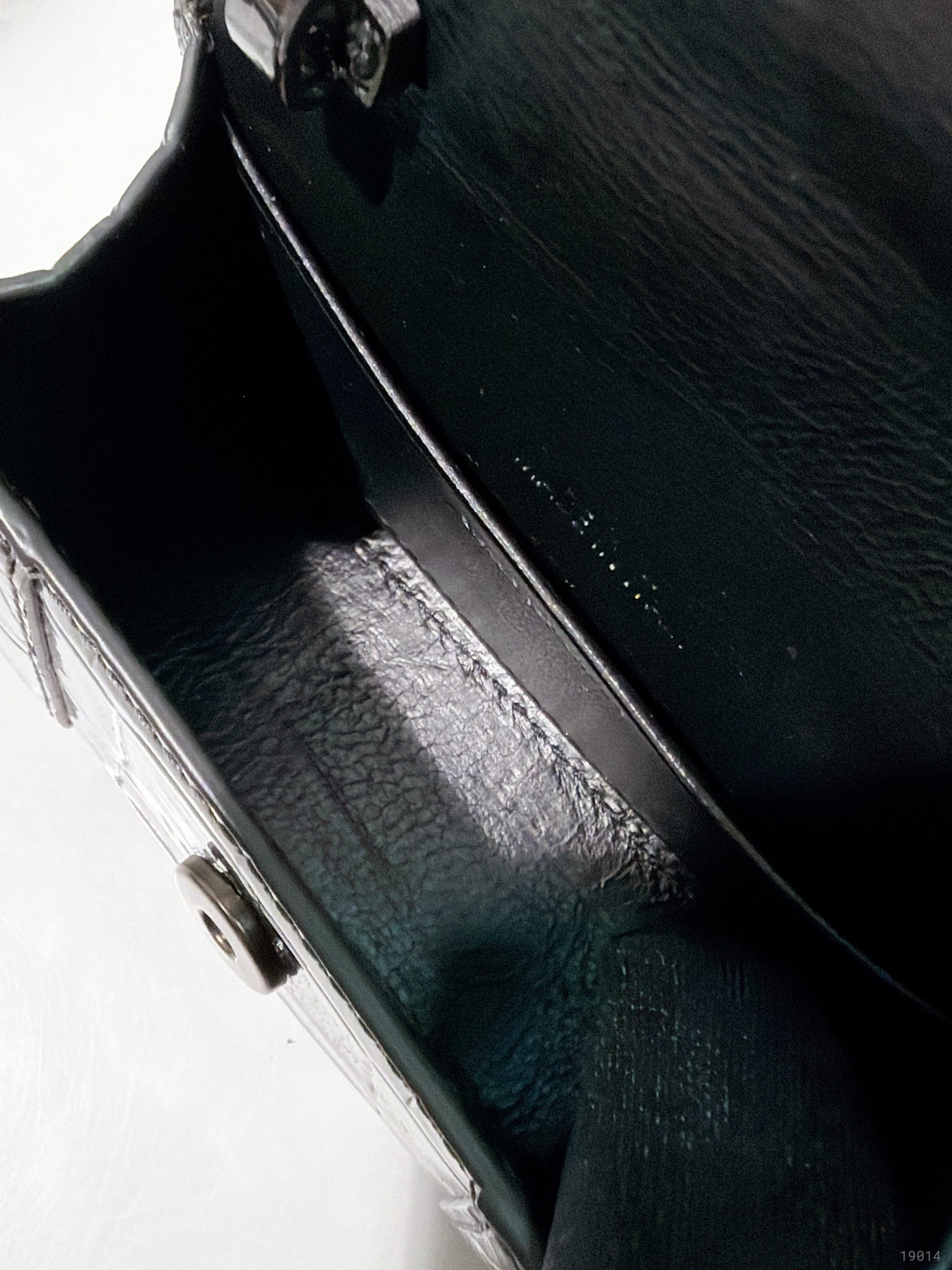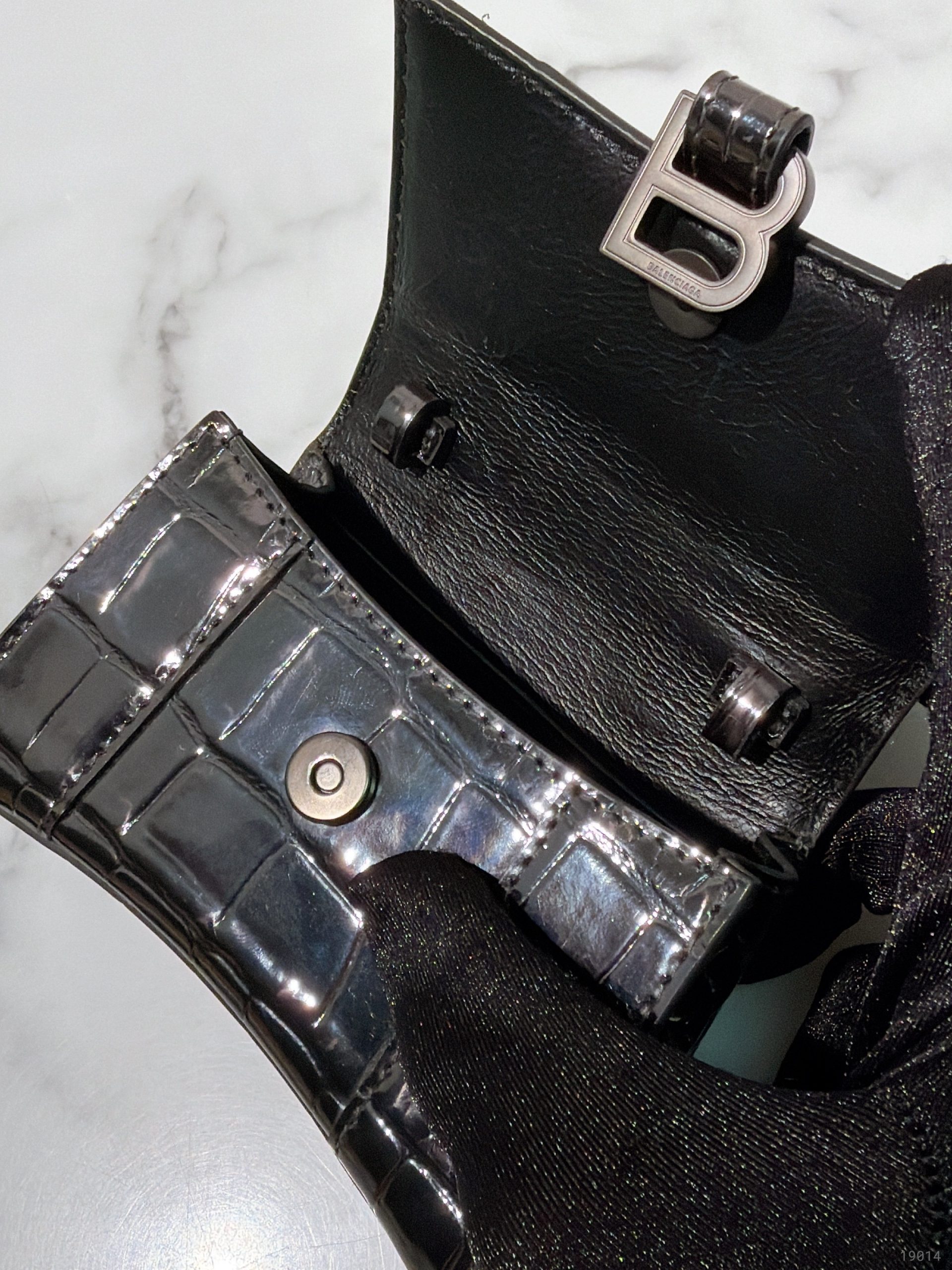 - Material: Crocodile-embossed shiny calfskin