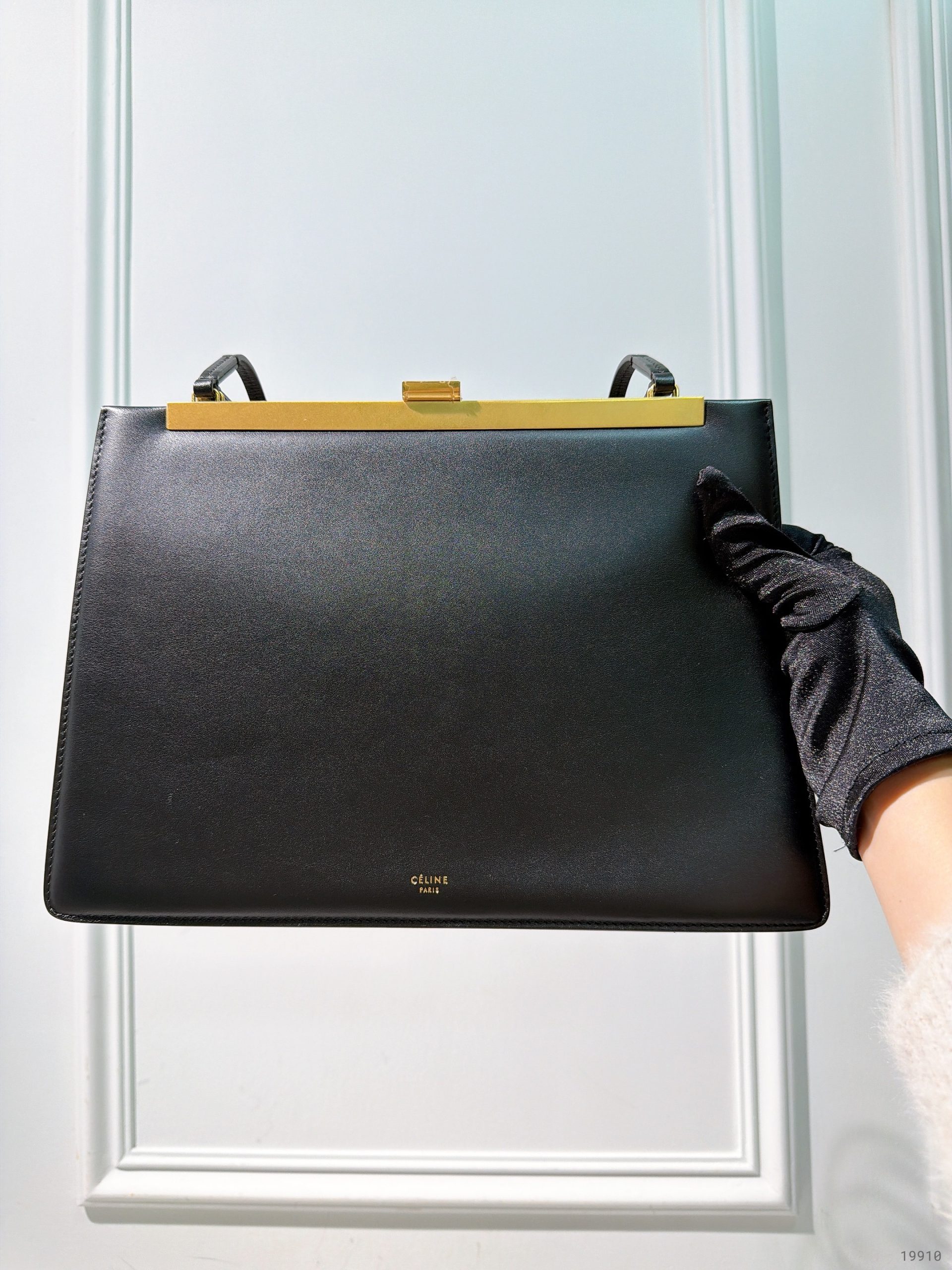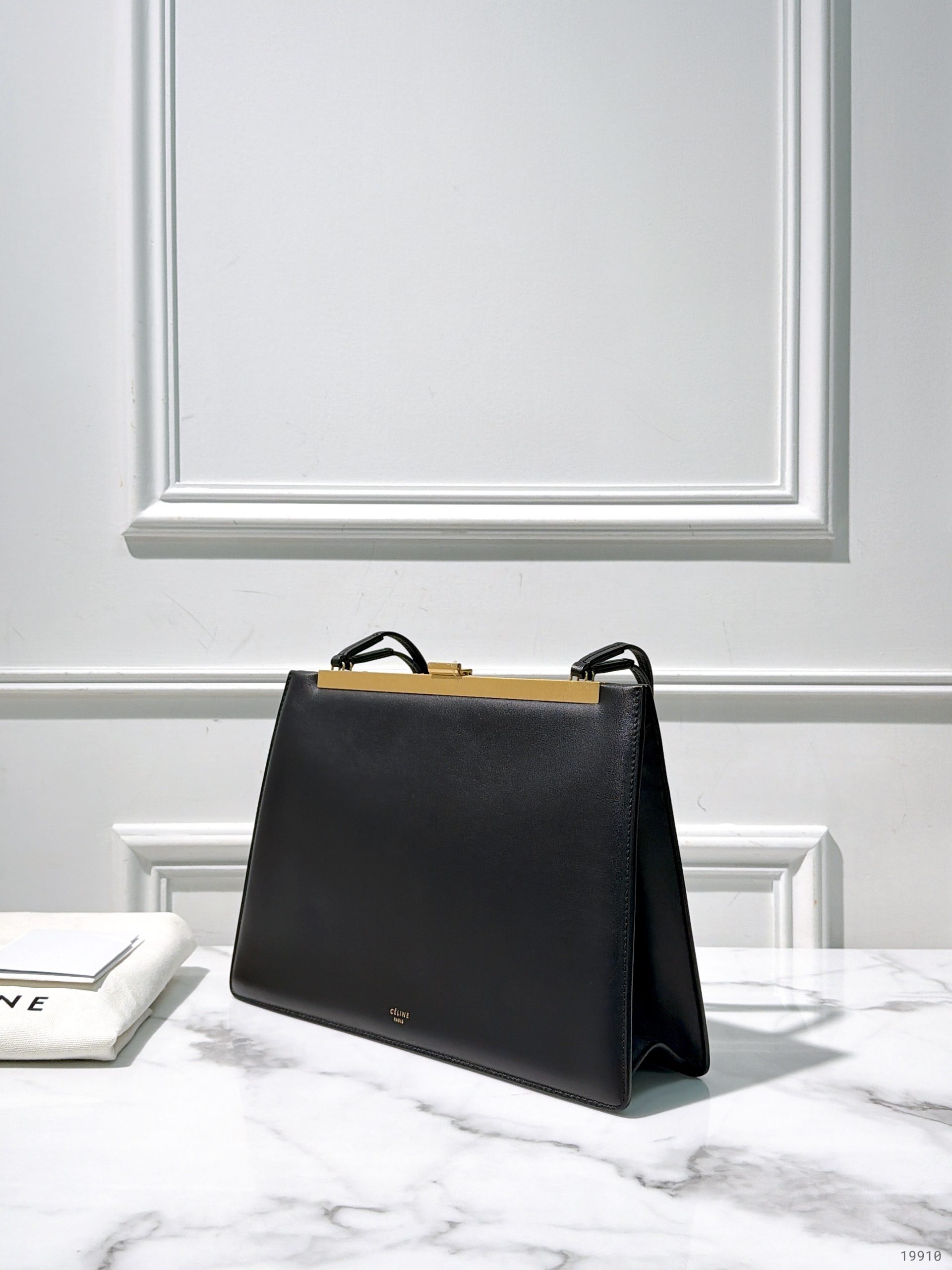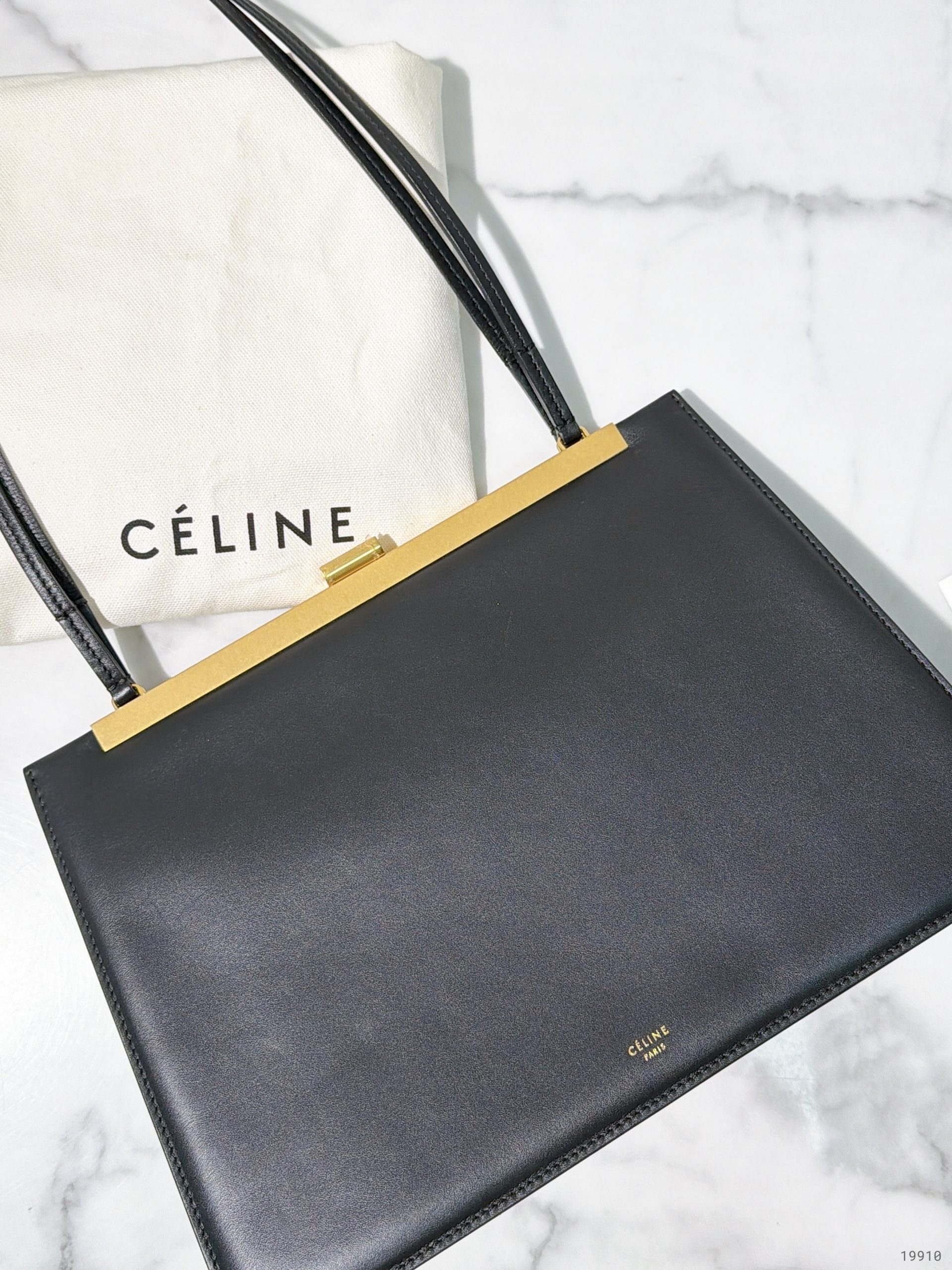 CELINE MEDIUM CLASP SHOULDER BAG, Black/Gold
