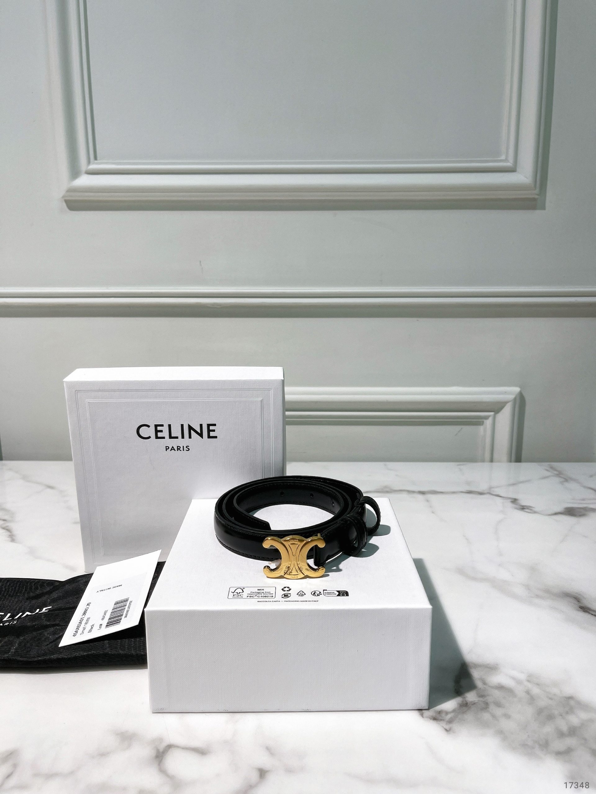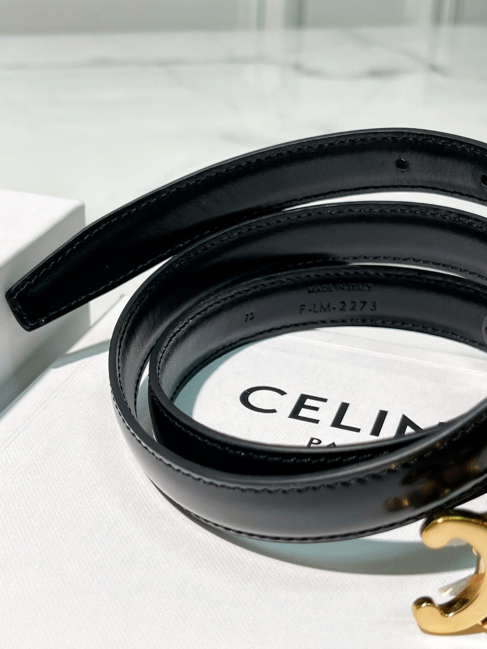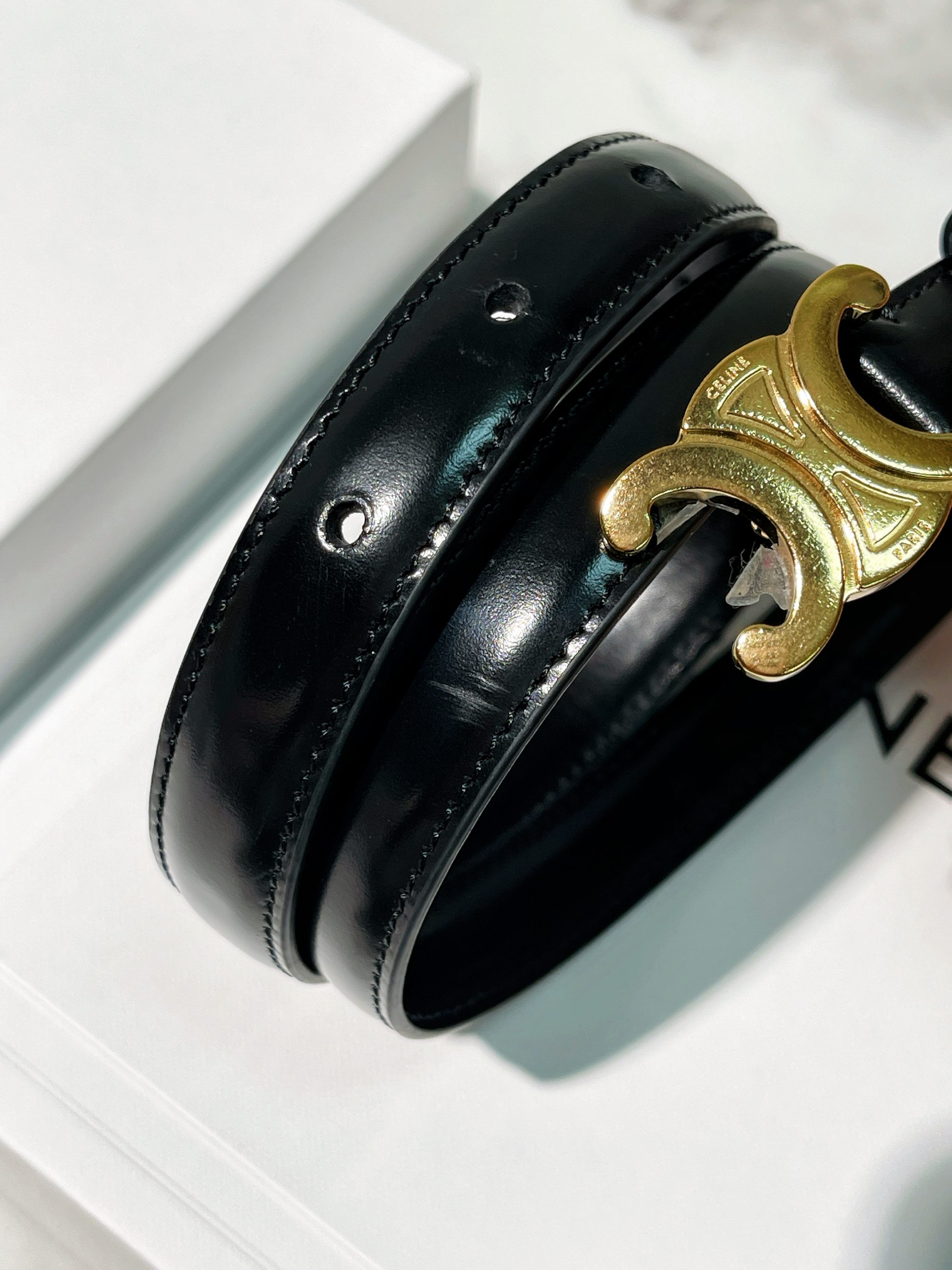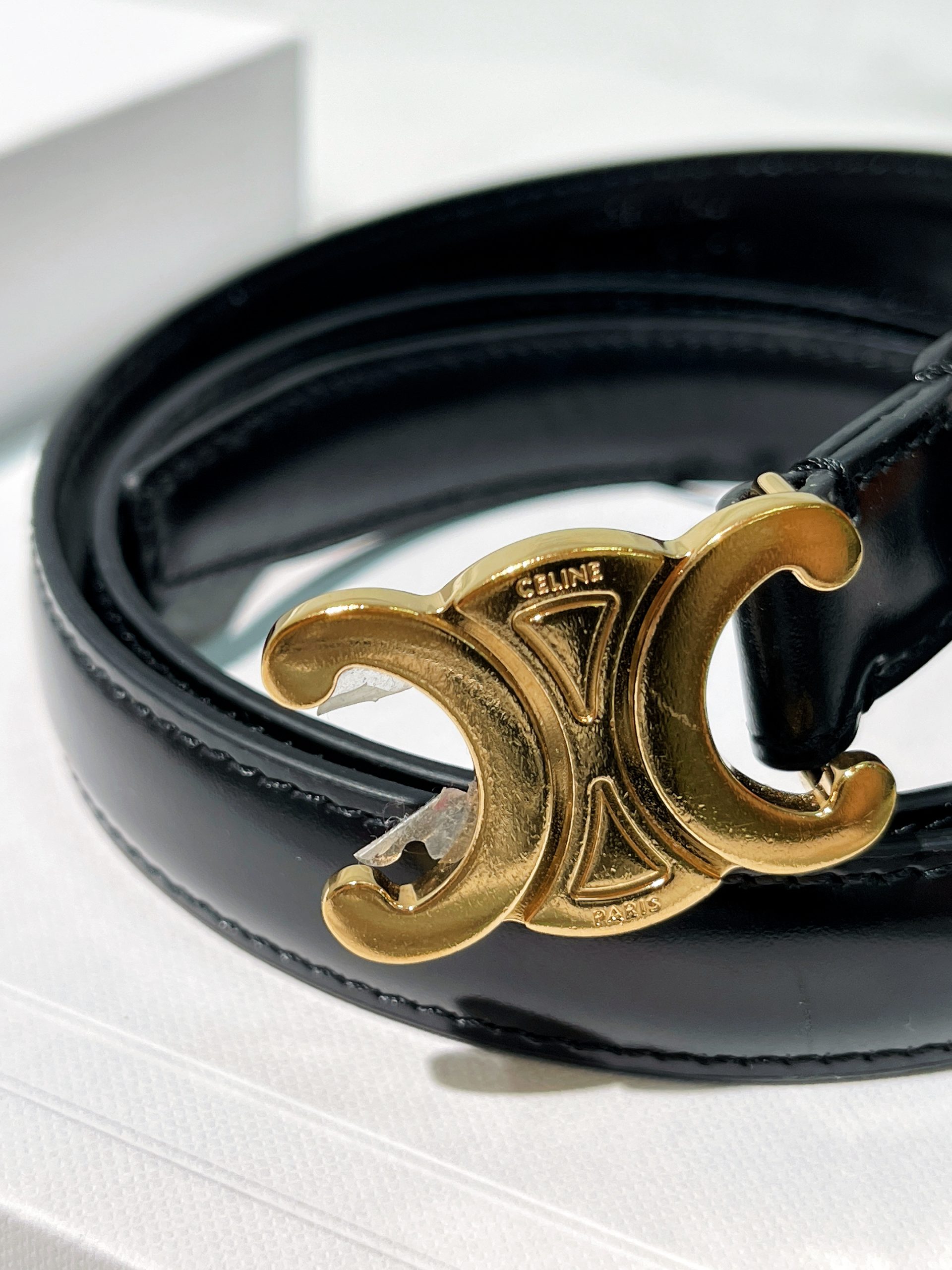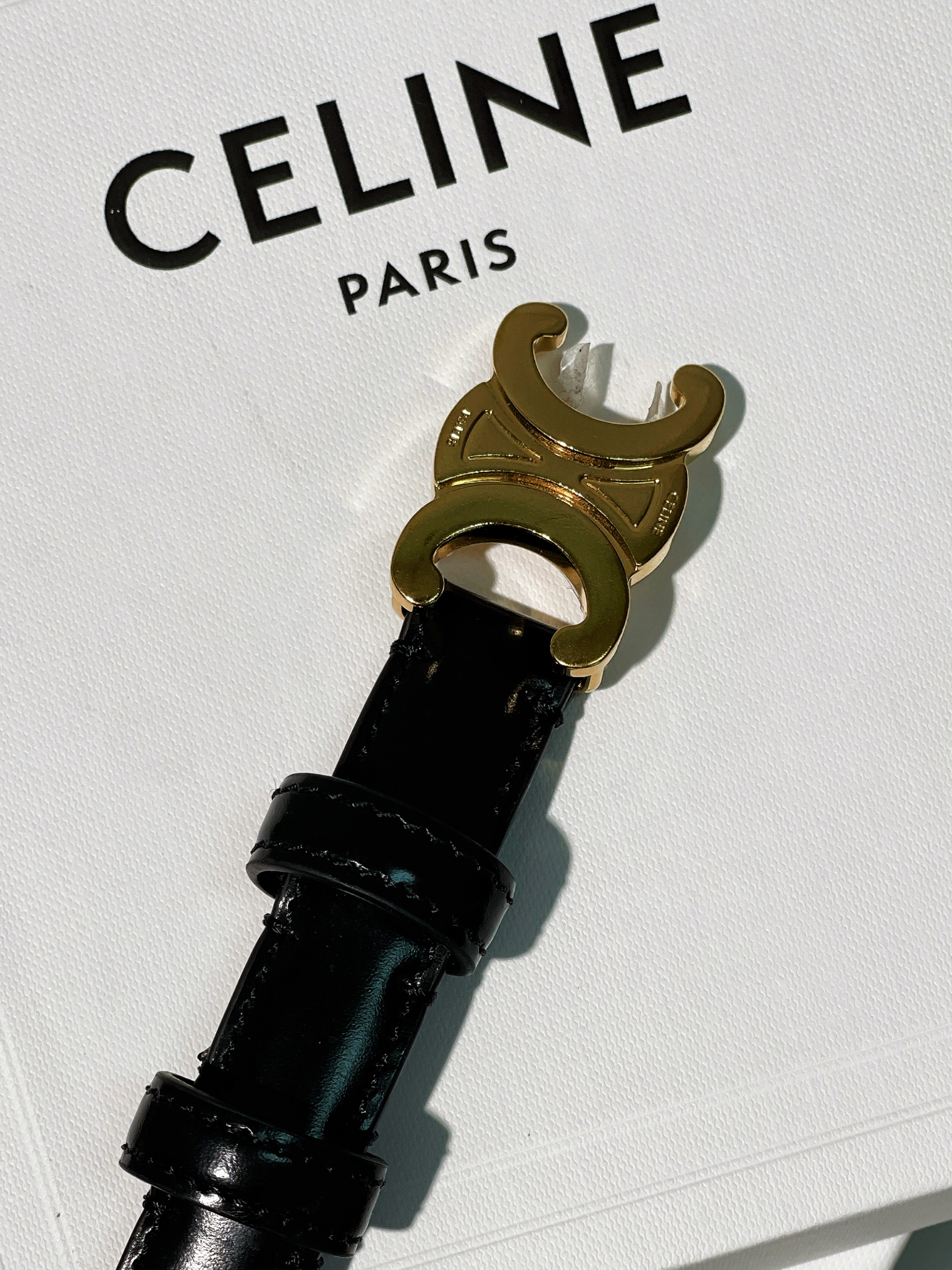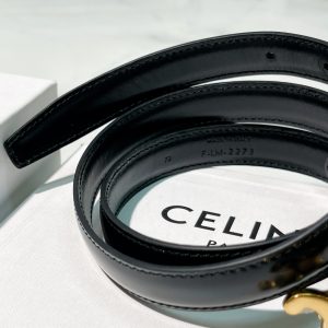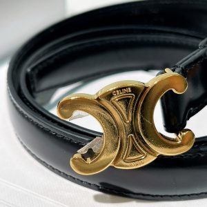 / CELINE SMALL 18MM TRIOMPHE BELT, Black/Gold