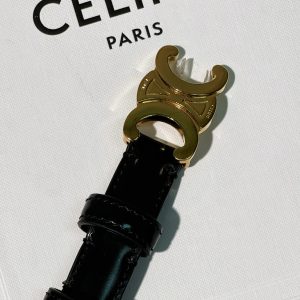 CELINE SMALL 18MM TRIOMPHE BELT, Black/Gold