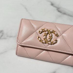 CHANEL 19 CARD HOLDER, Pink/Gold