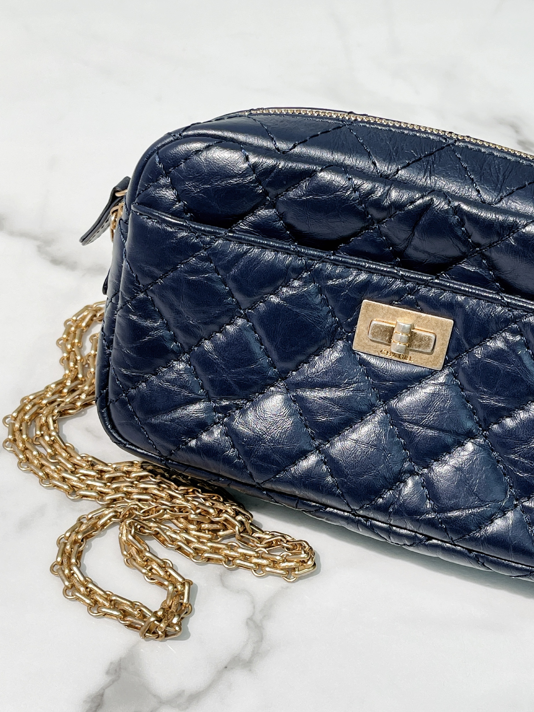 CHANEL 2.55 CAMERA BAG, Midnight Blue/Gold
