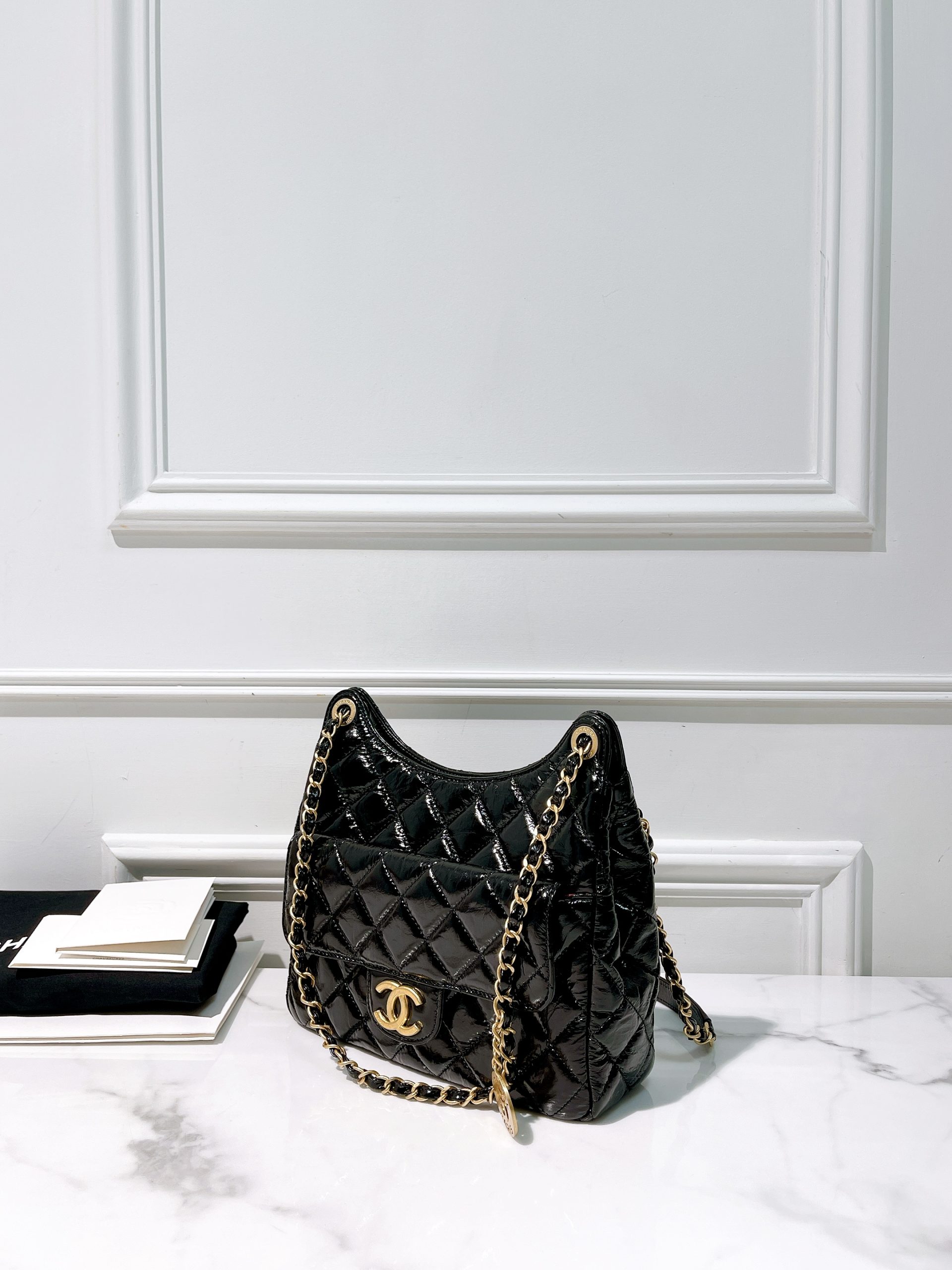 CHANEL 23B HOBO, Black/Gold
