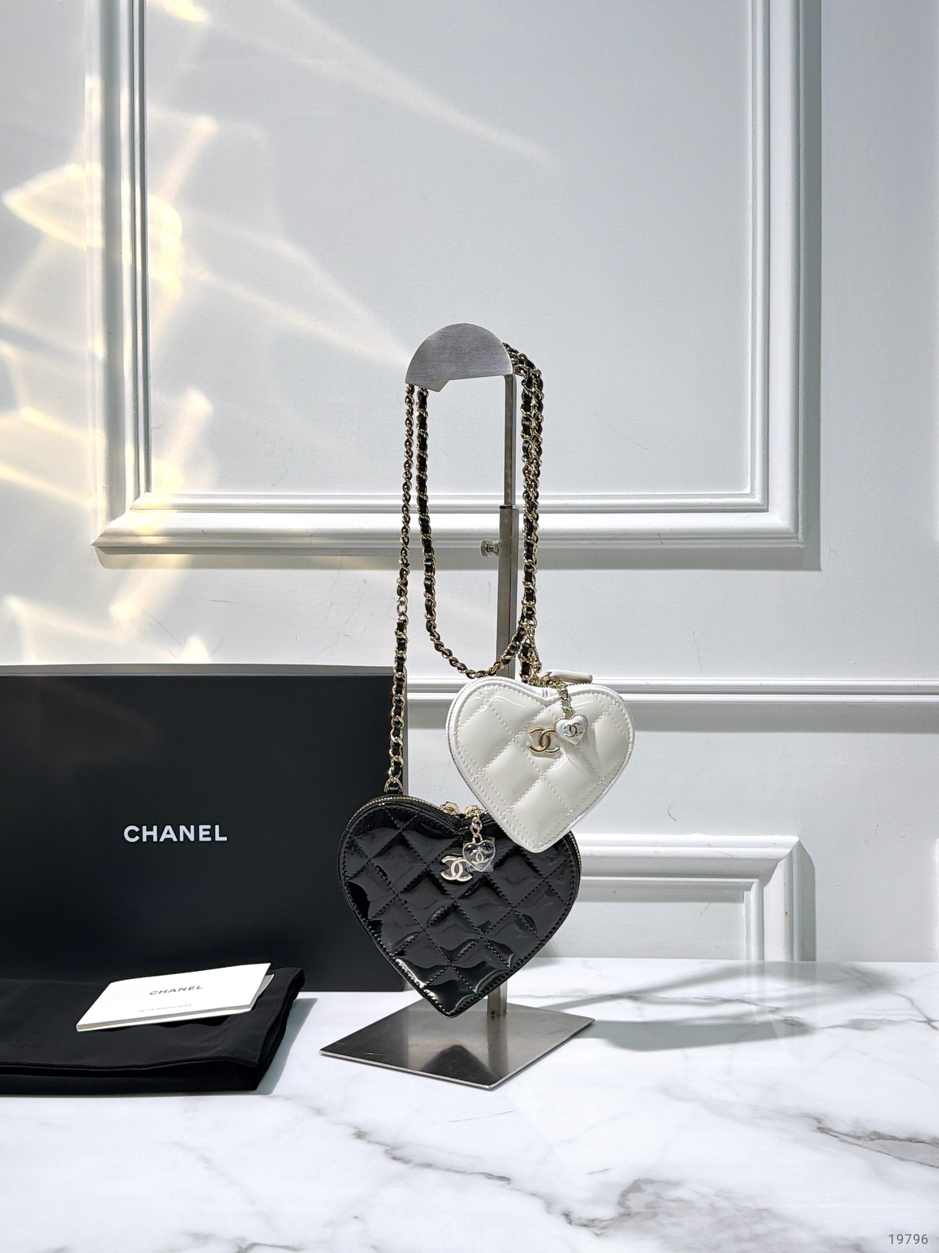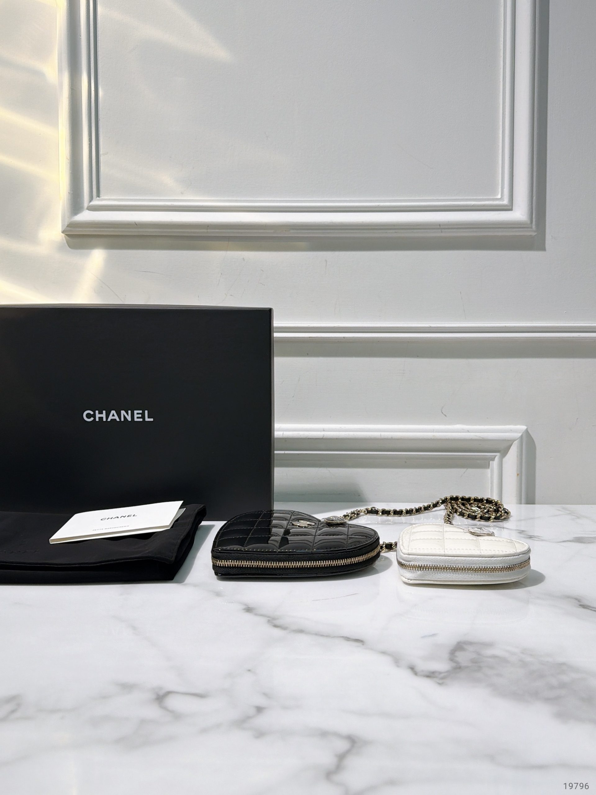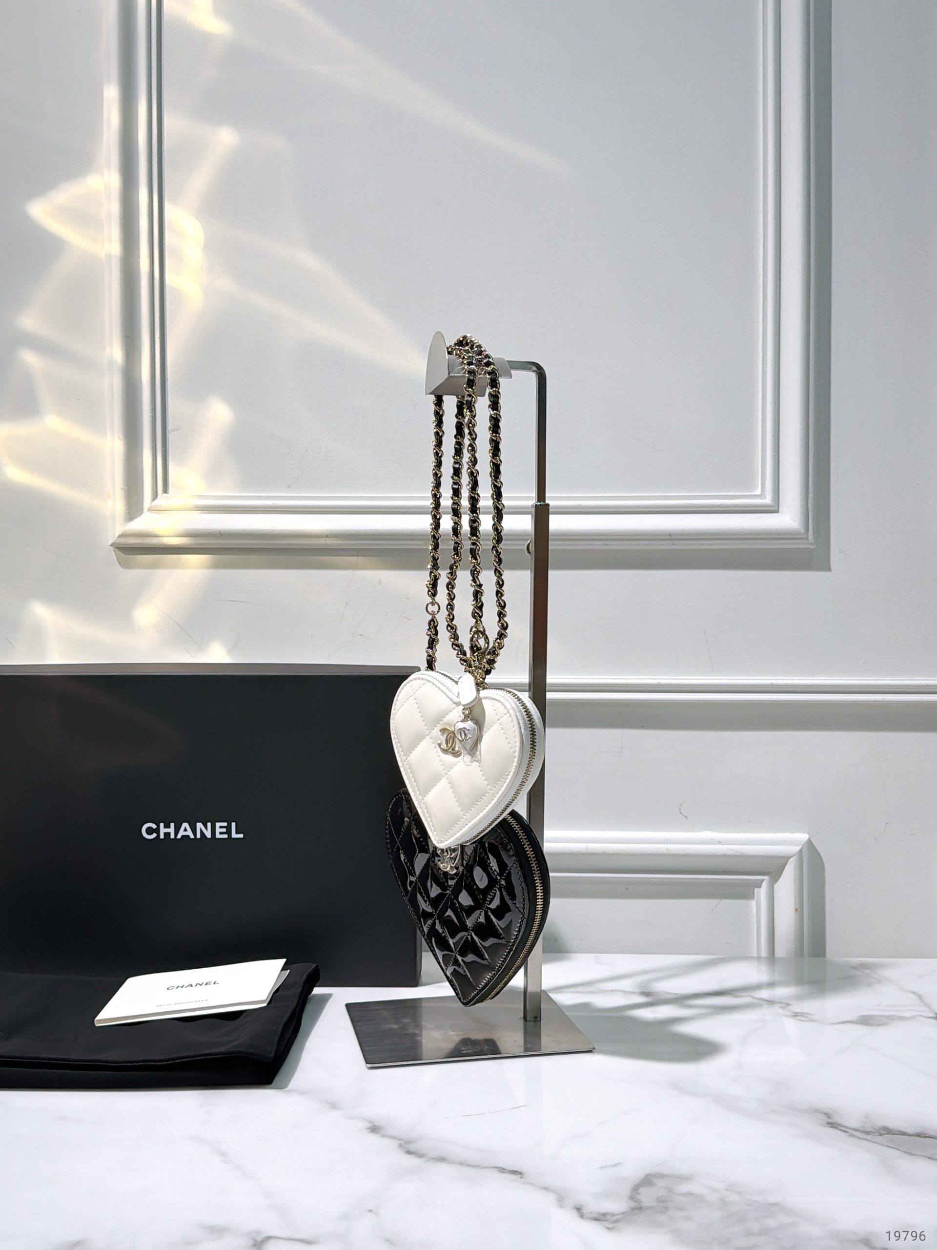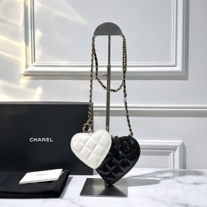 CHANEL 23S DOUBLE HEART CLUTH, Black/White
