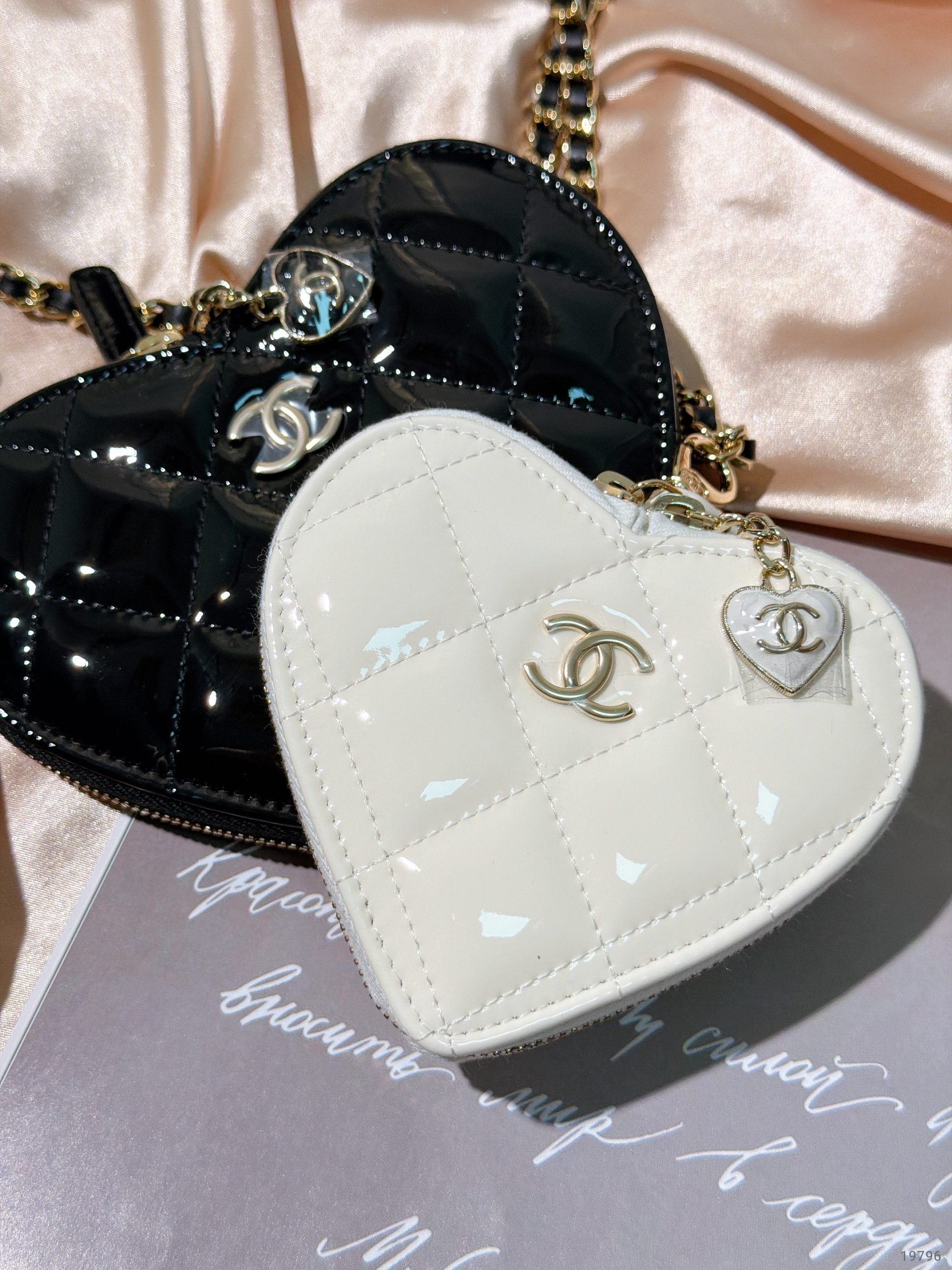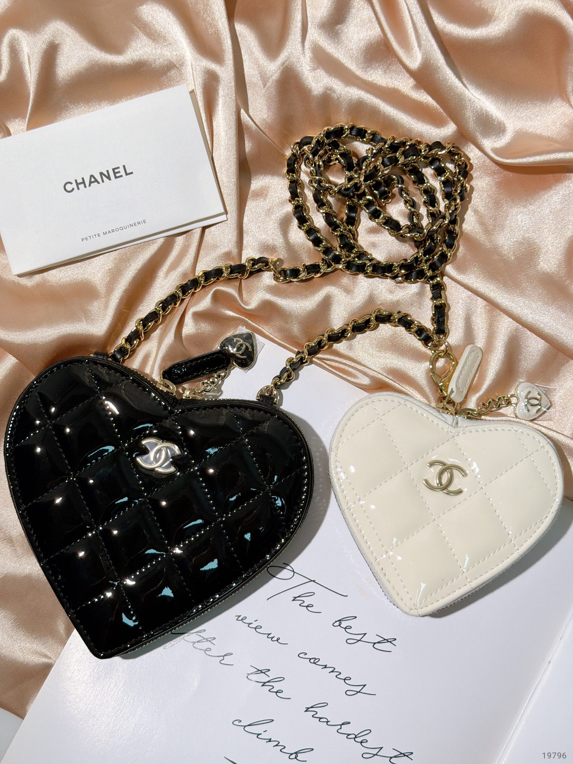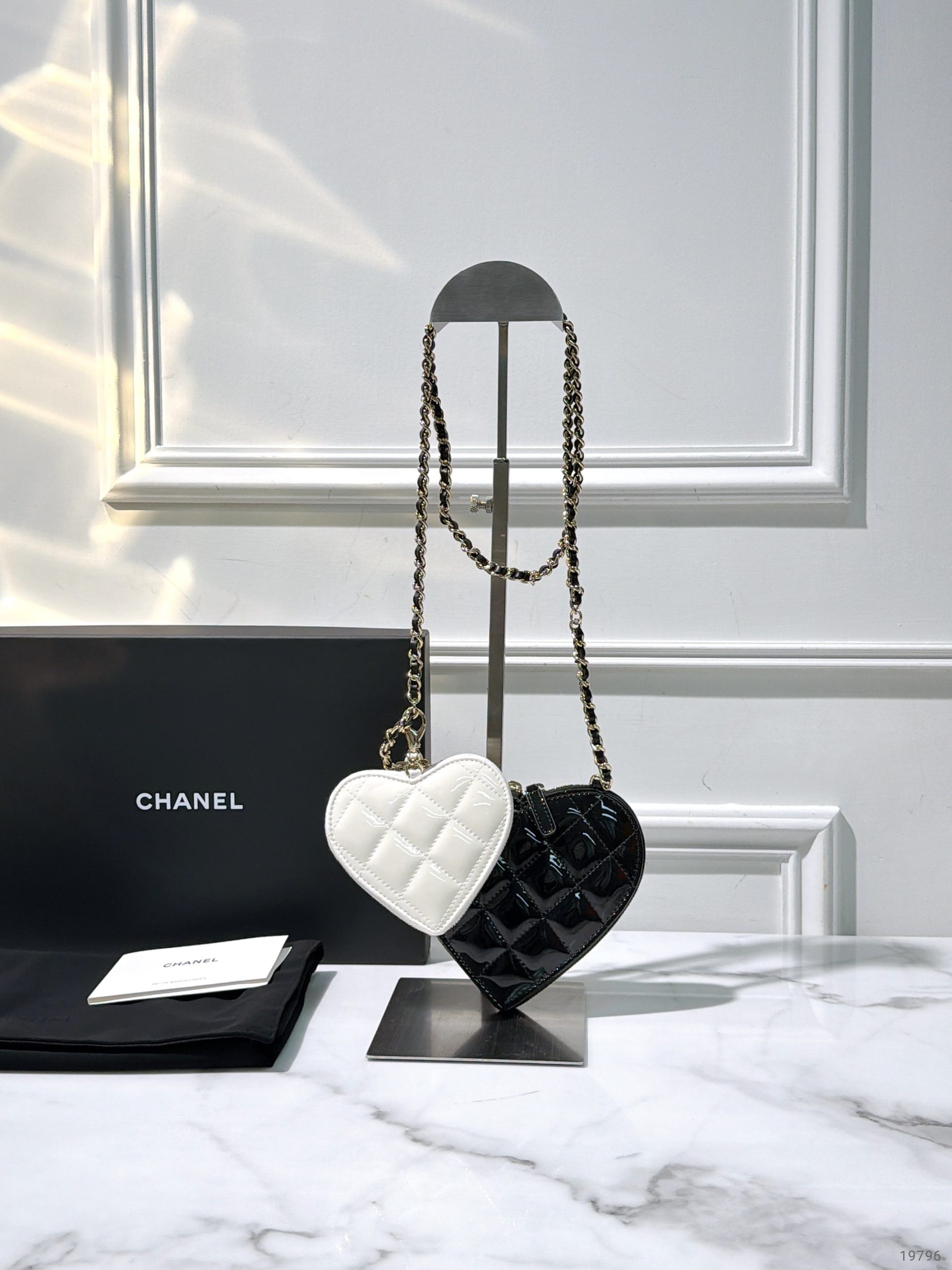 CHANEL 23S DOUBLE HEART CLUTH, Black/White