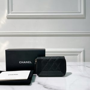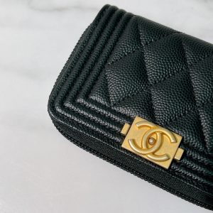 CHANEL BOY CARD HOLDER, Black/Gold