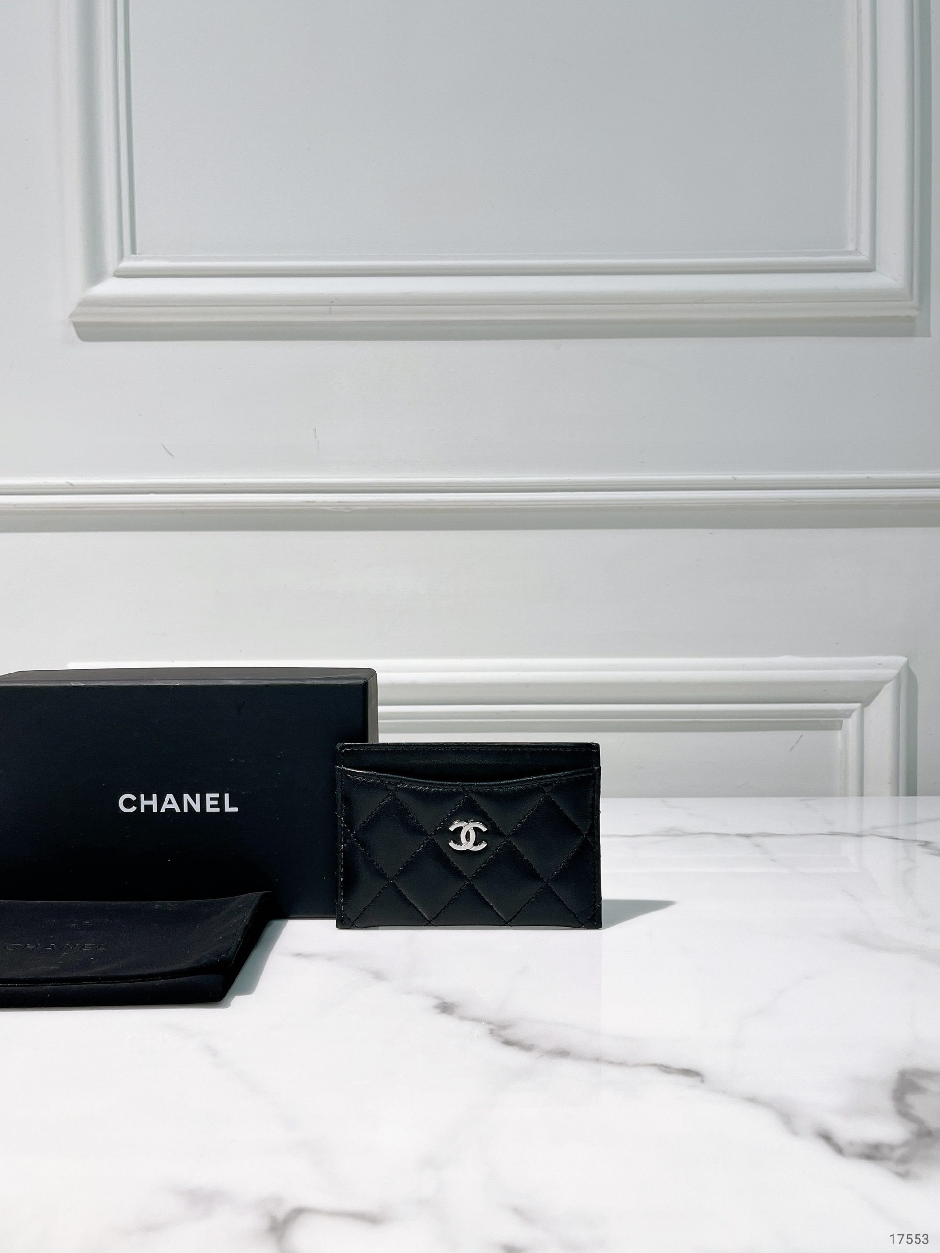 CHANEL CARD HOLDER, Black/Silver