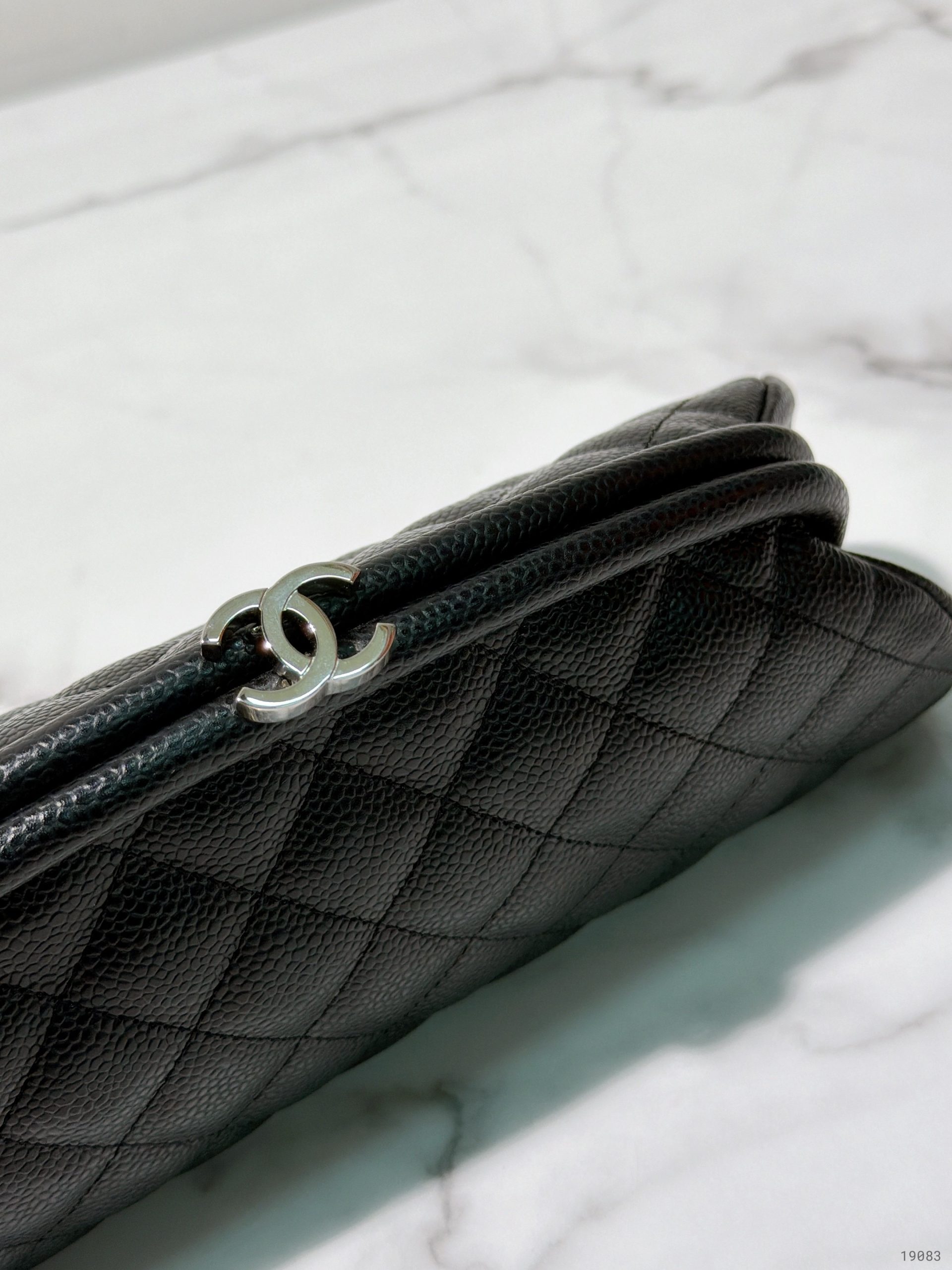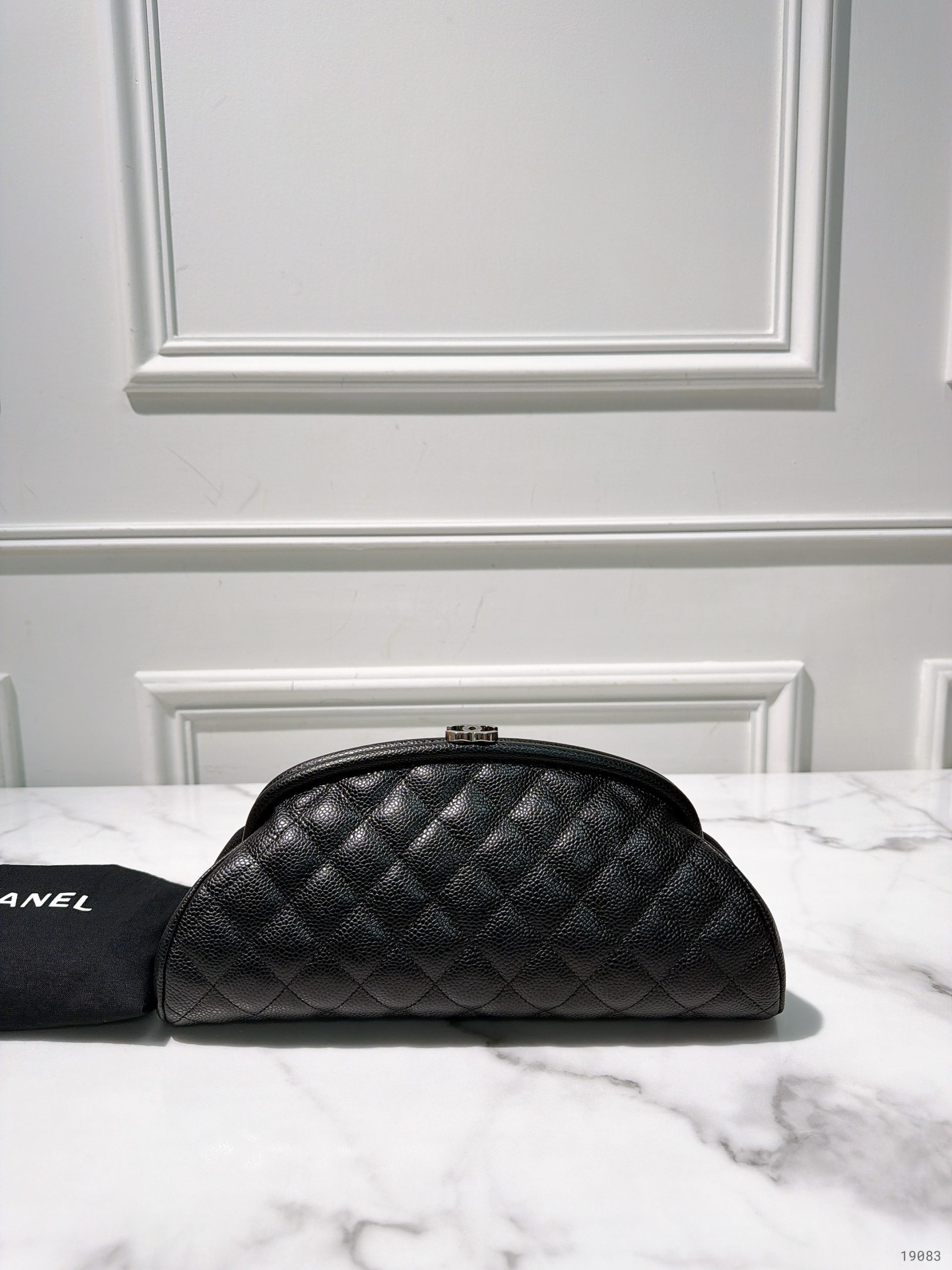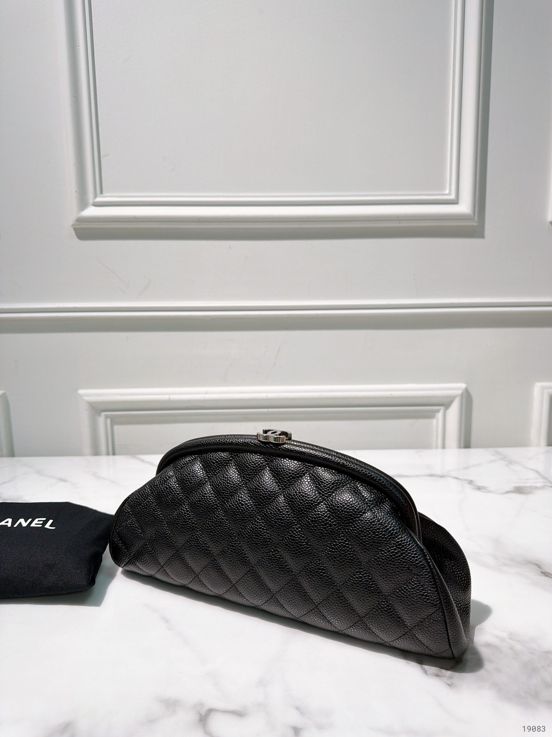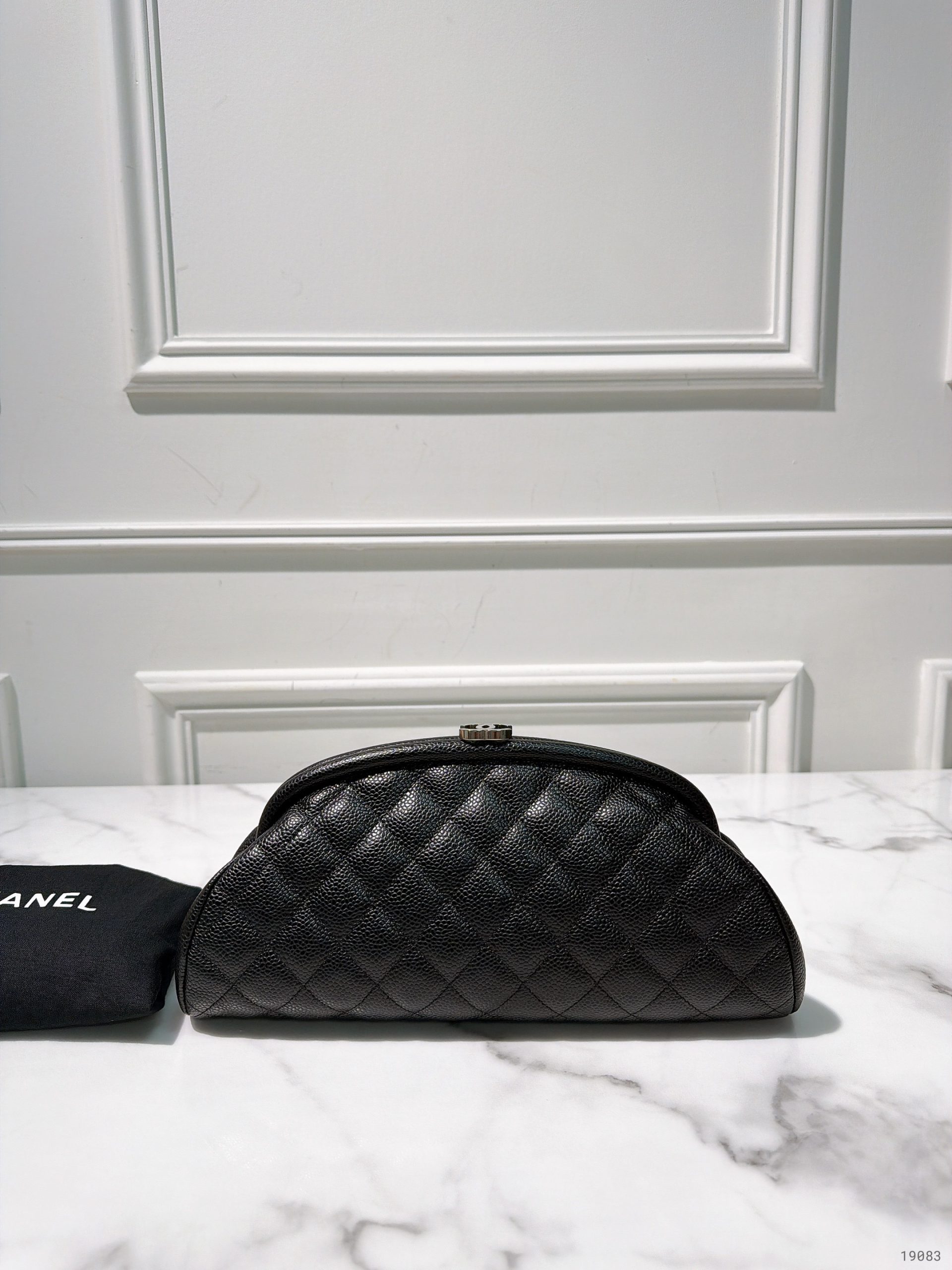 CHANEL HAND POUCH, BLACK/SILVER