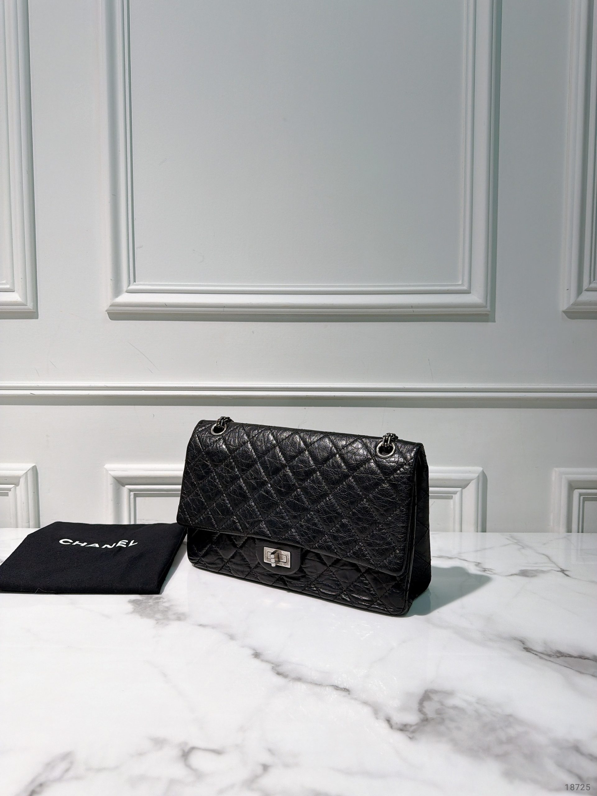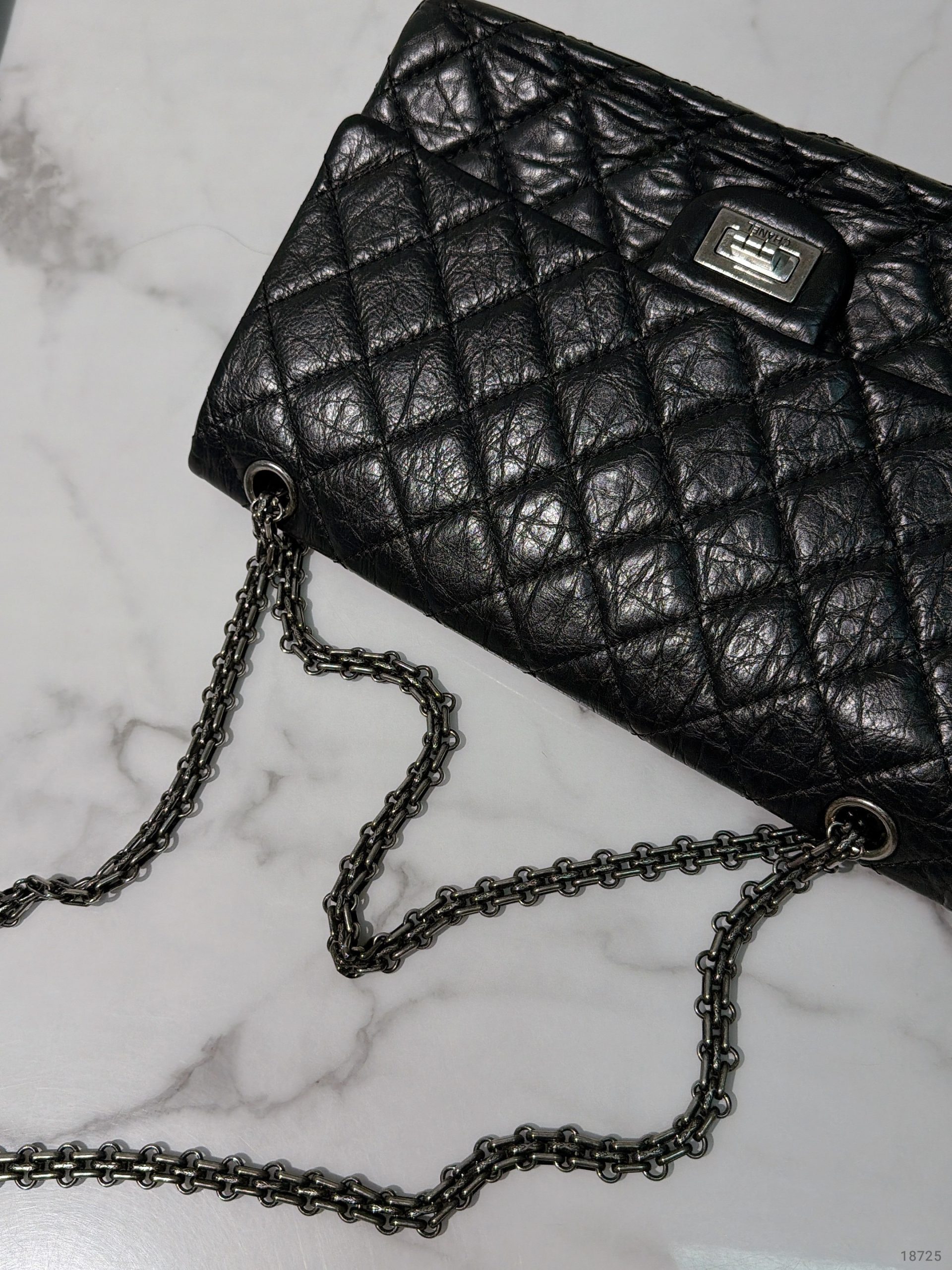 CHANEL LARGE 2.55 HANDBAG, Black/Silver
