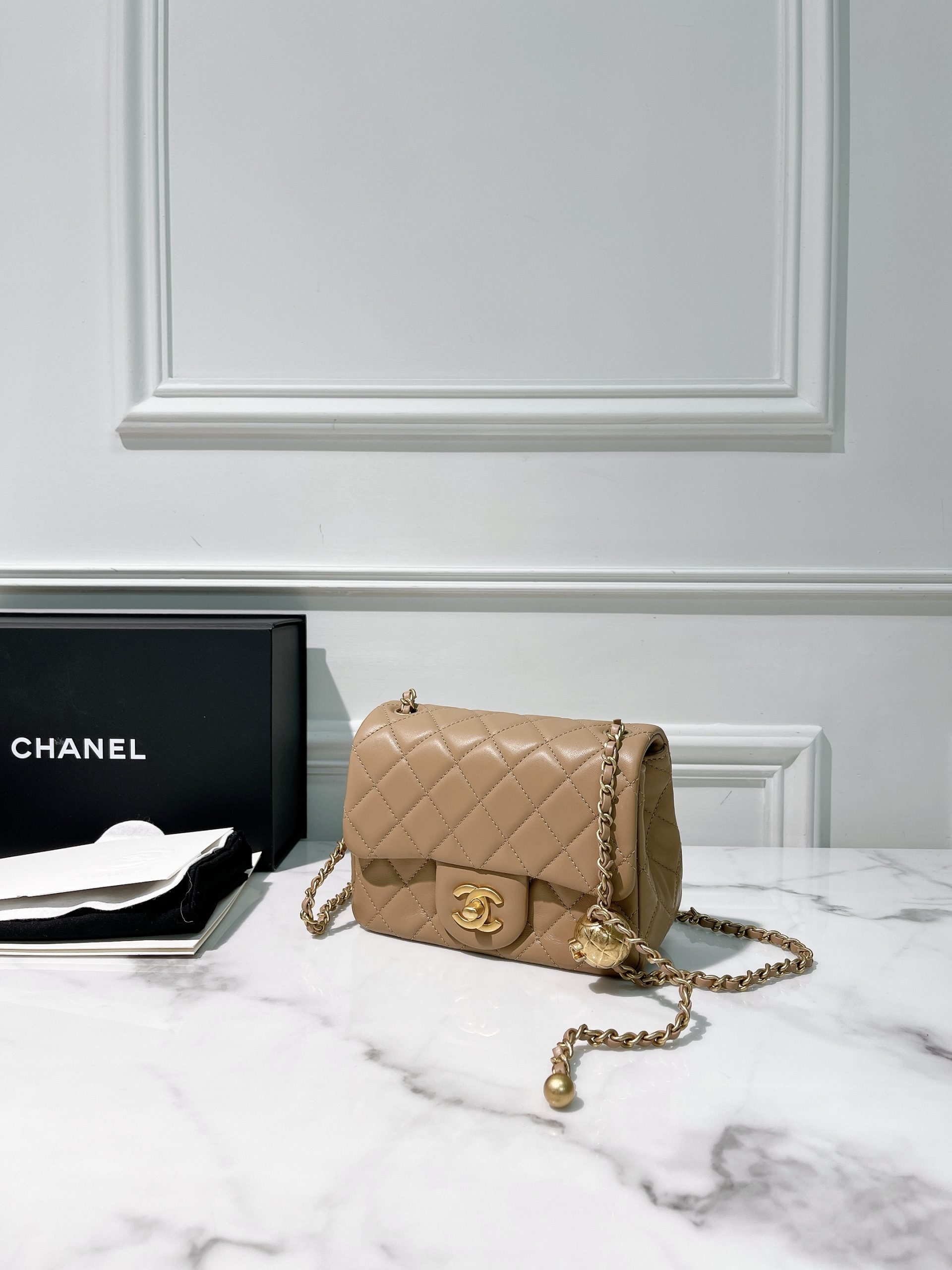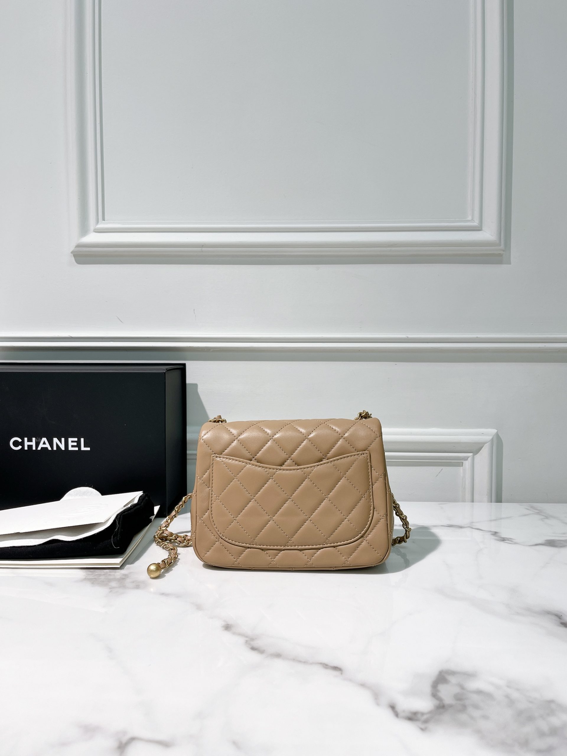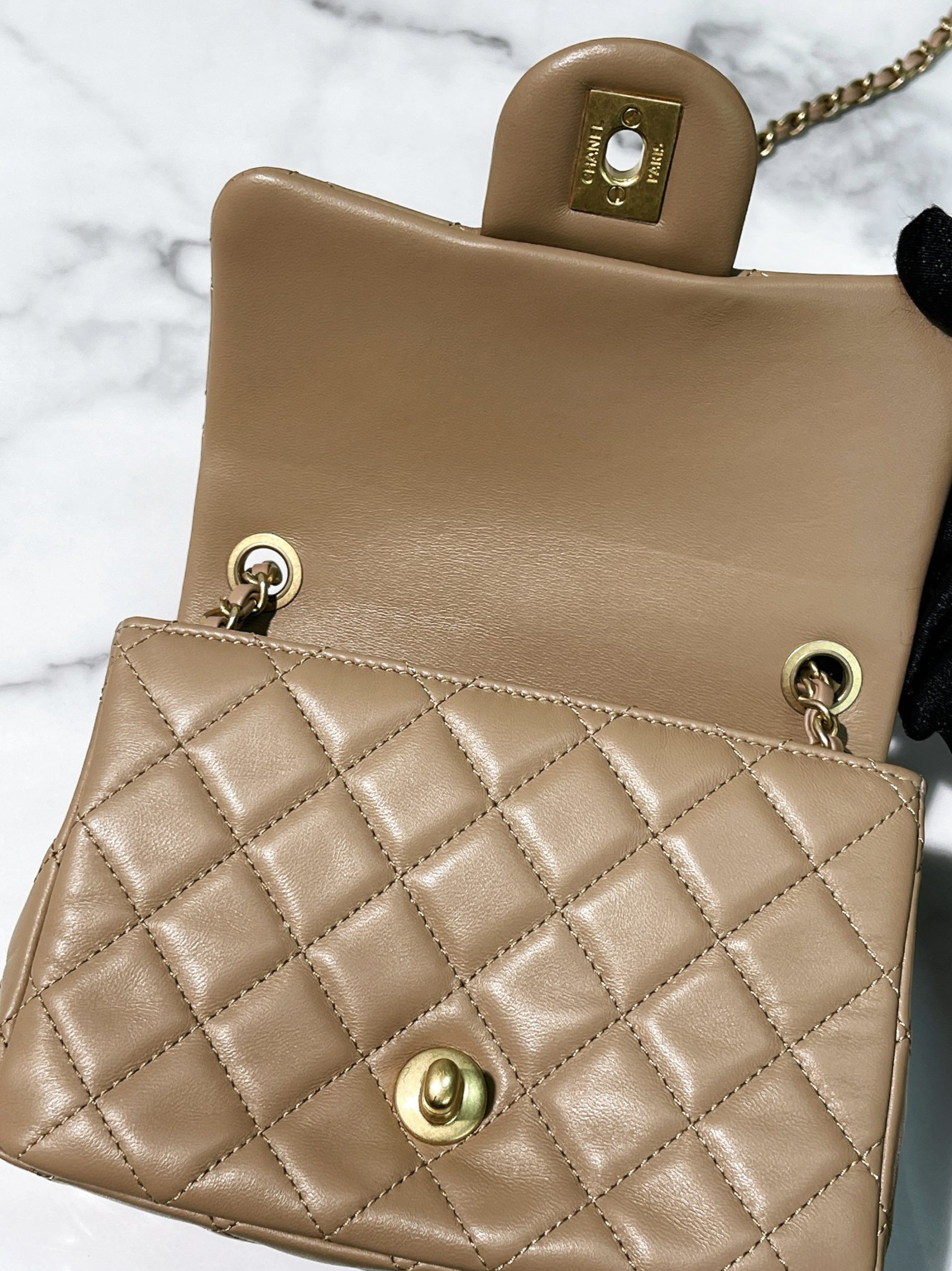 CHANEL MINI SQUARE, Beige/Gold