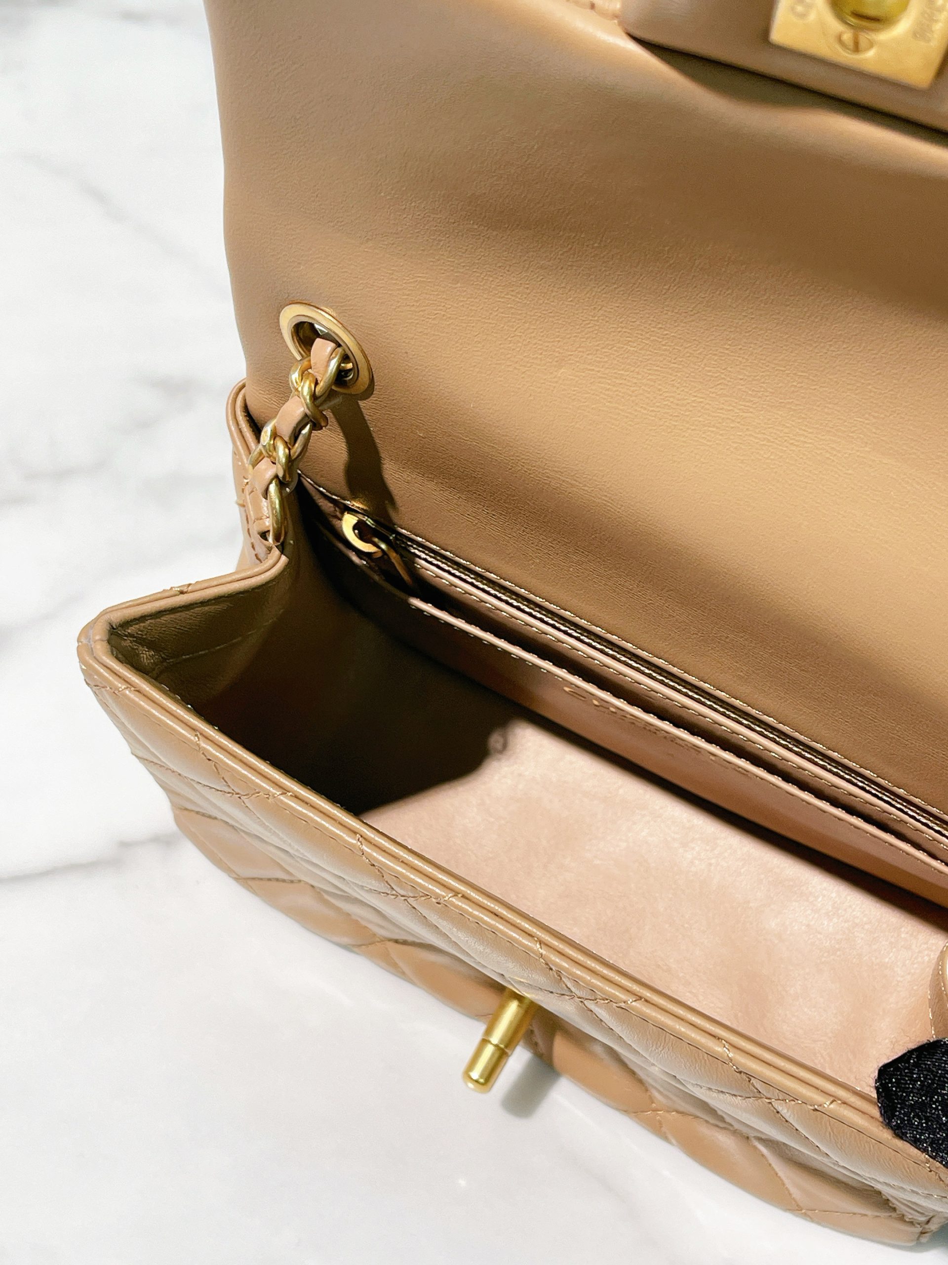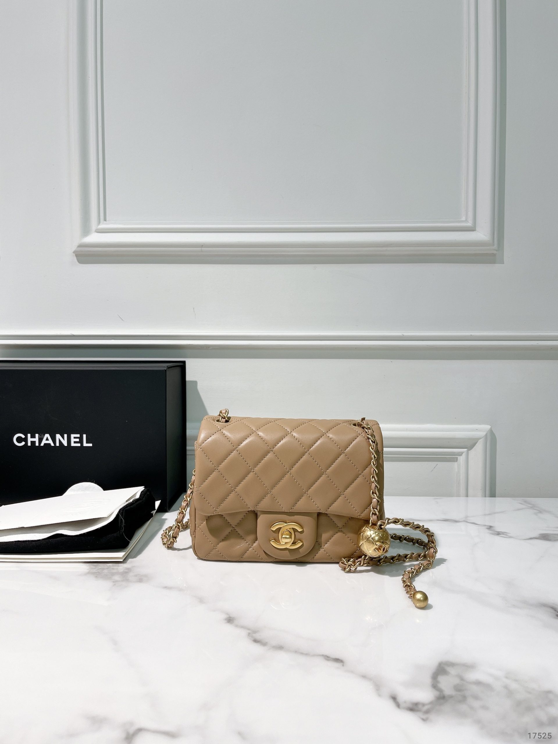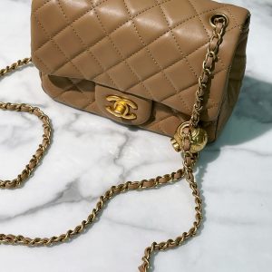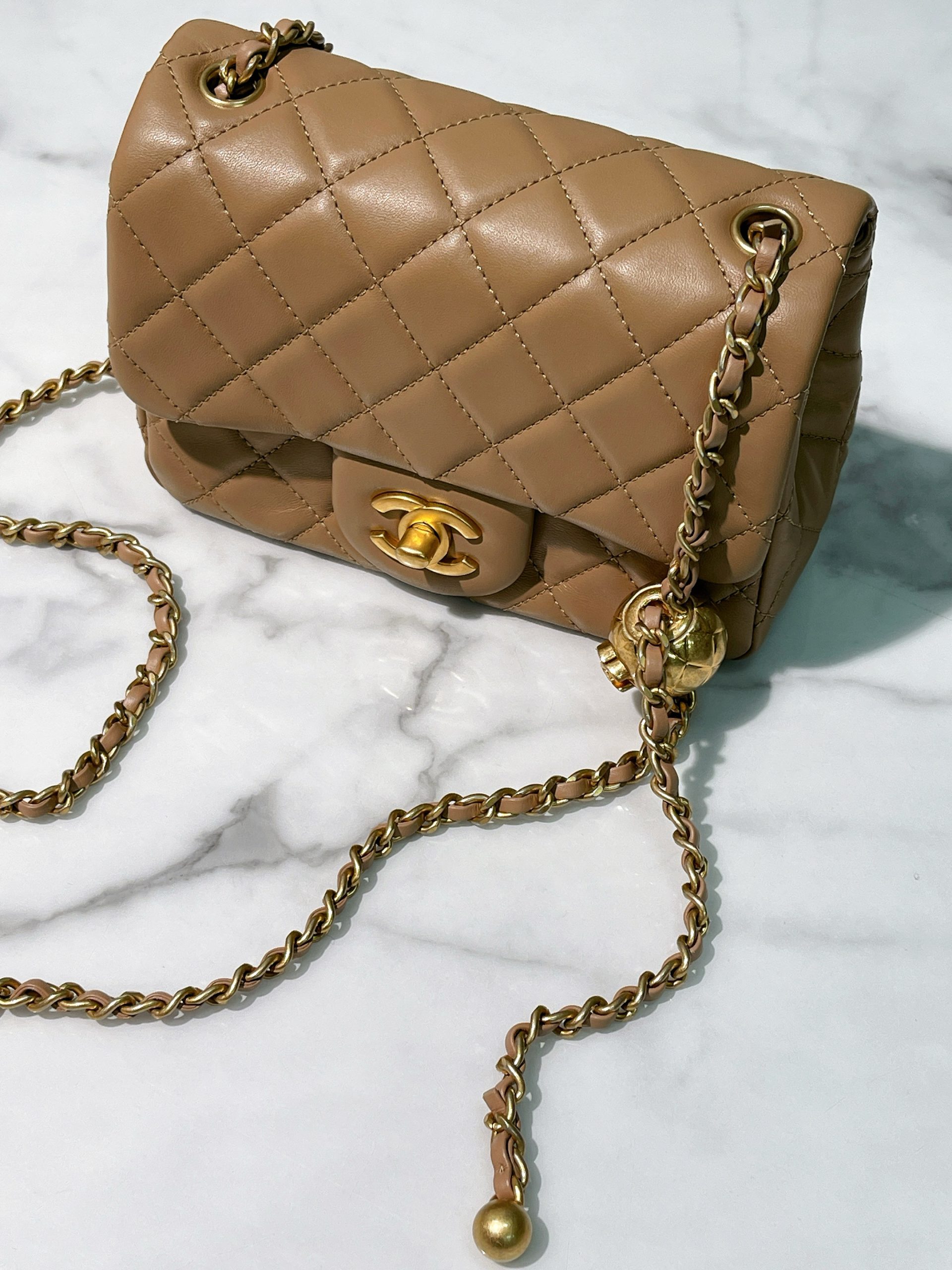 CHANEL MINI SQUARE, Beige/Gold
