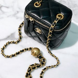 CHANEL MINI VANITY CASE, Black/Gold