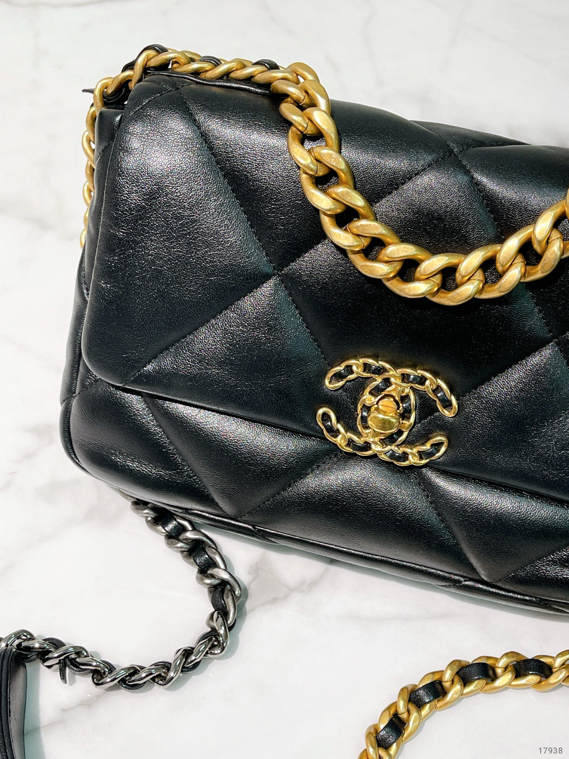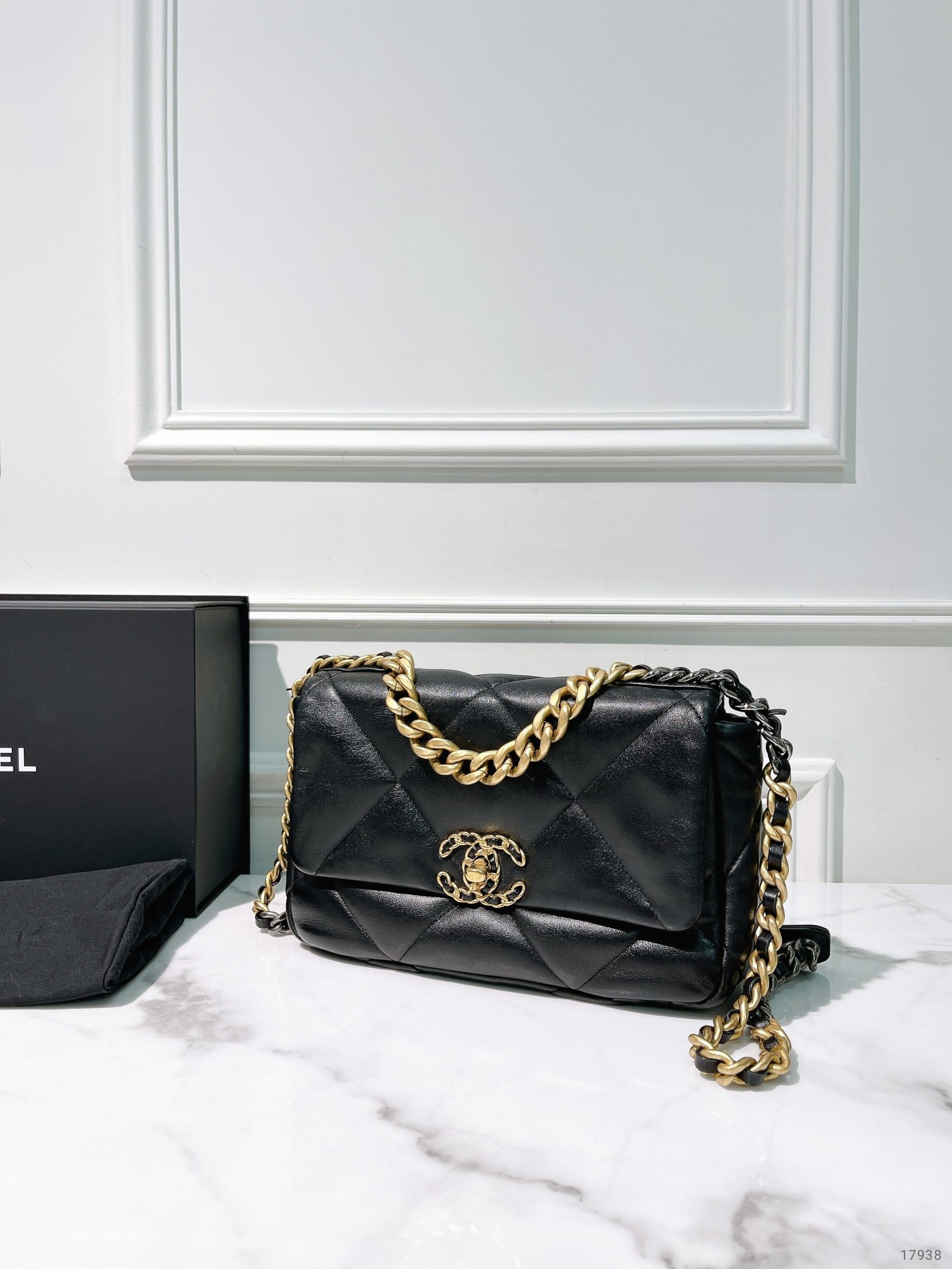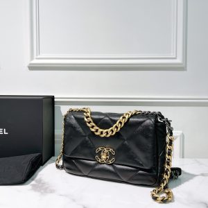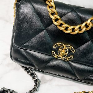 CHANEL SMALL 19 BAG, Black/Gold