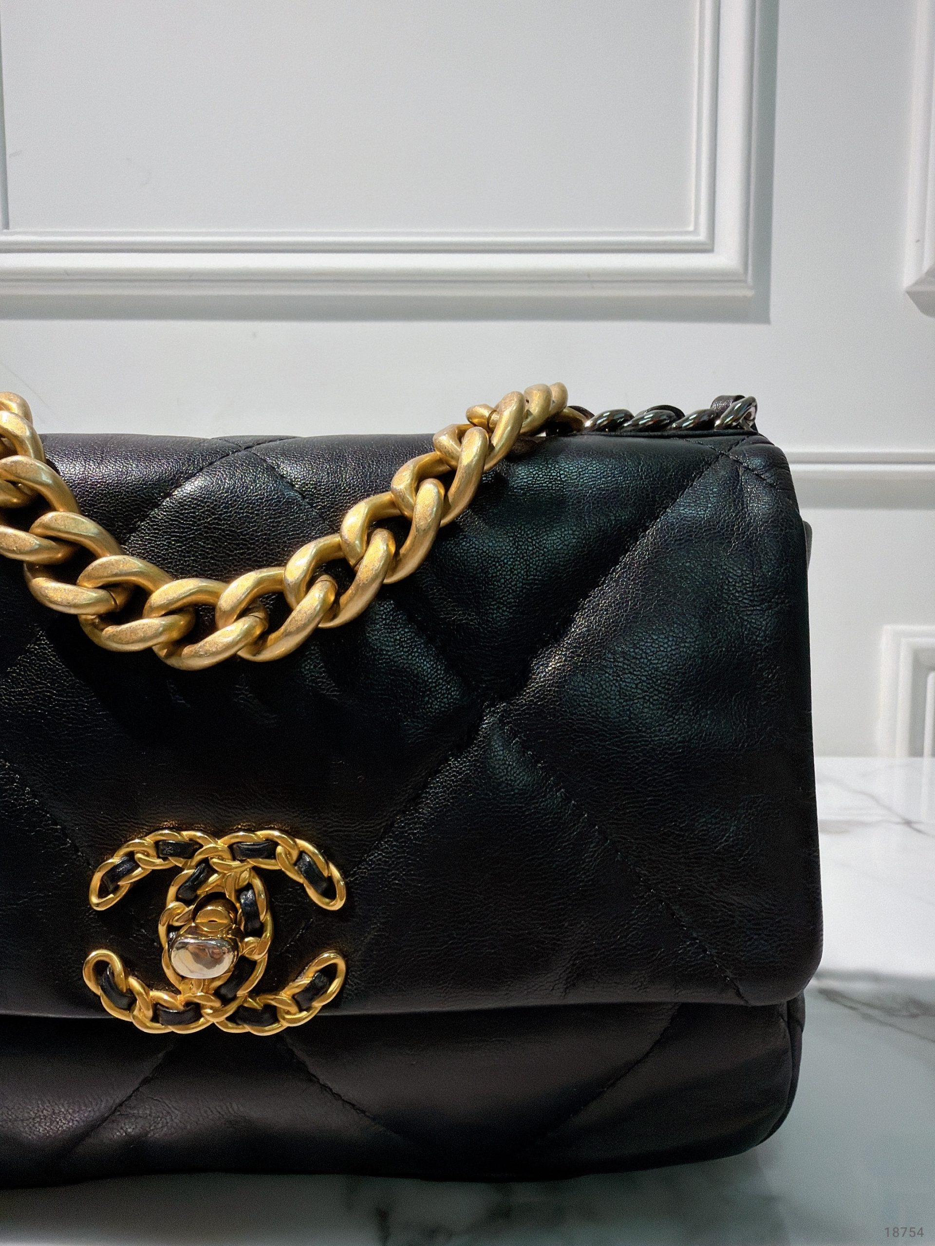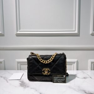 CHANEL SMALL 19 BAG, Black/Gold