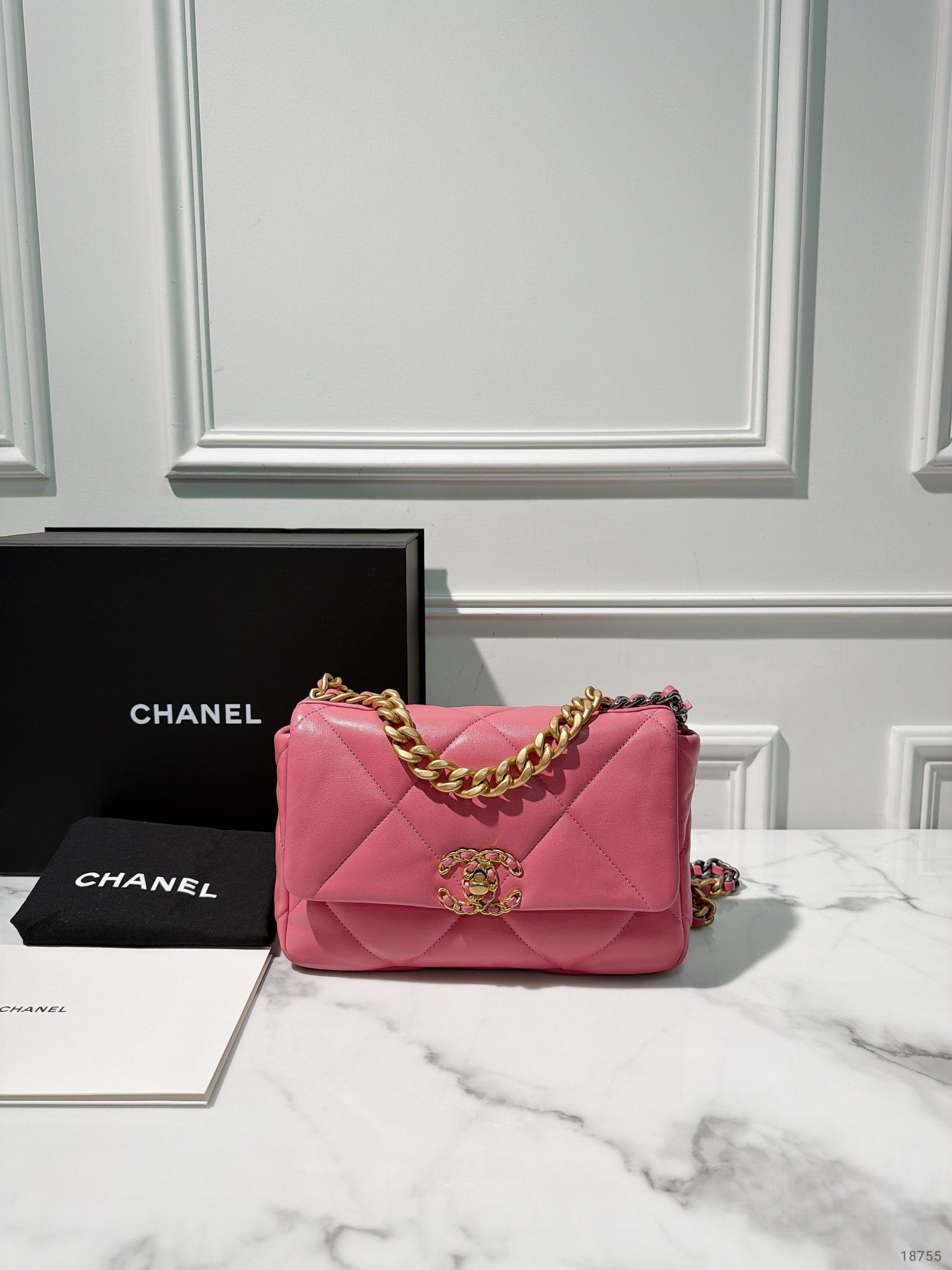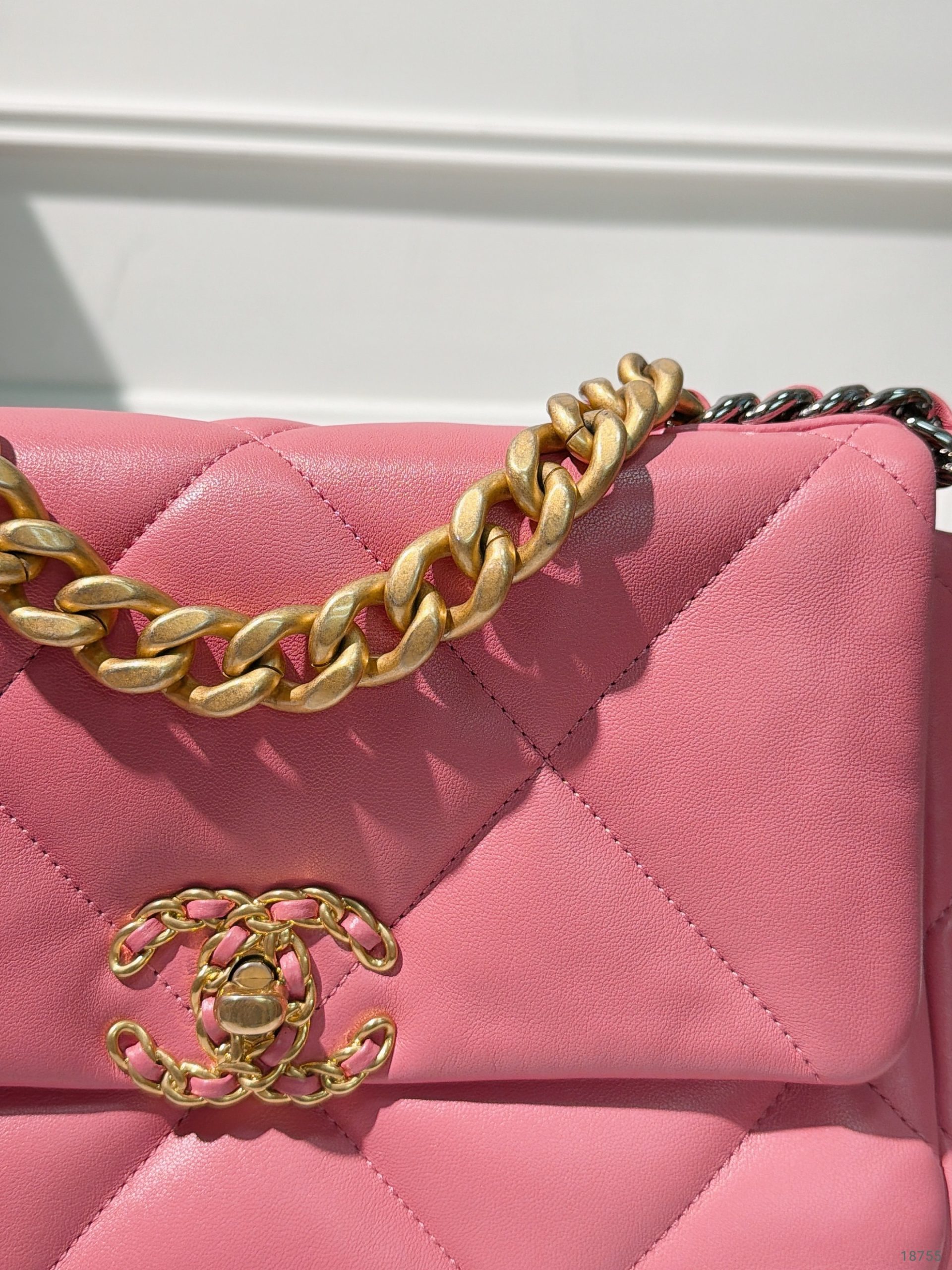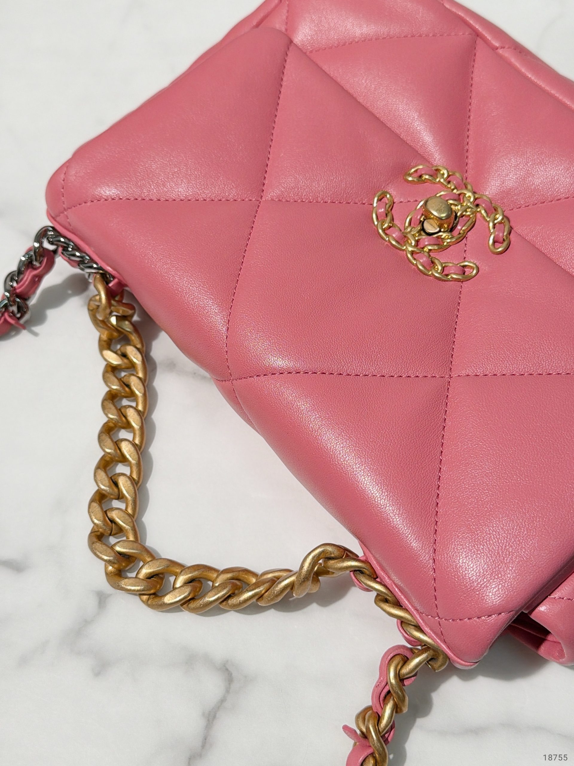 / CHANEL SMALL 19 BAG, Pink/Gold