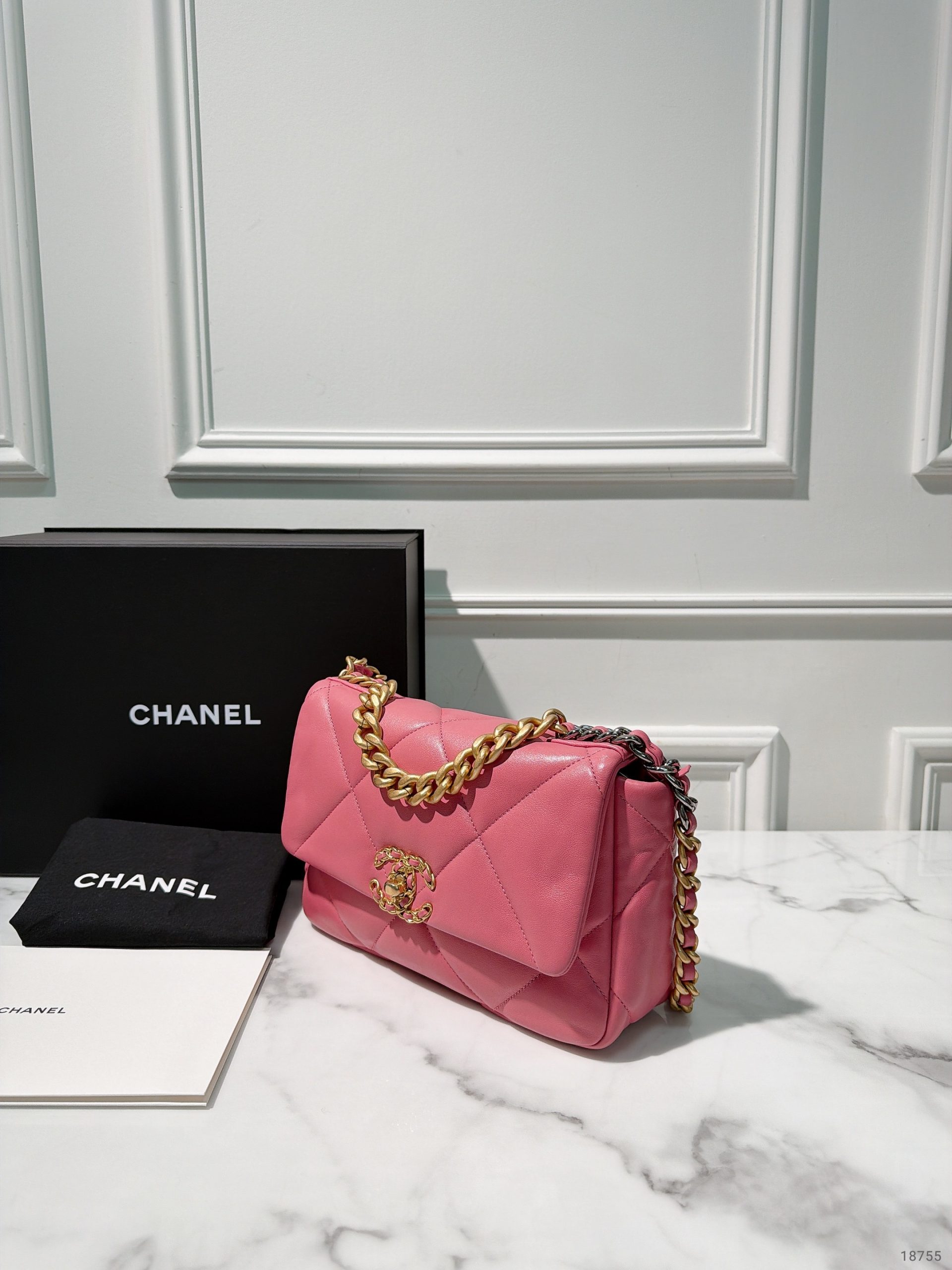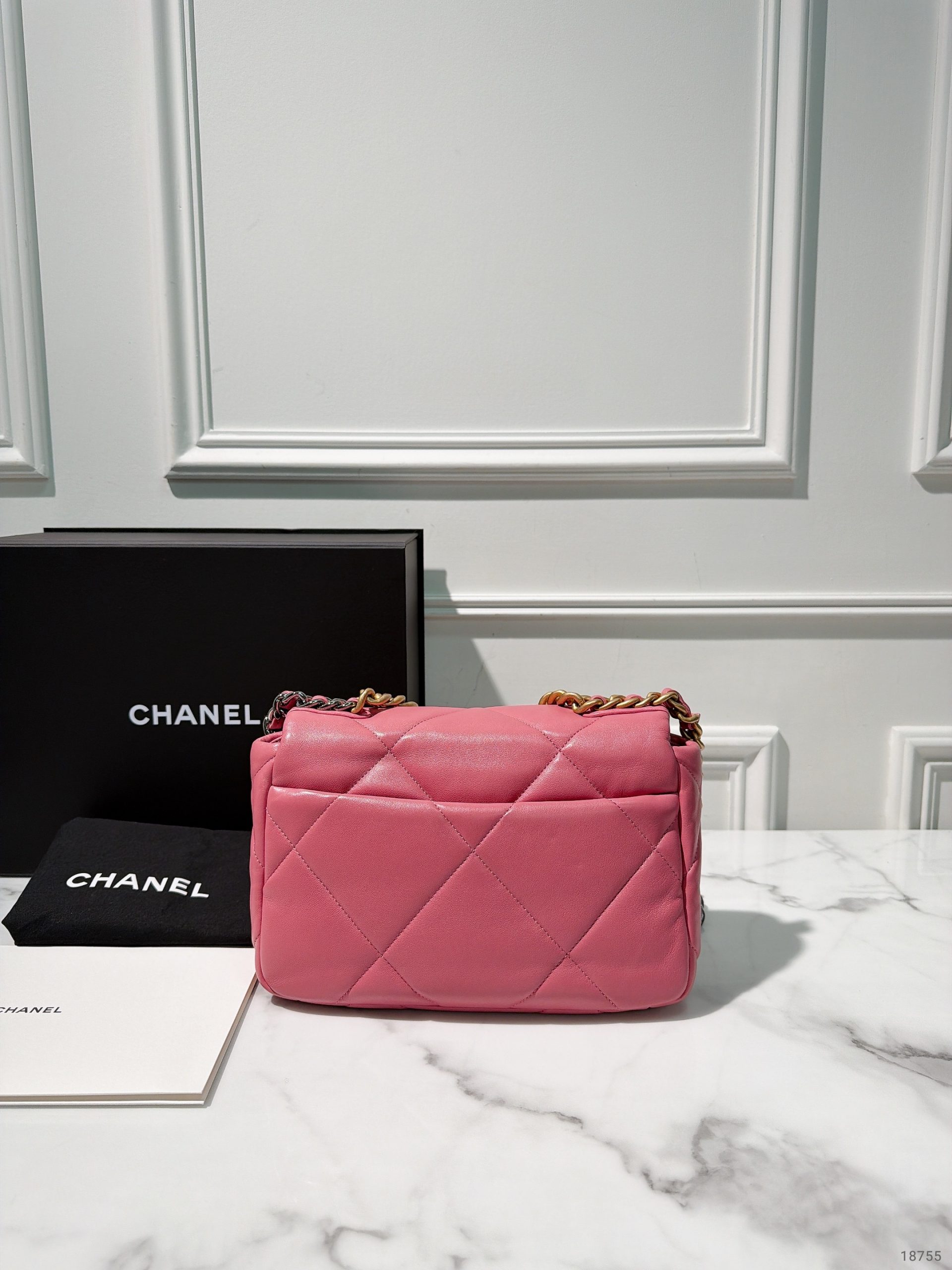 CHANEL SMALL 19 BAG, Pink/Gold