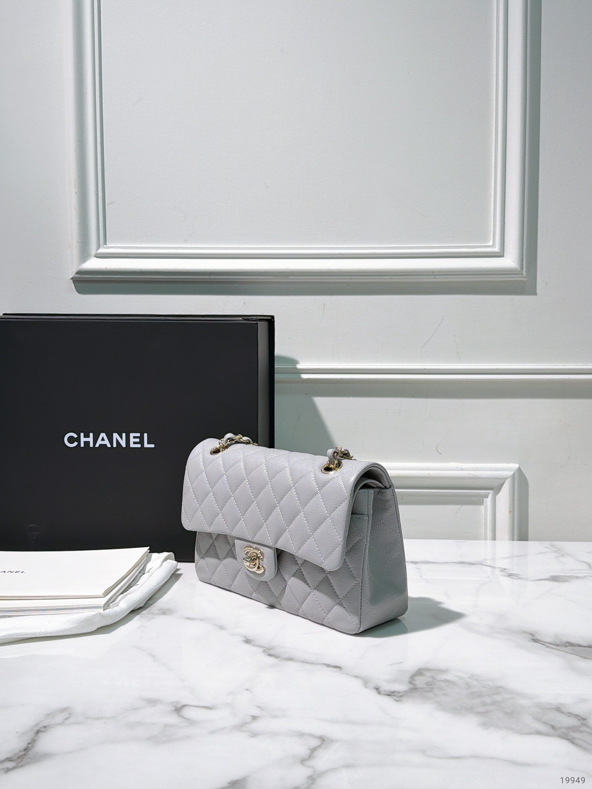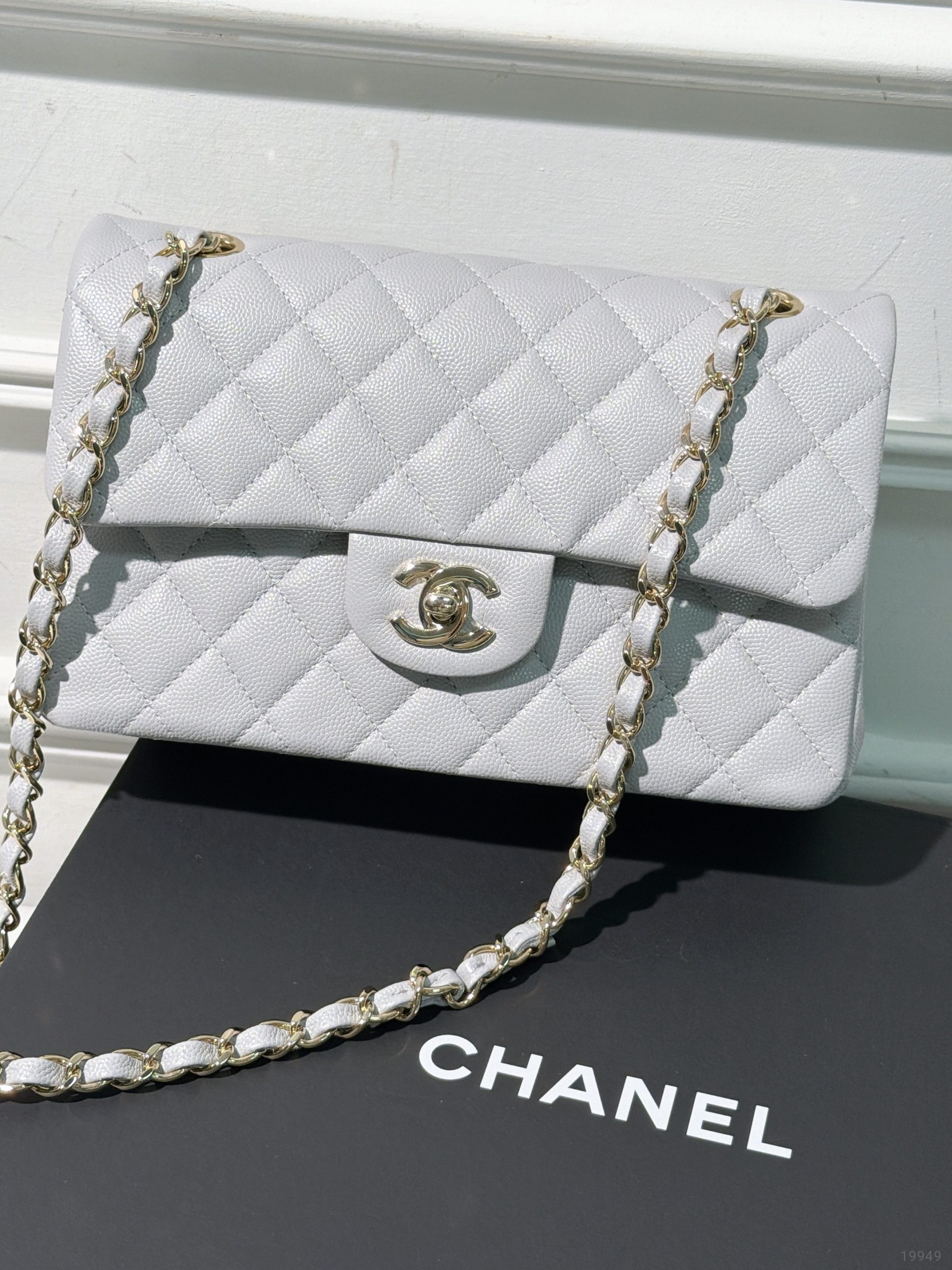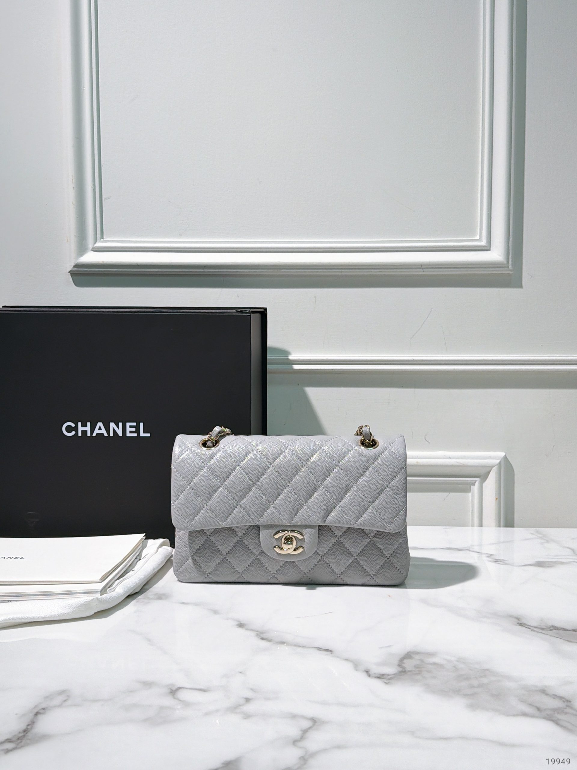 CHANEL SMALL CLASSIC FLAP, Grey/Gold