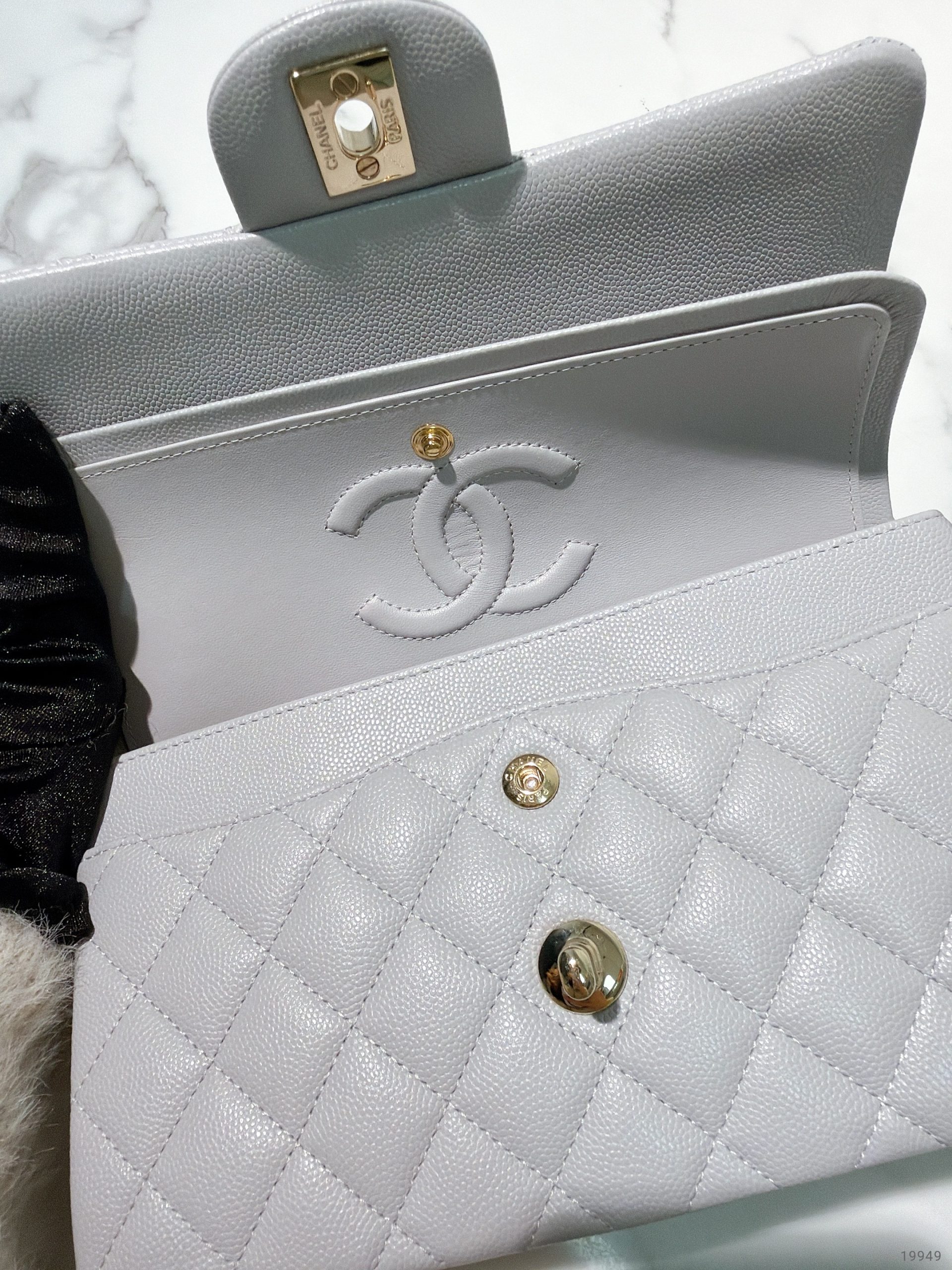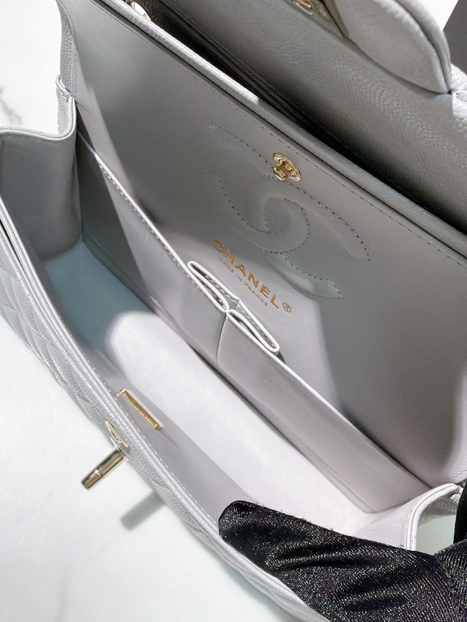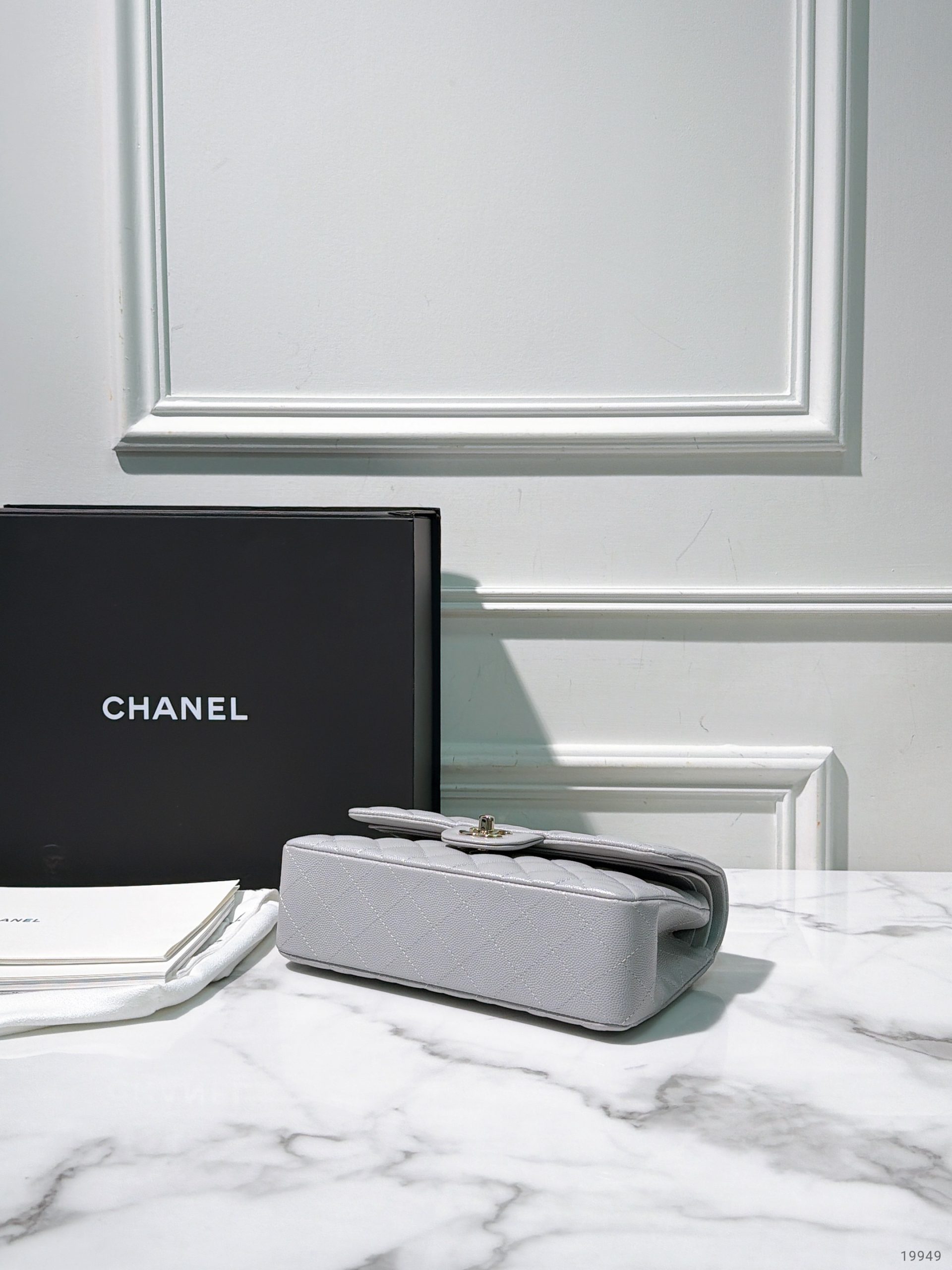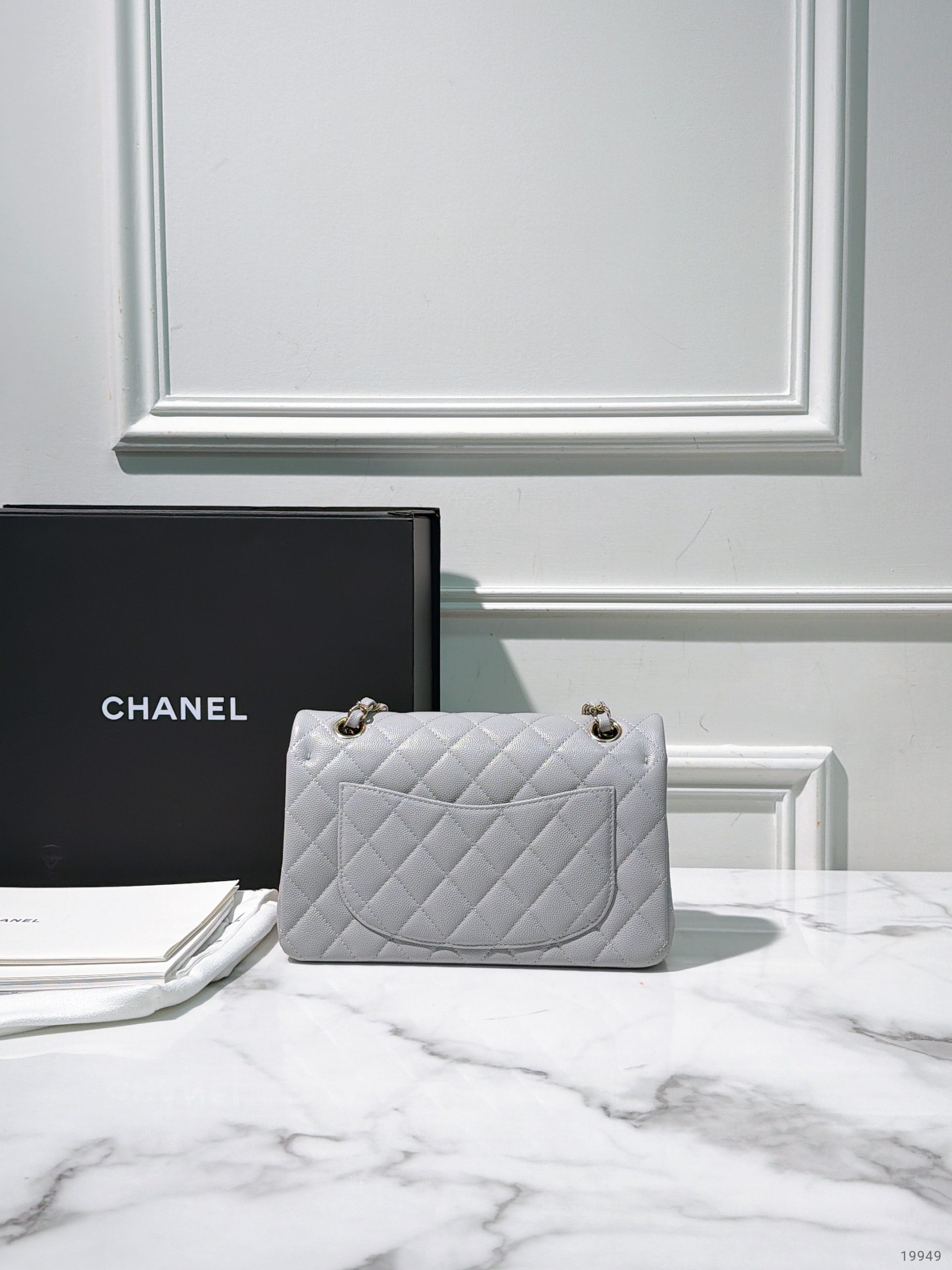 CHANEL SMALL CLASSIC FLAP, Grey/Gold