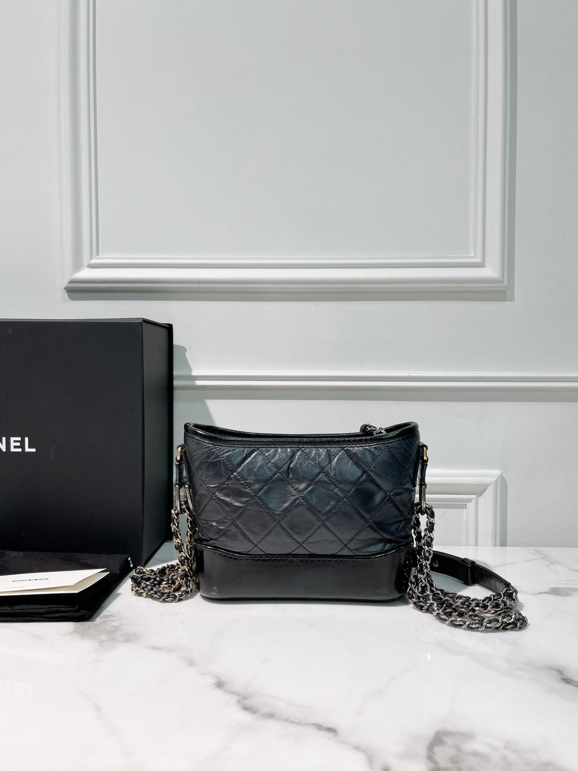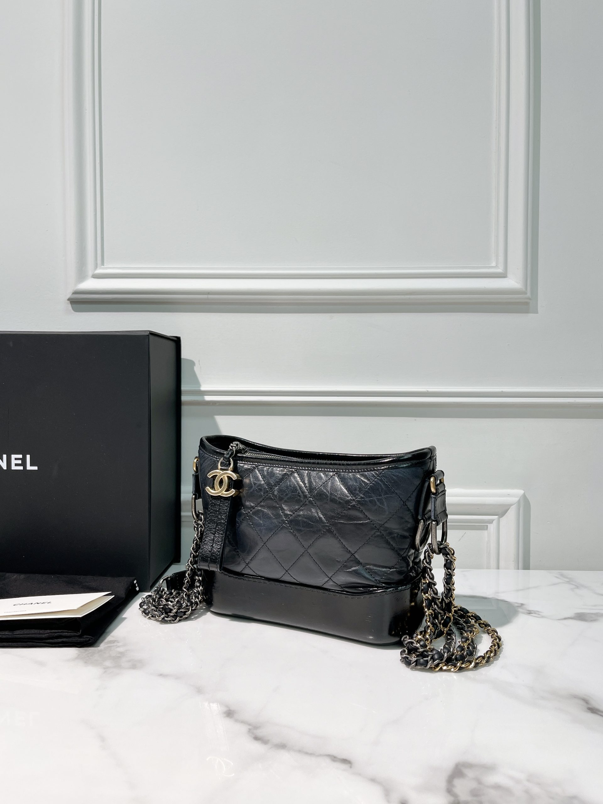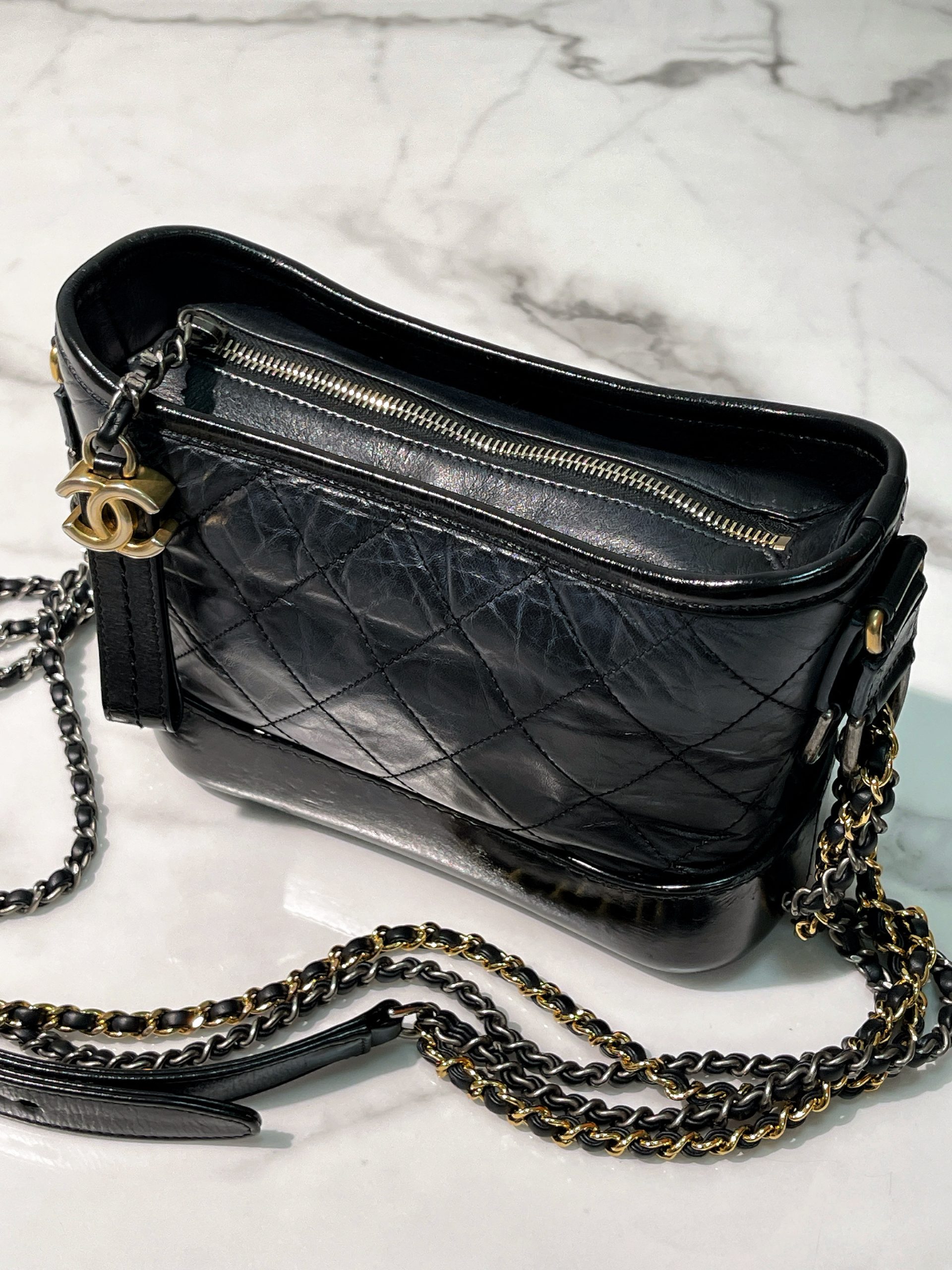 / CHANEL SMALL GABRIELLE HOBO, Black/Gold