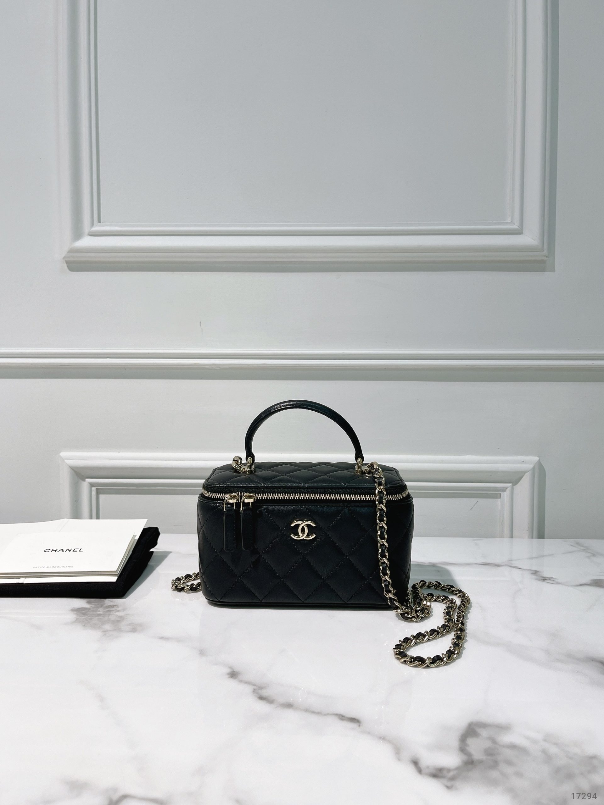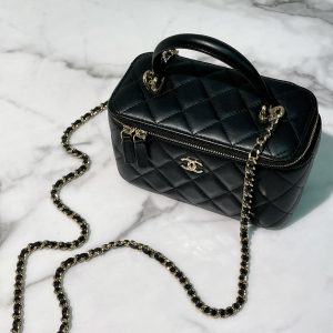 CHANEL TOP HANDLE VANITY CASE, Black/Gold