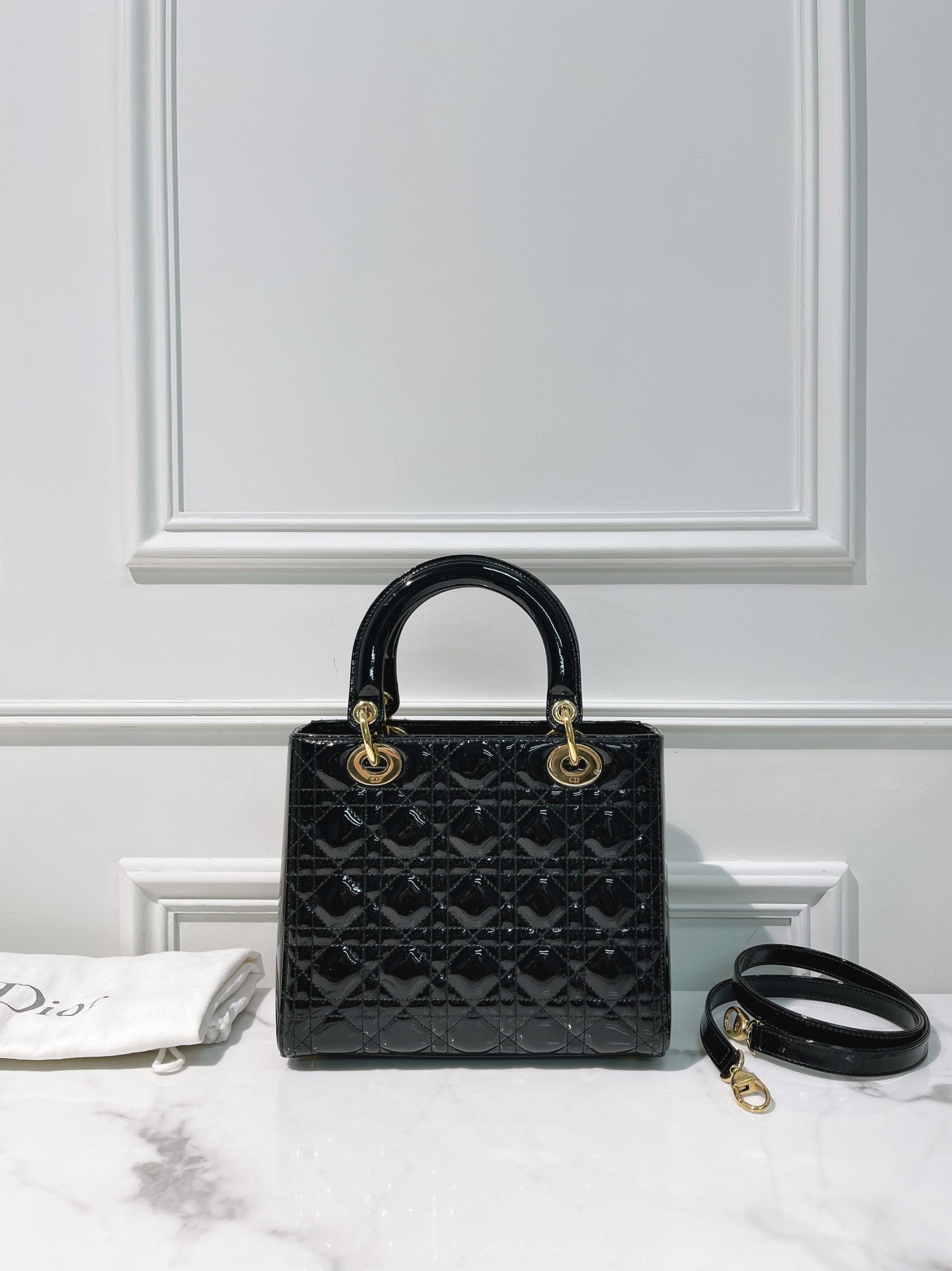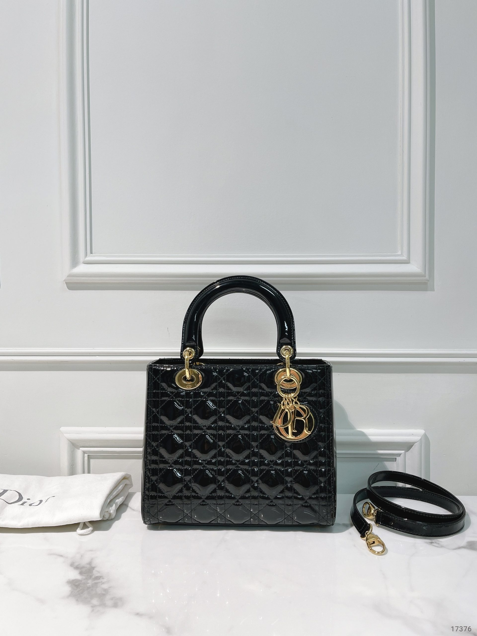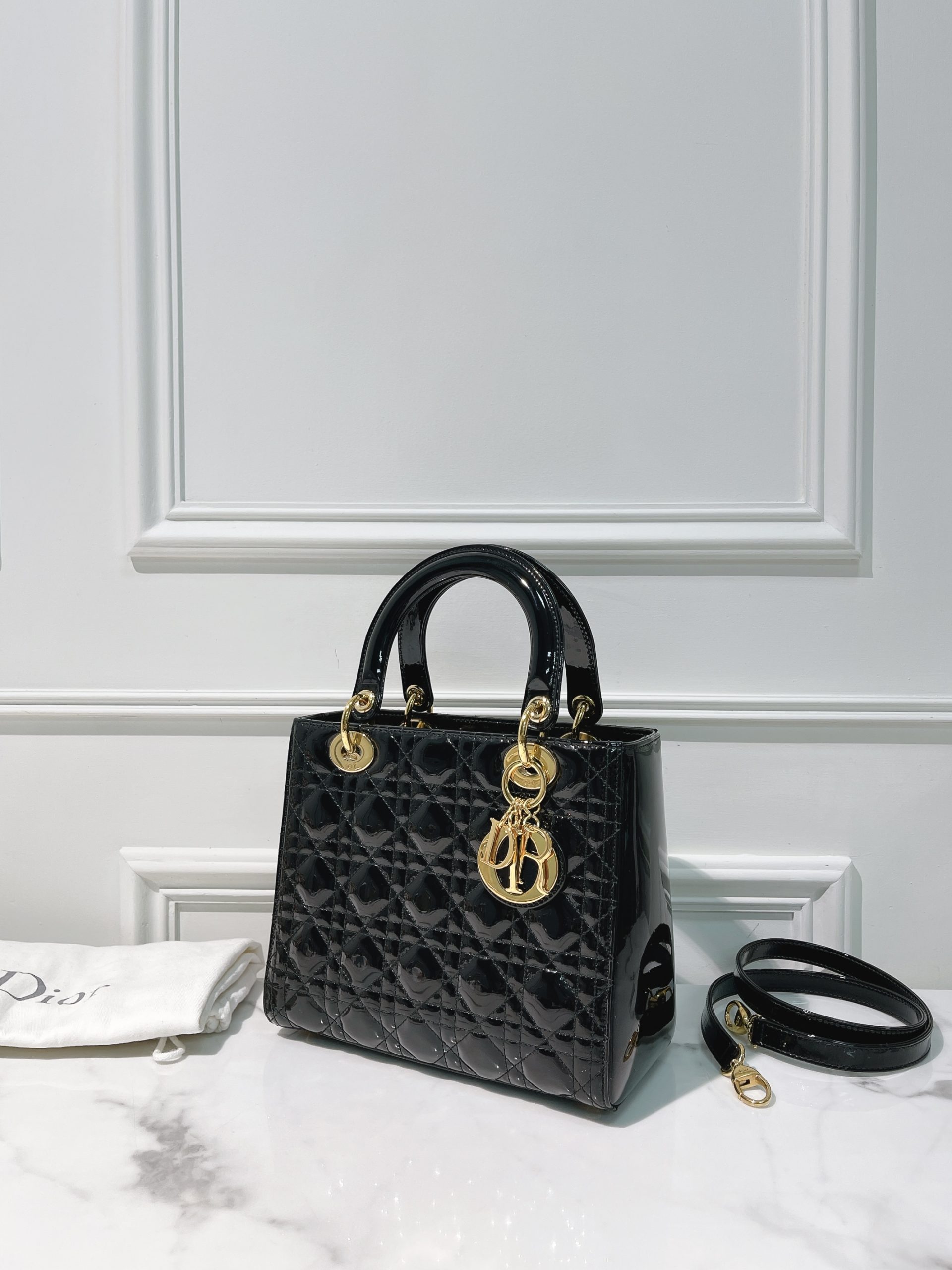 DIOR MEDIUM LADY DIOR, Black/Gold
