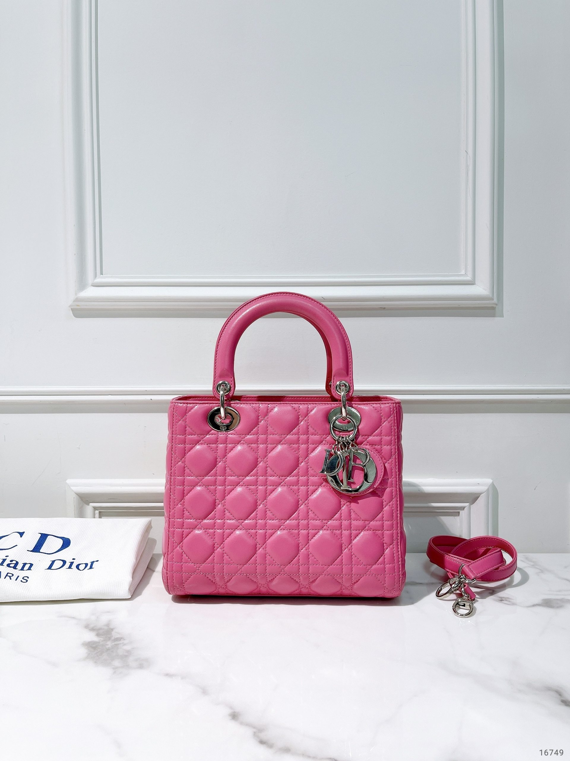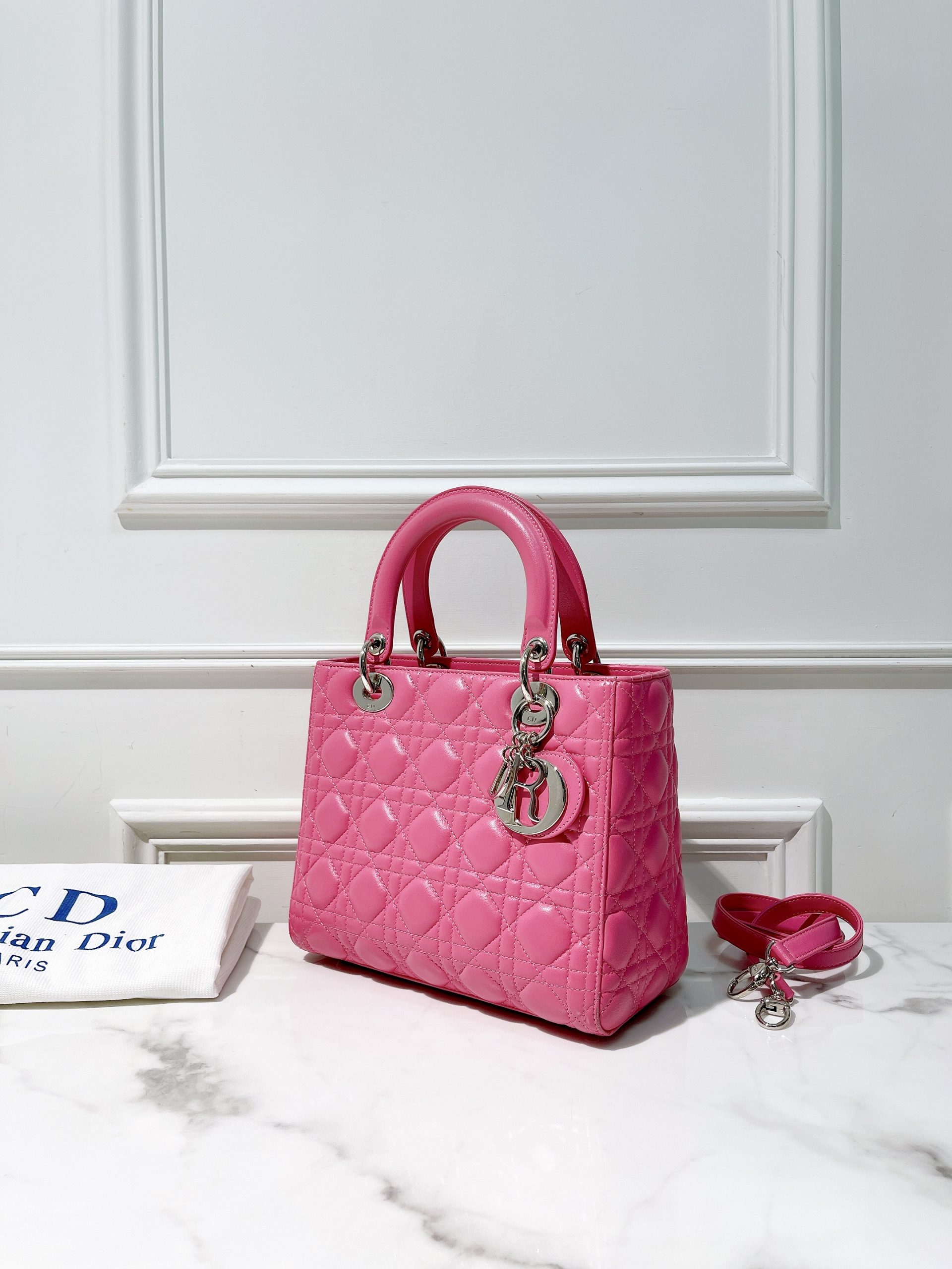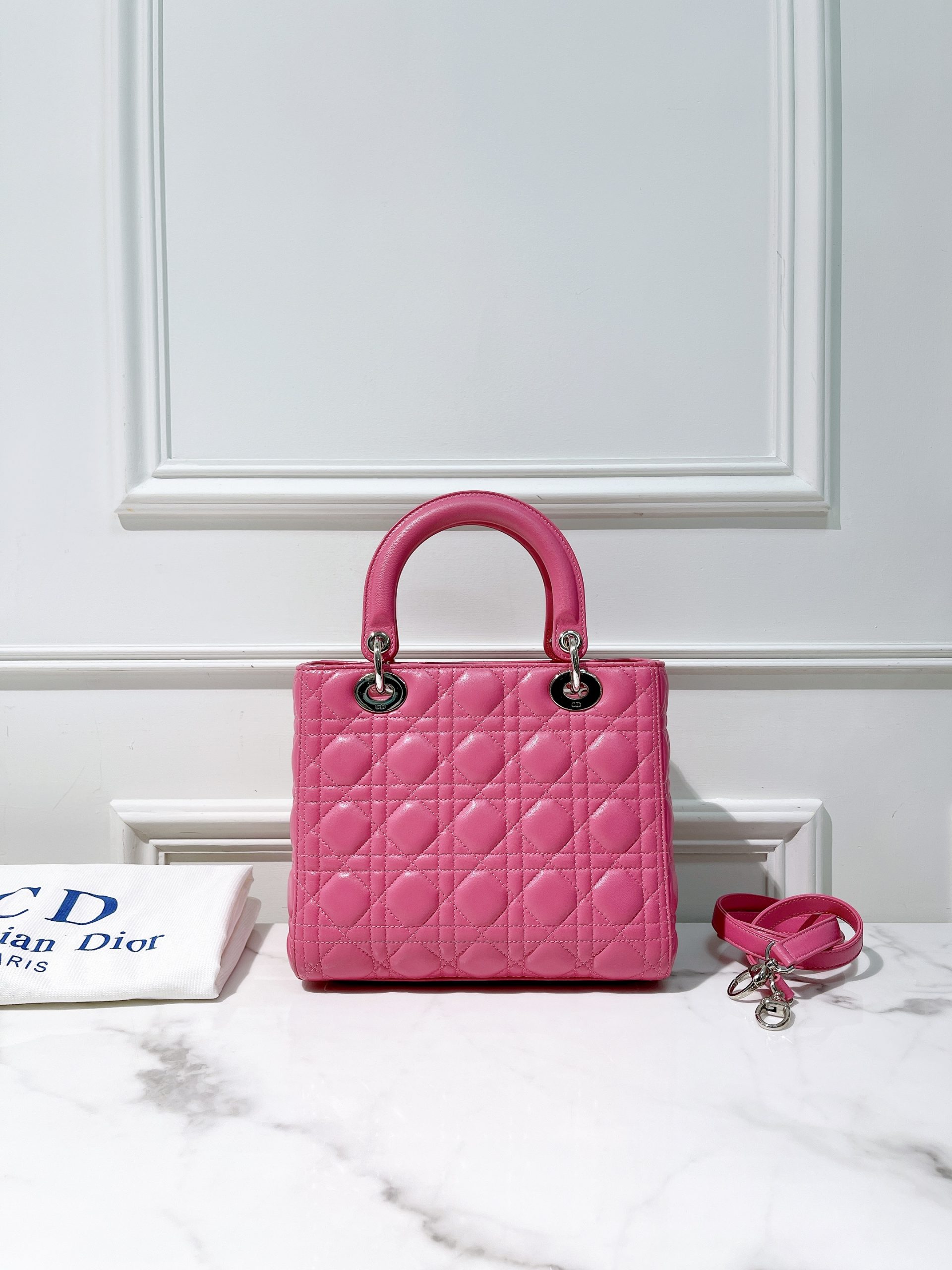 DIOR MEDIUM LADY DIOR, Pink/Silver