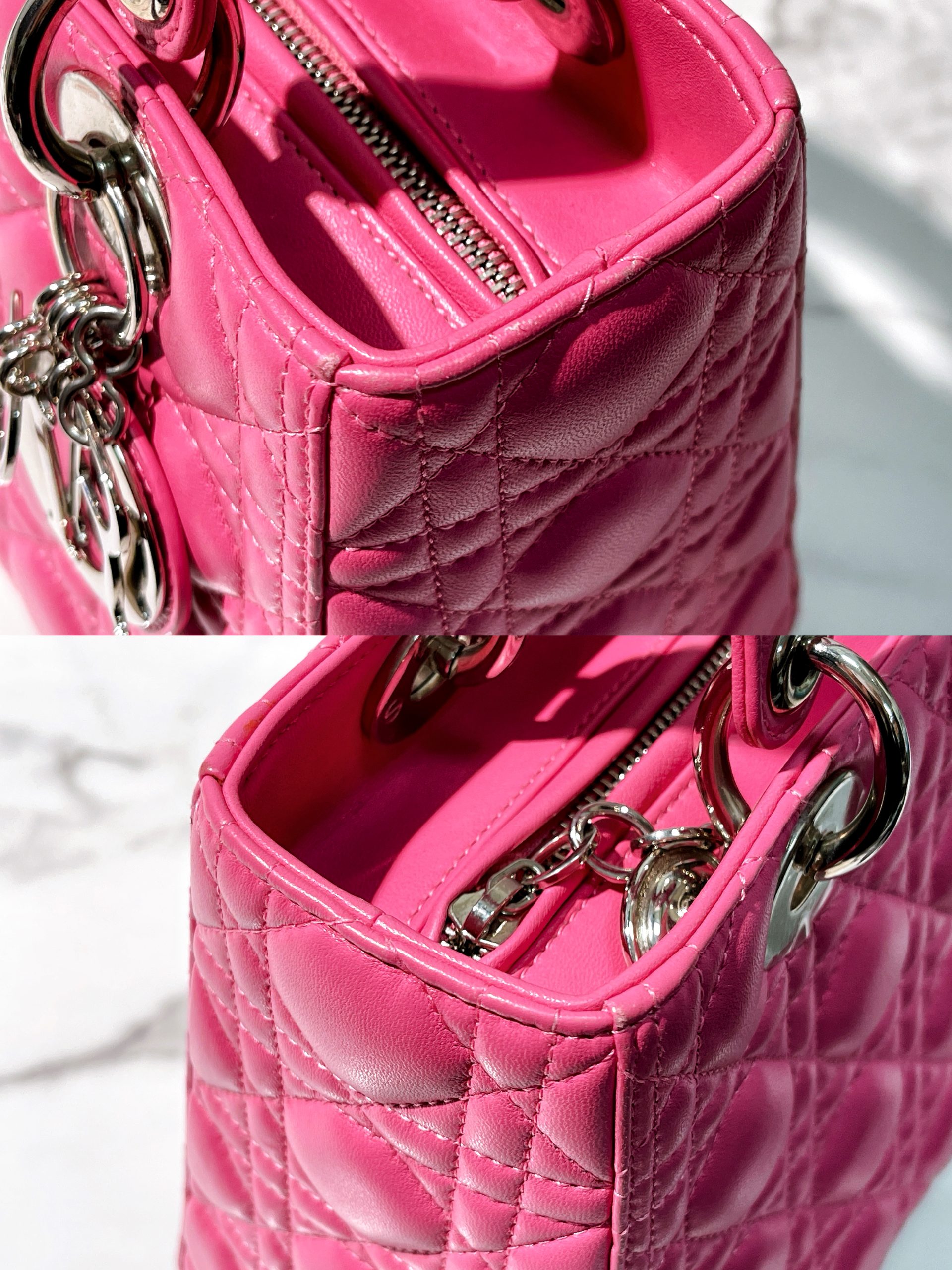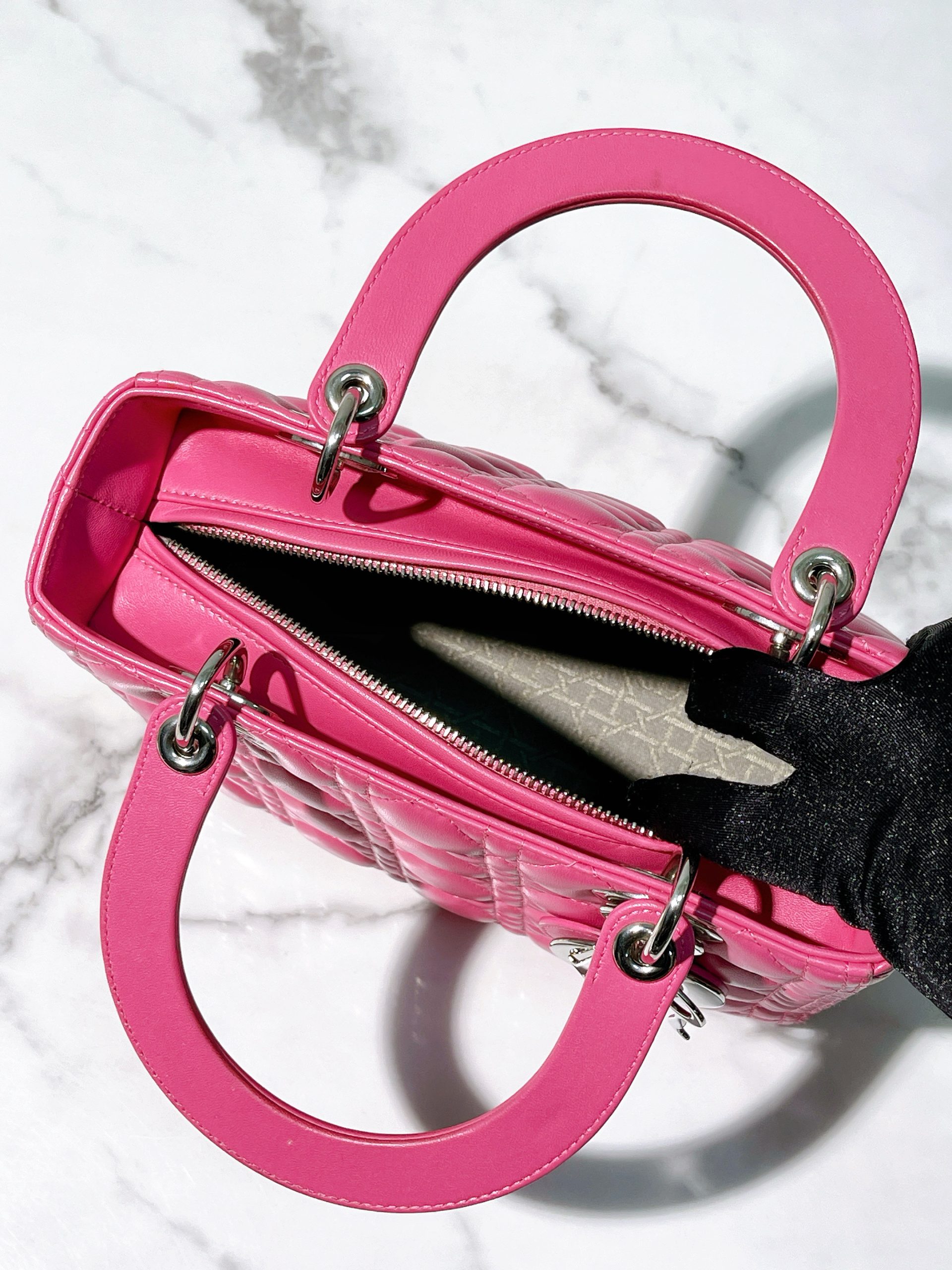 / DIOR MEDIUM LADY DIOR, Pink/Silver