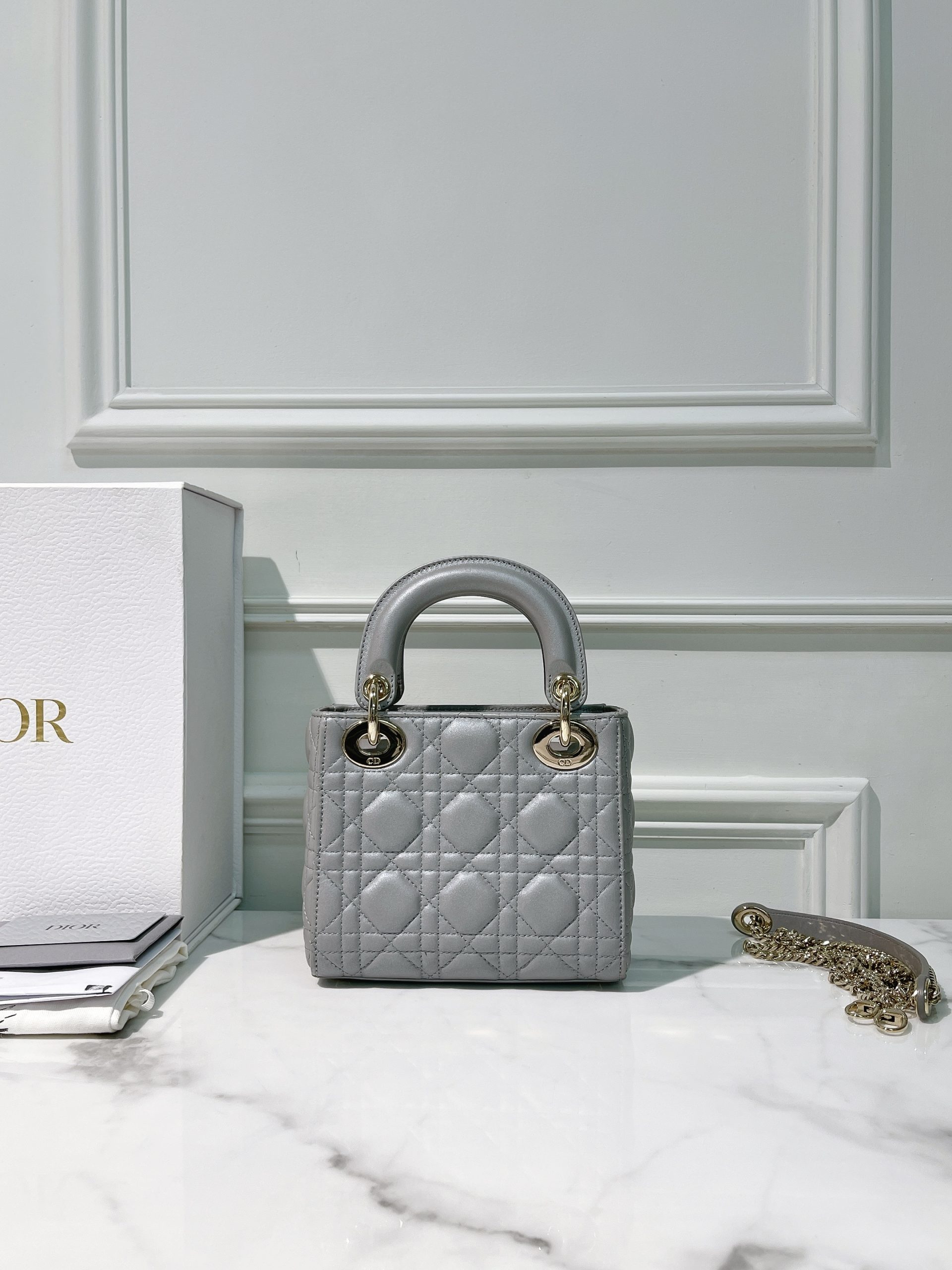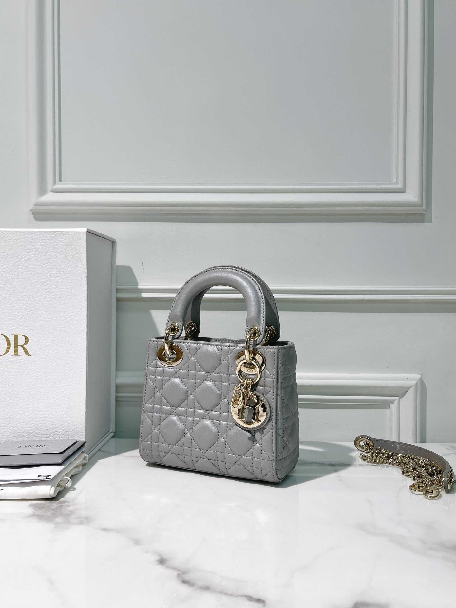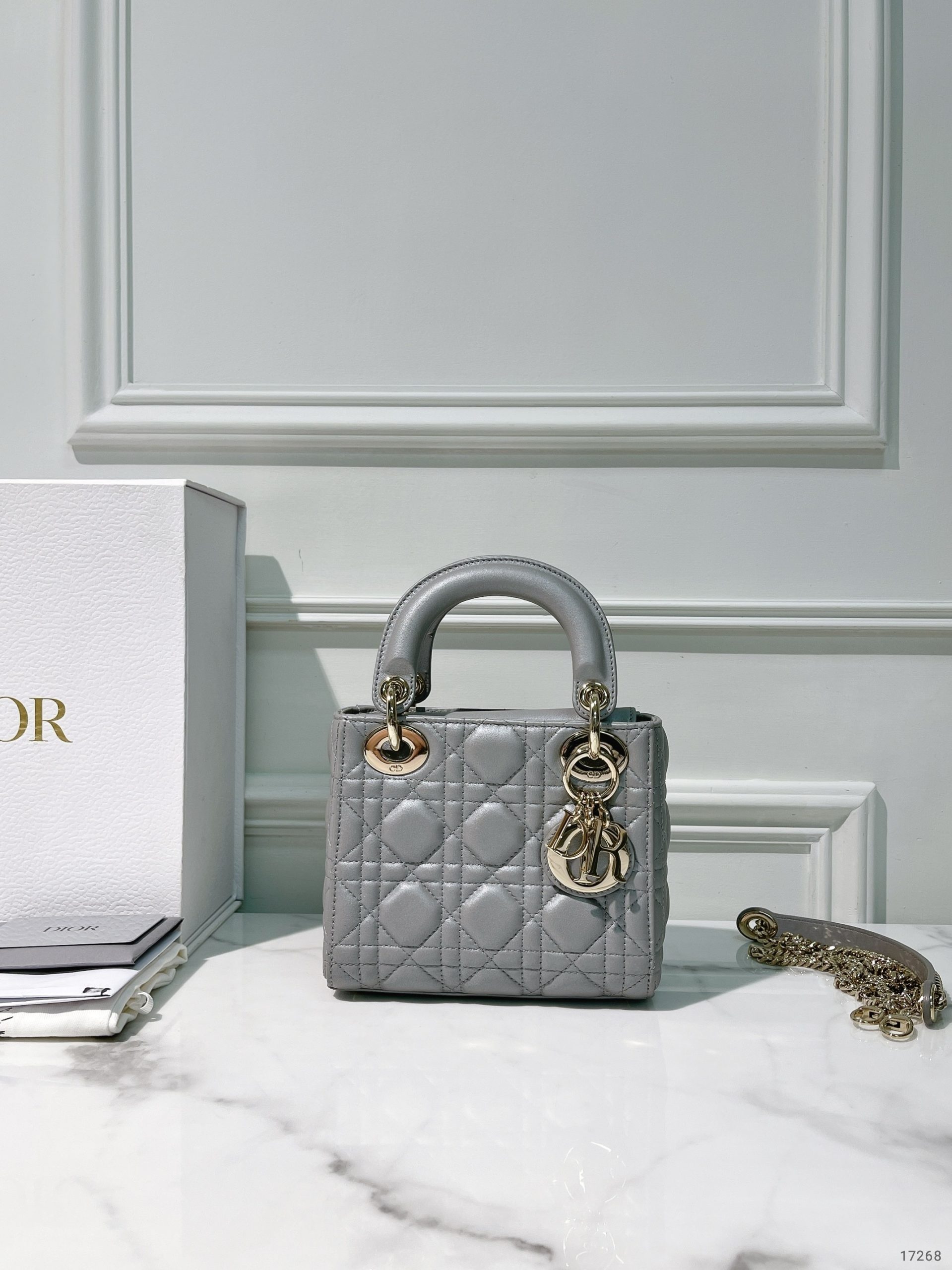 DIOR MINI LADY DIOR, Grey/Gold