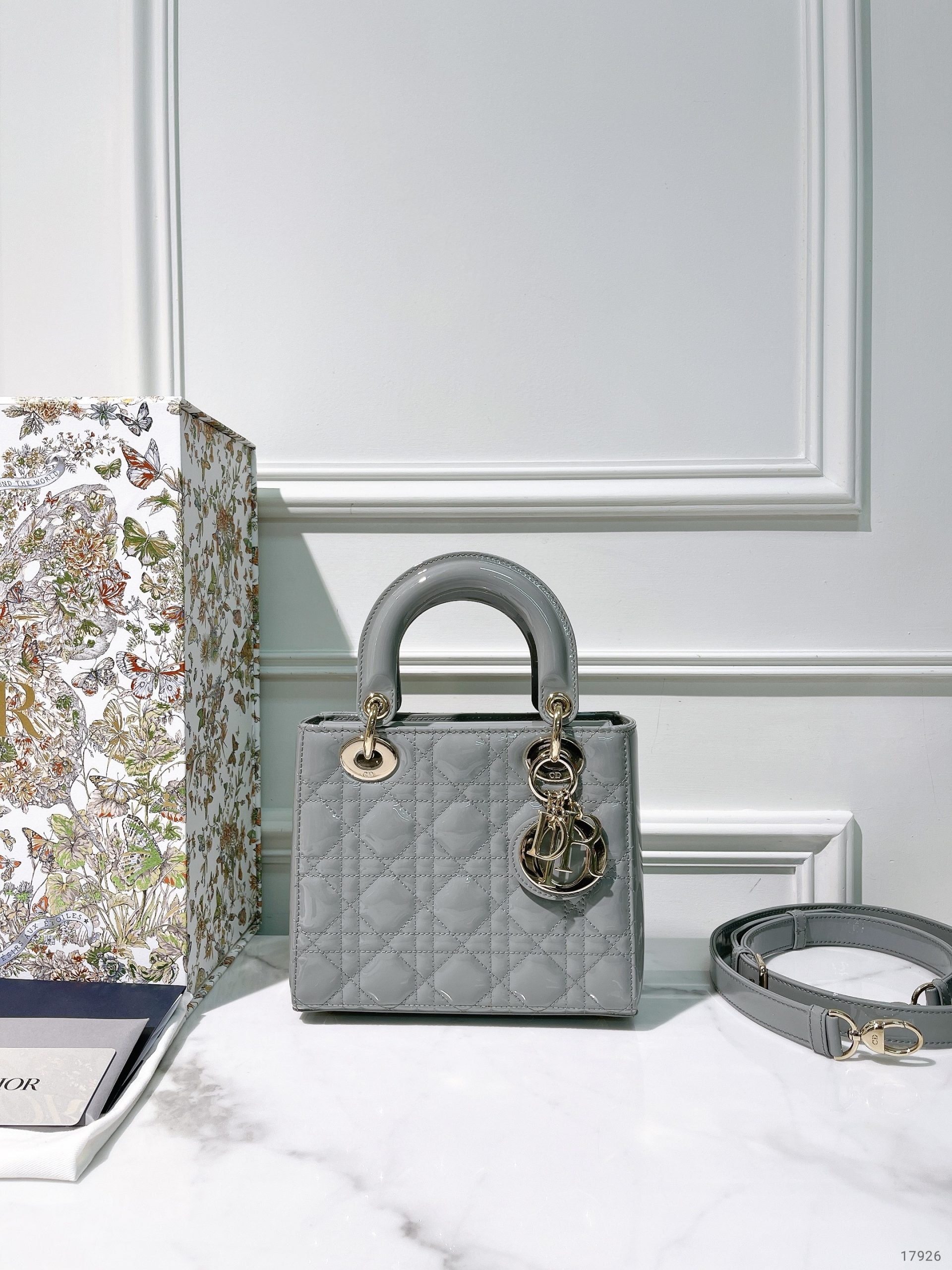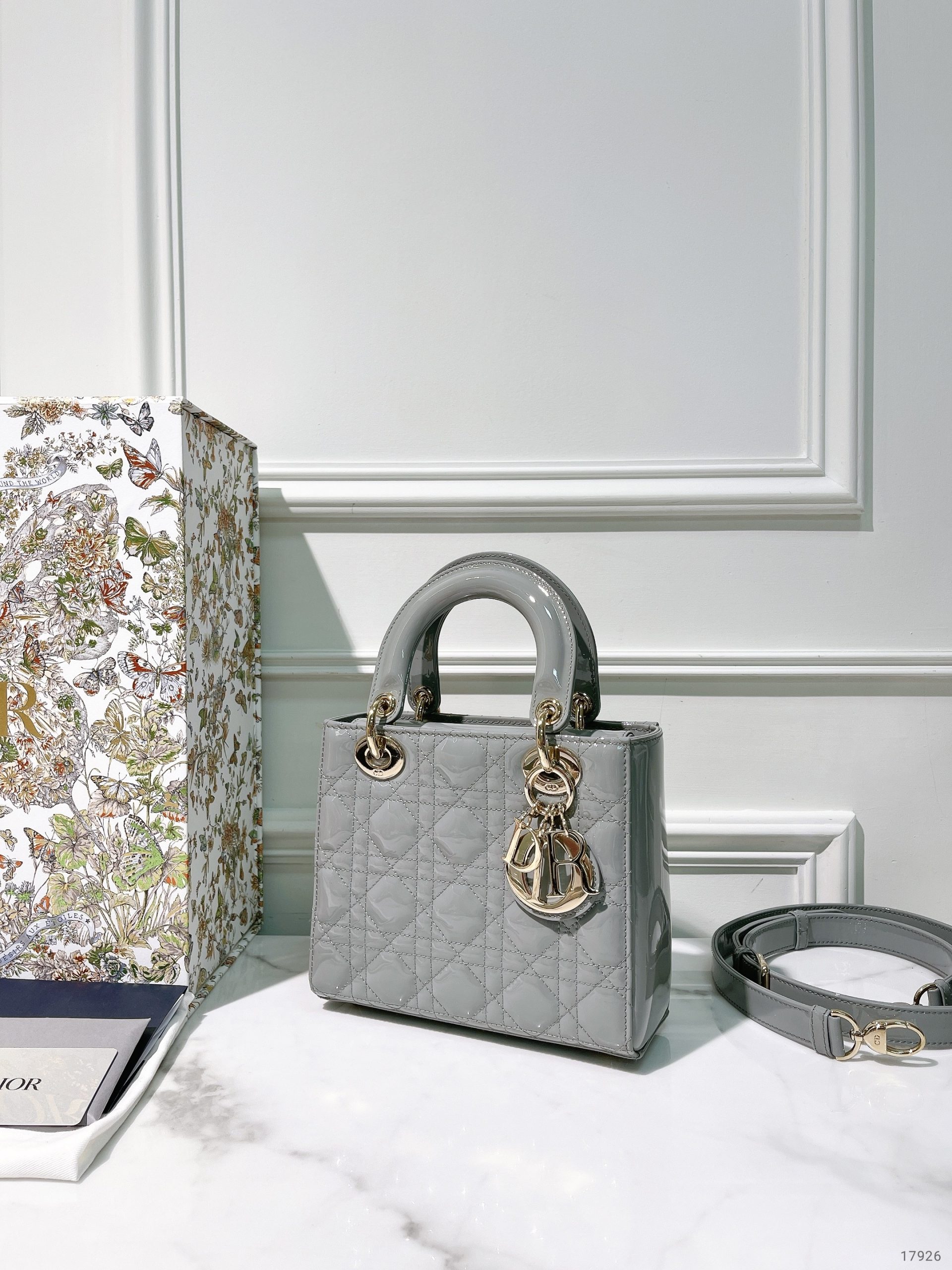 DIOR SMALL LADY DIOR, Grey/Gold