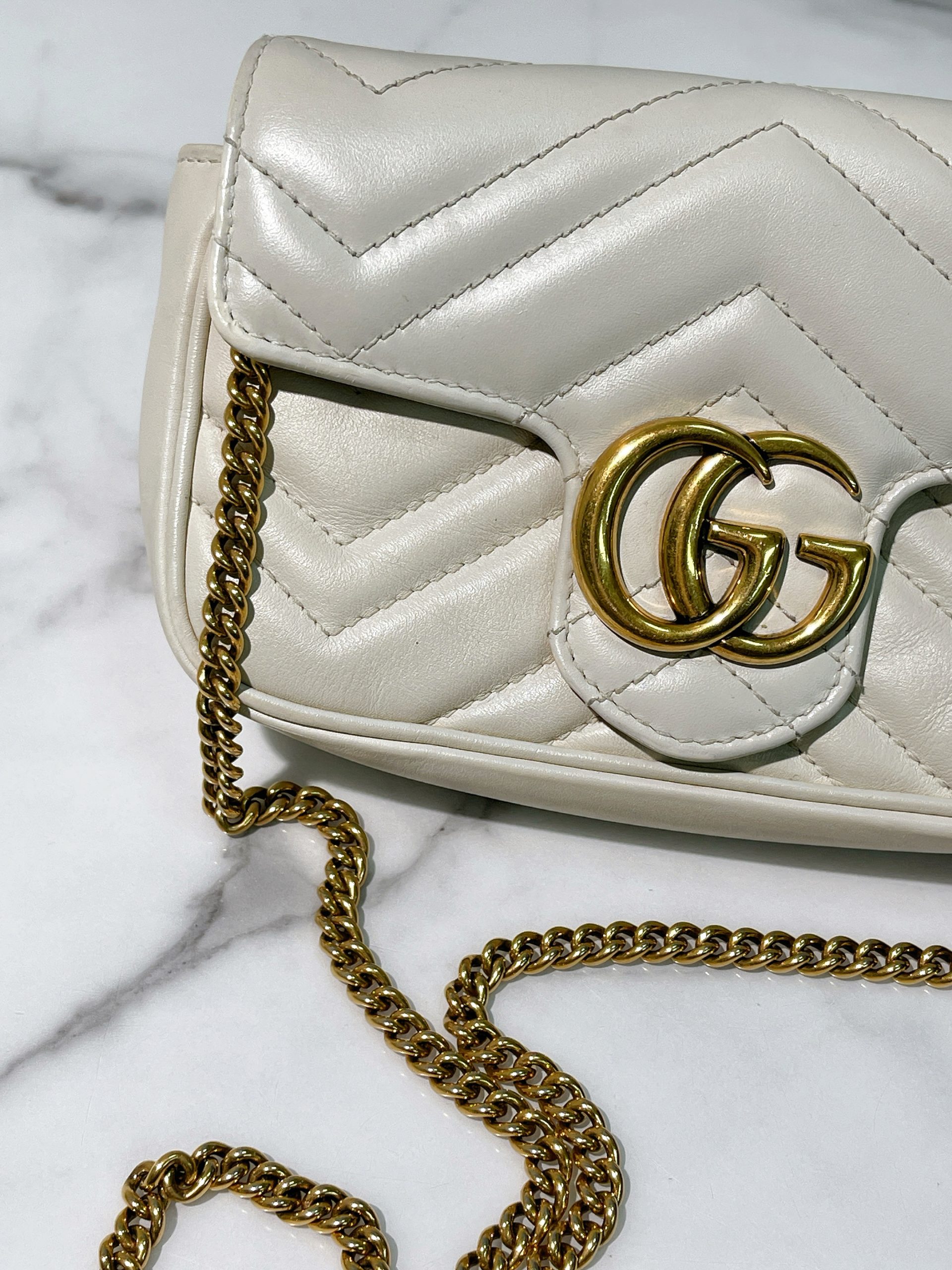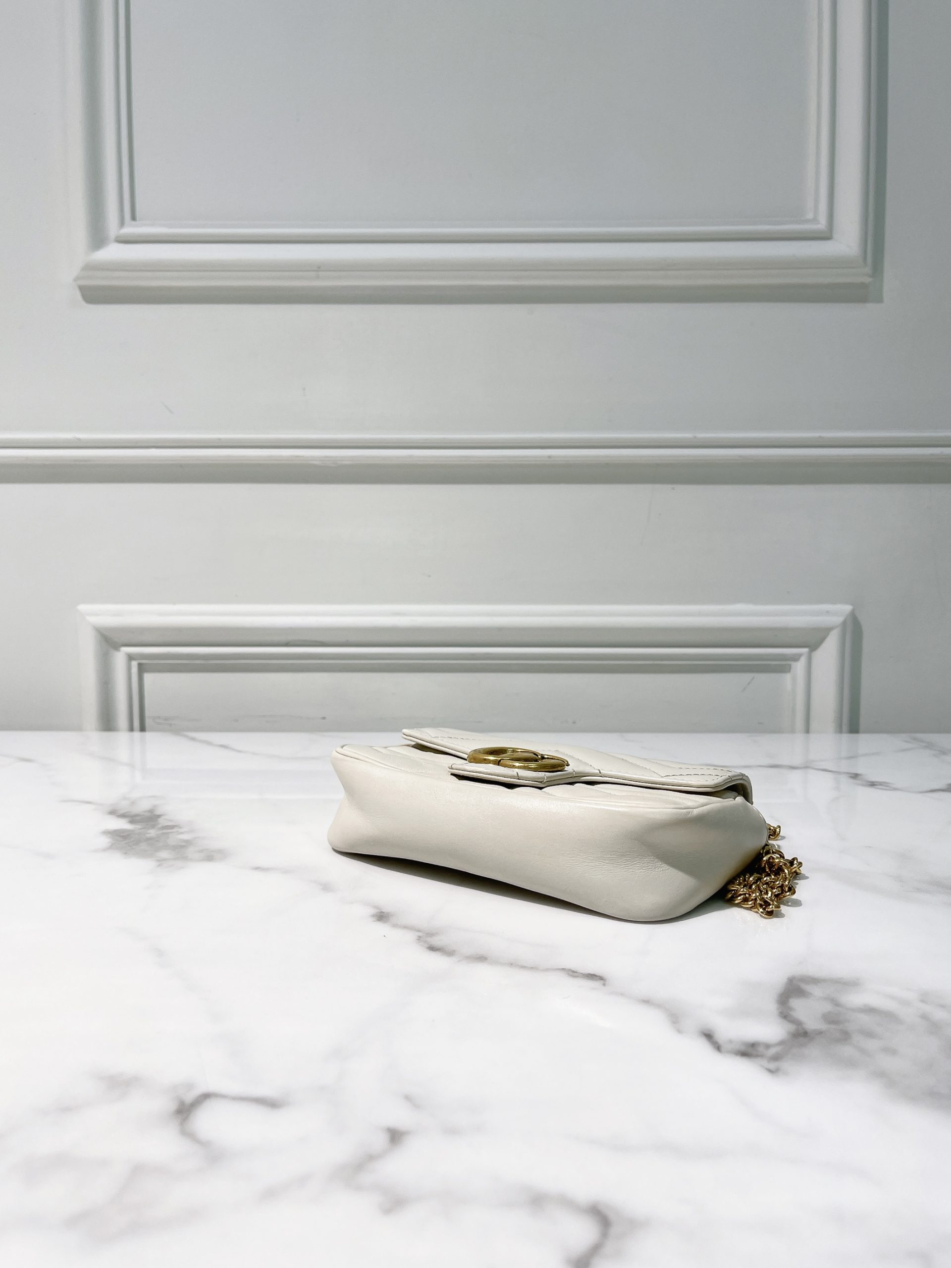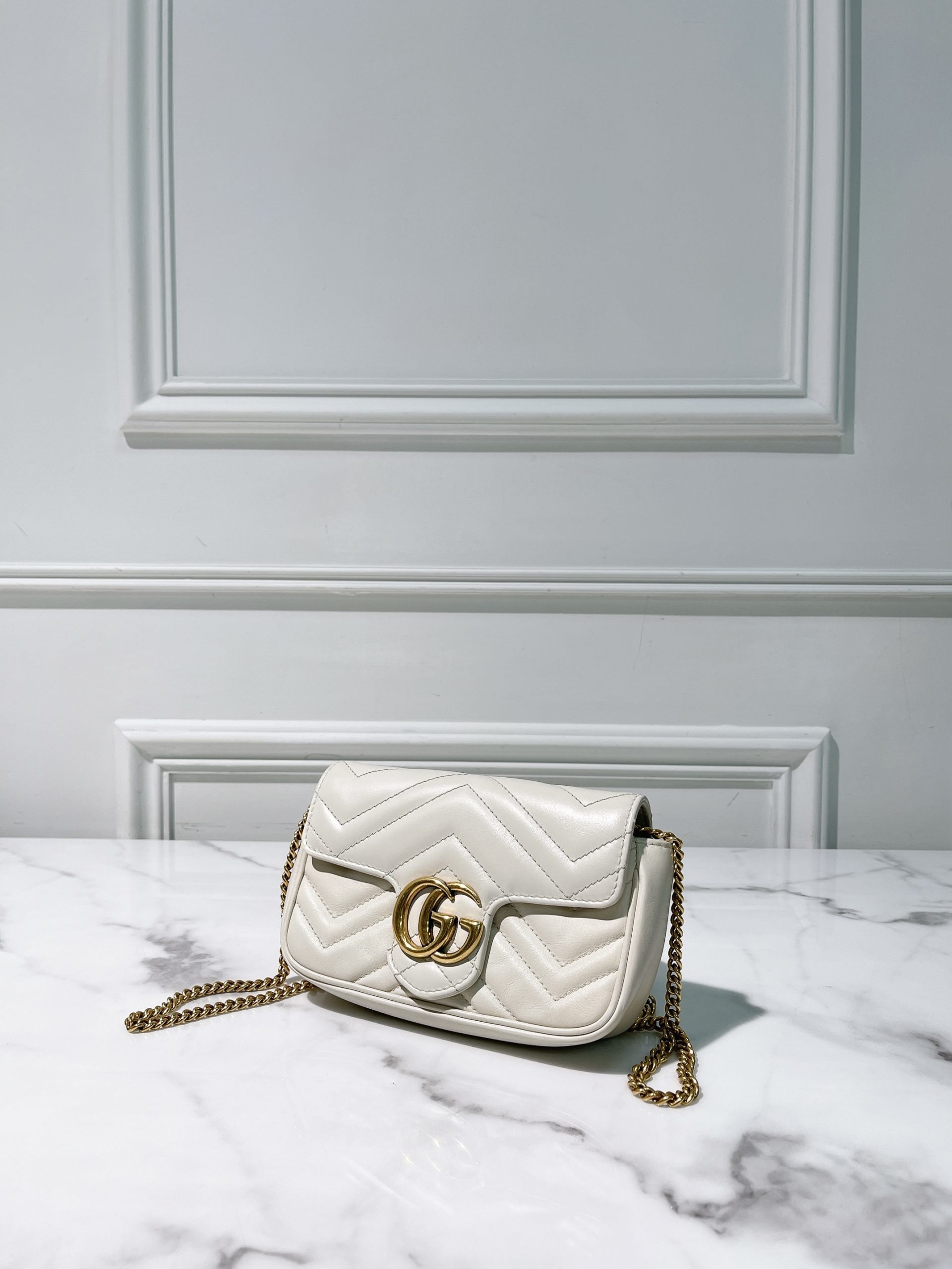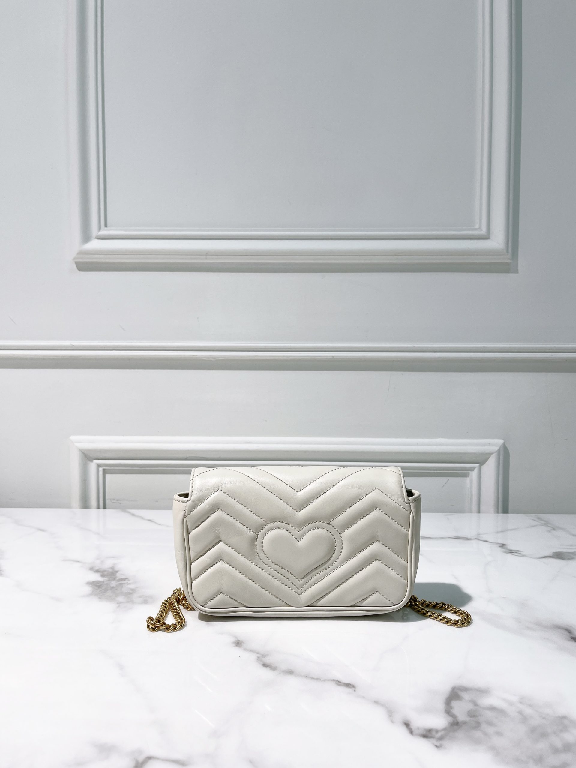 GUCCI MINI MARMONT, White/Gold (No Keyring)