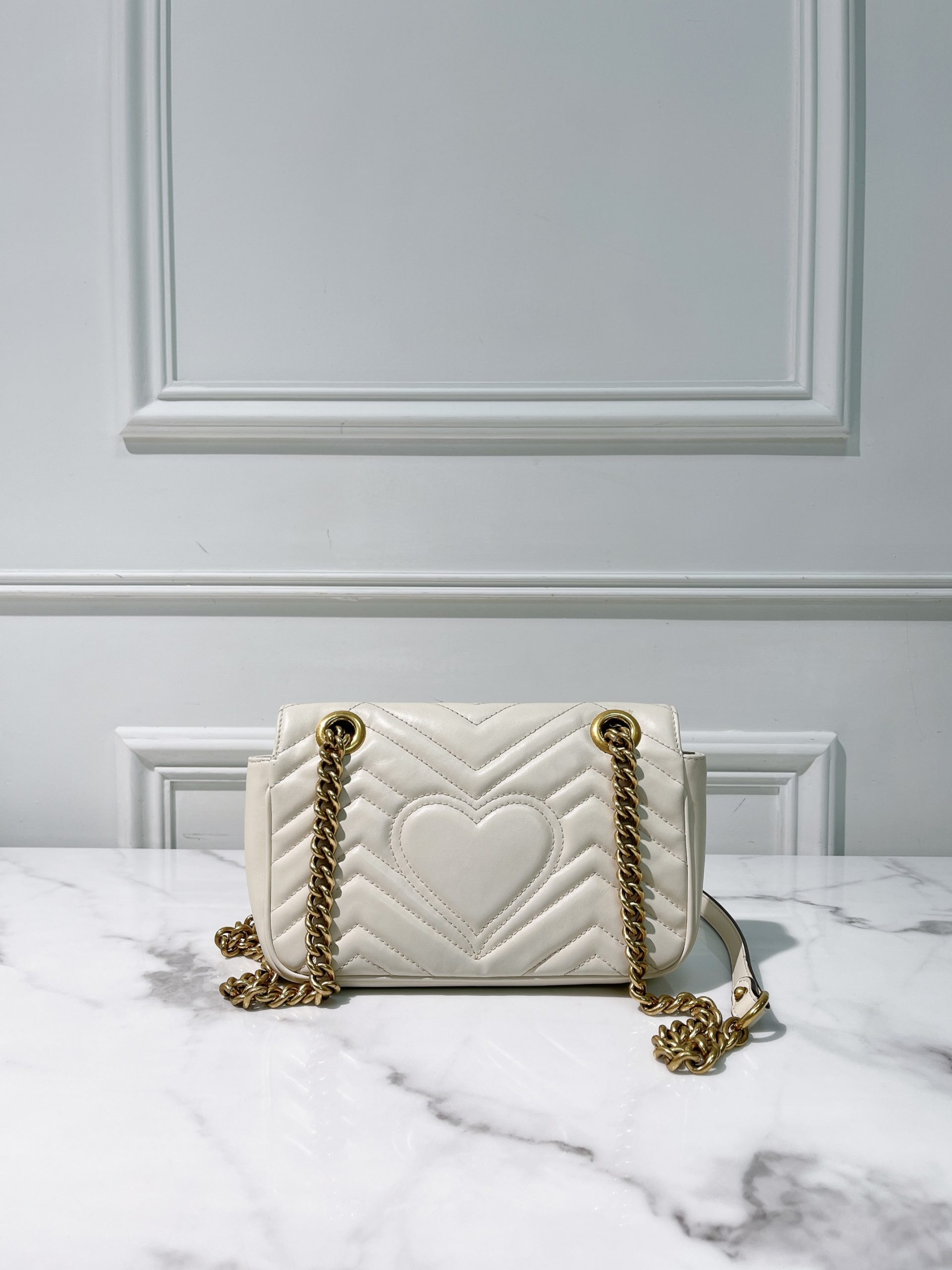 GUCCI SMALL MARMONT, White/Gold
