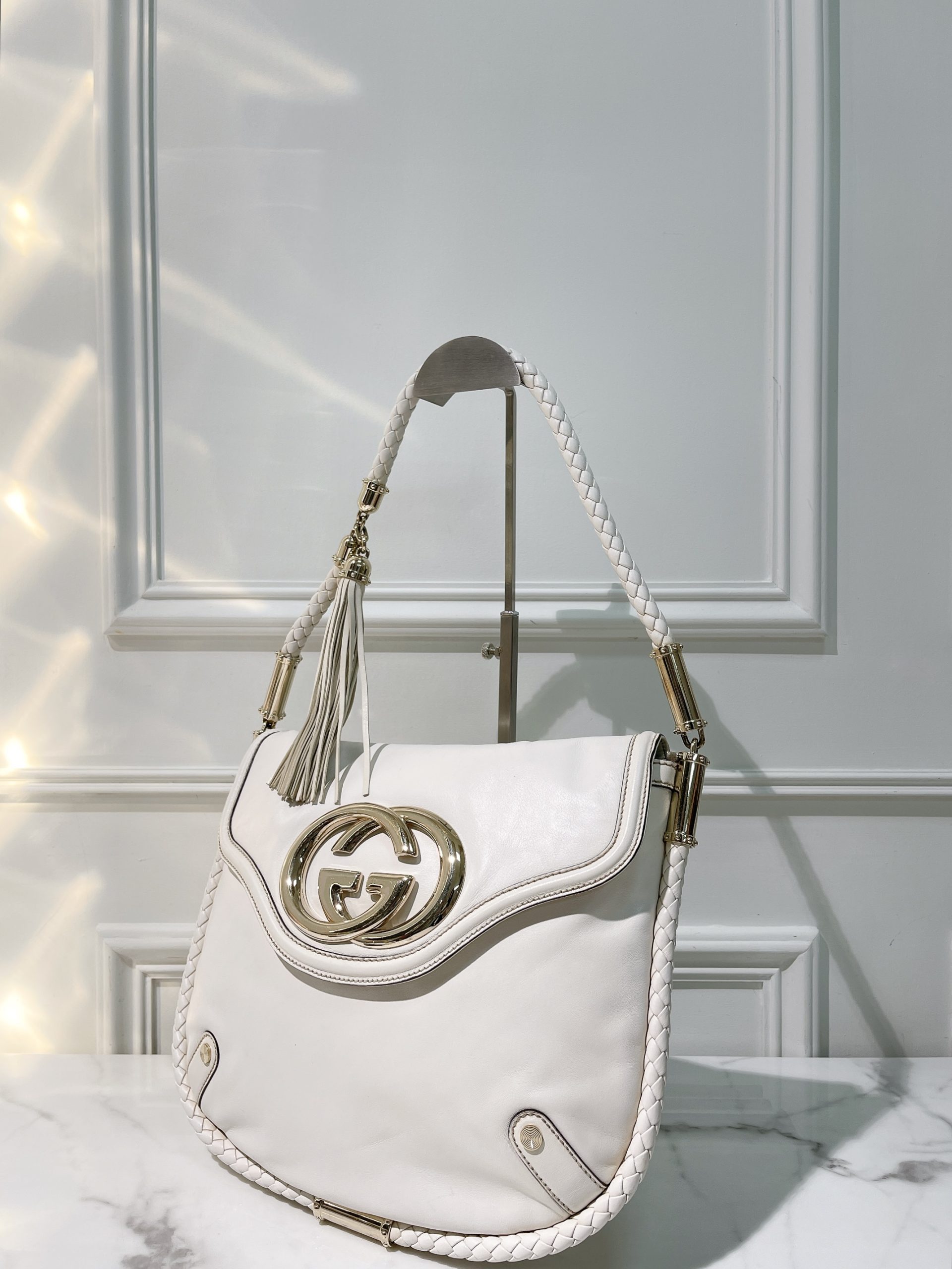 GUCCI VINTAGE HANDBAG, White/Gold