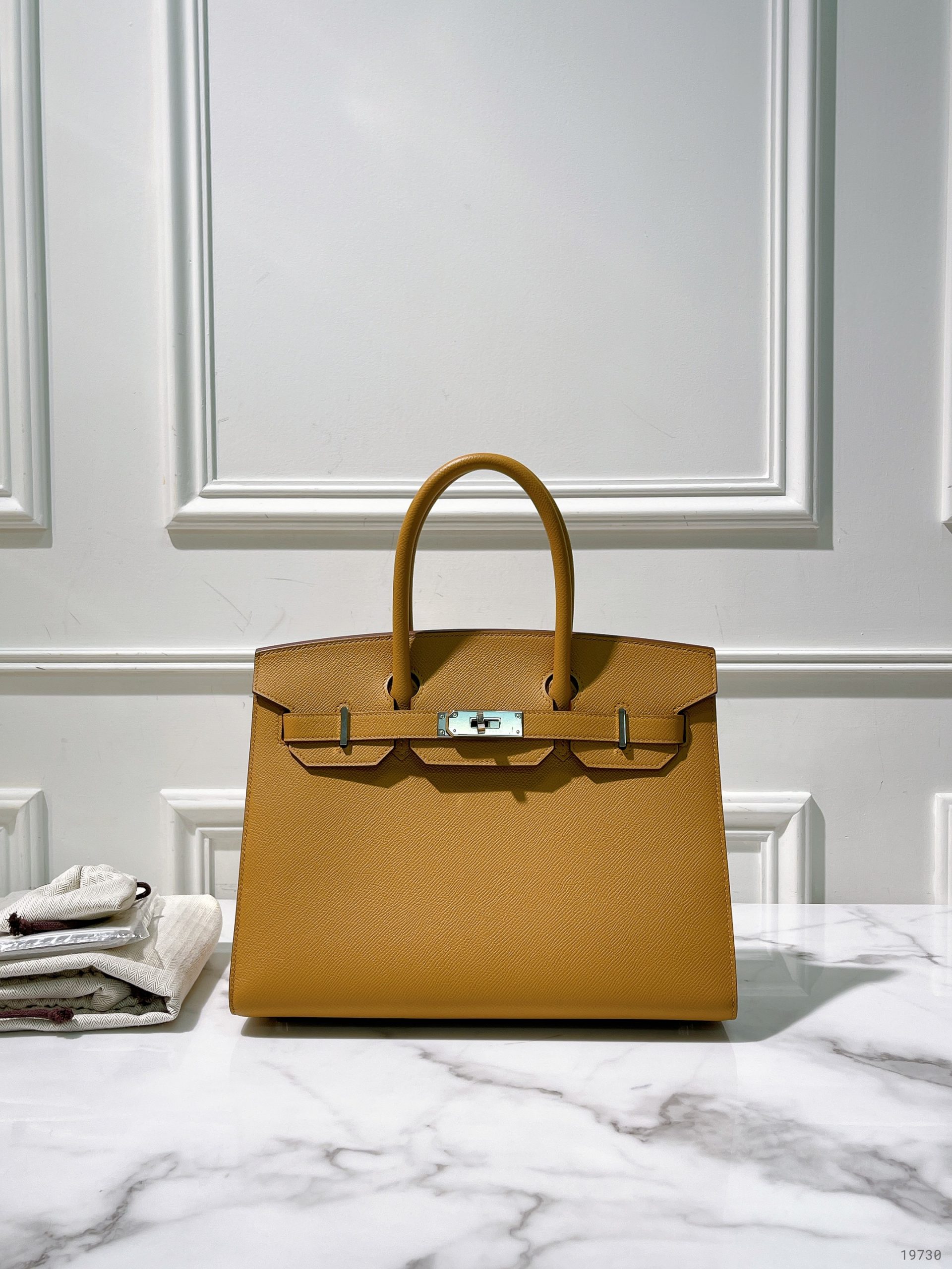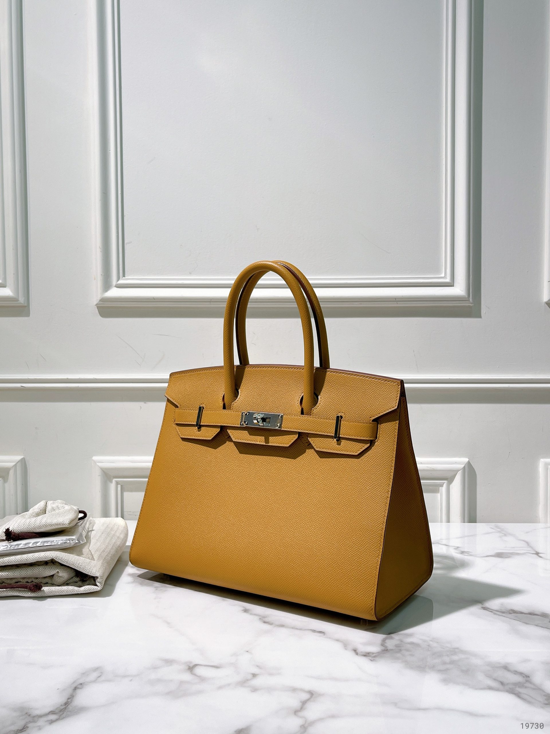 HERMES BIRKIN 30, Caramel/Silver