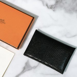 HERMES CALVI CARD HOLDER, Black/Silver