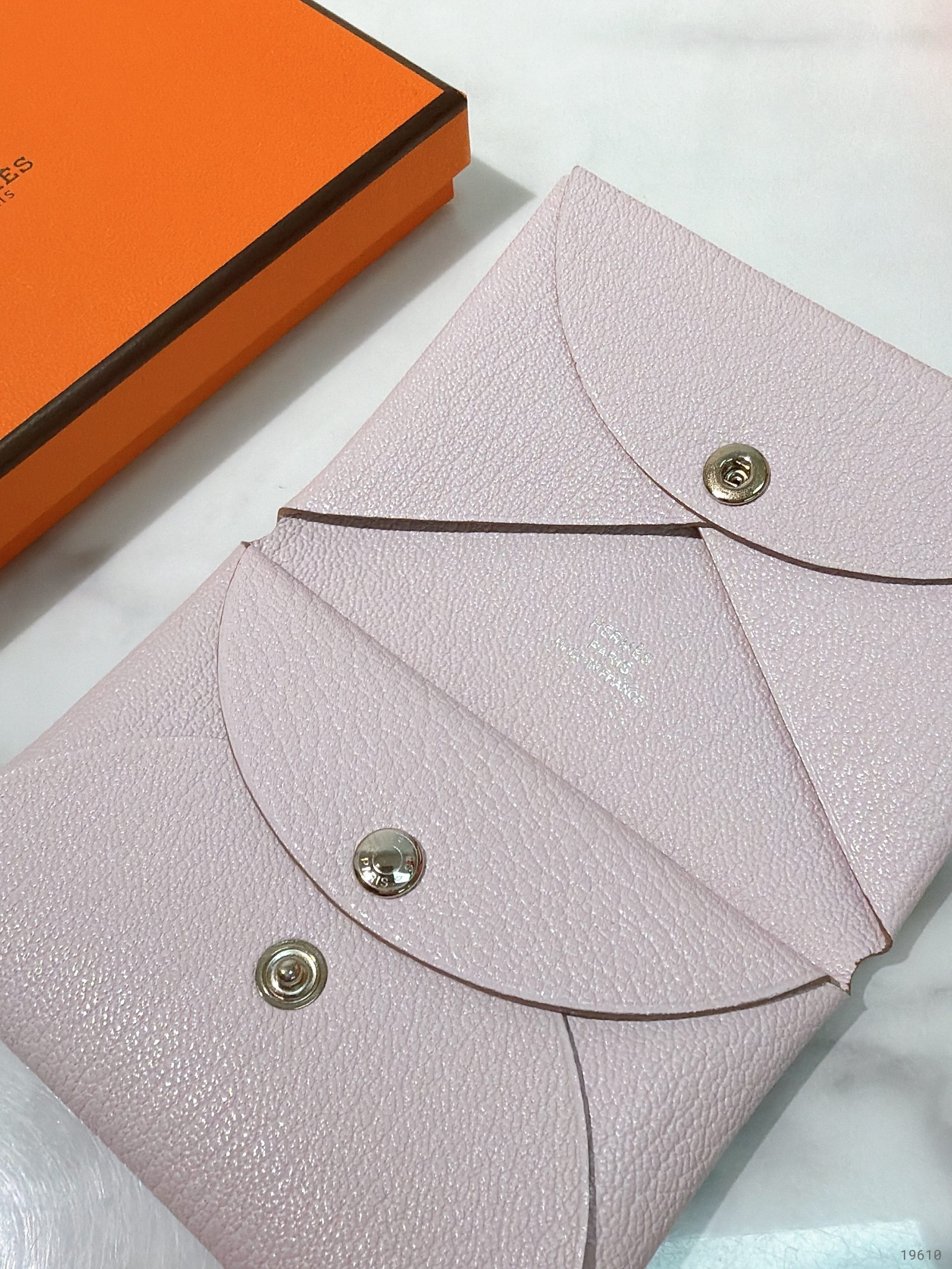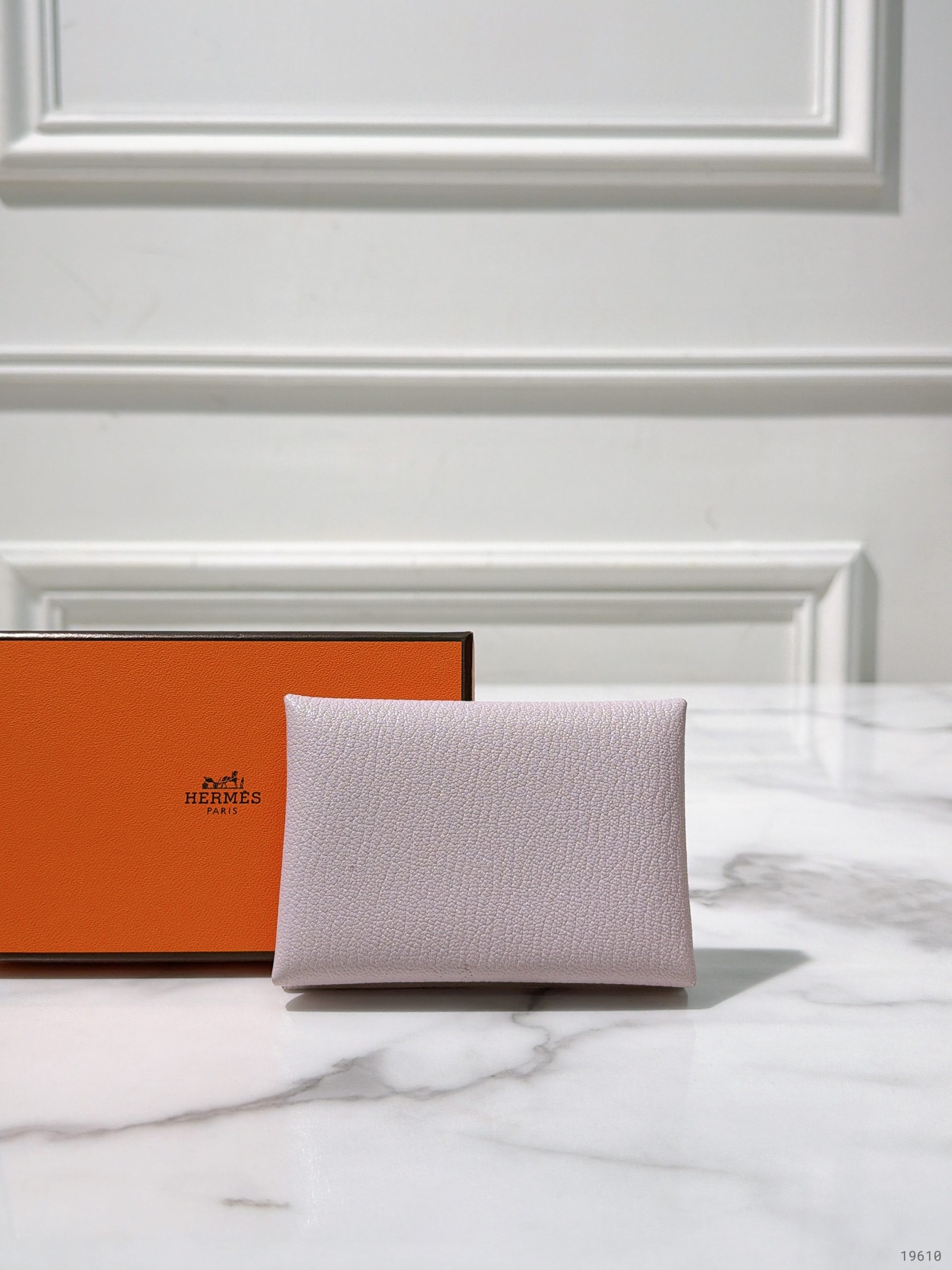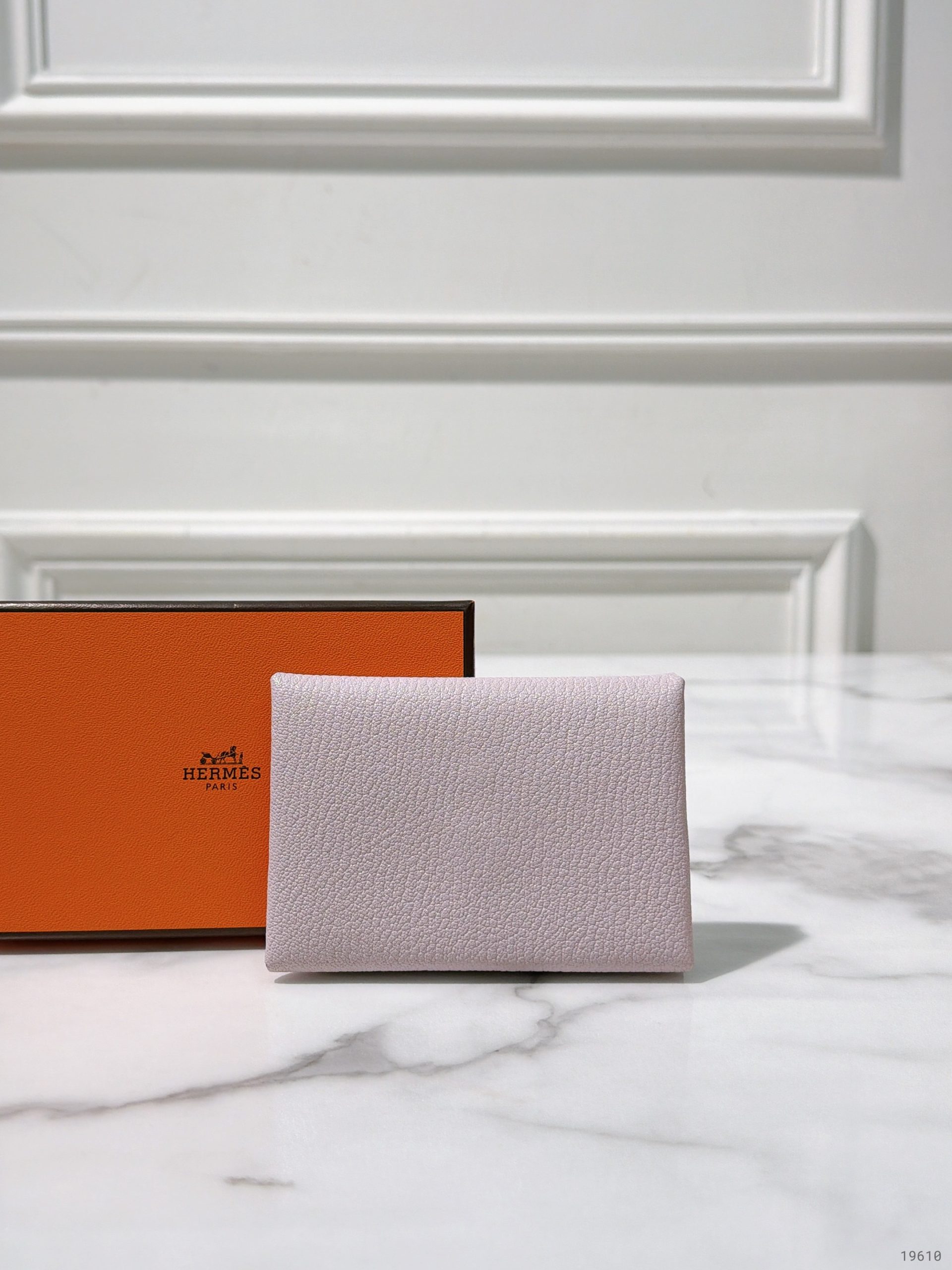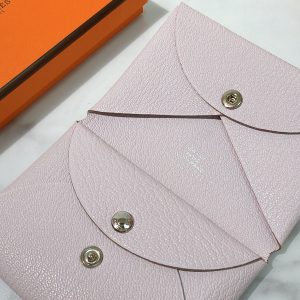 HERMES DUO CALVI COMPACT CARD HOLDER, Mauve Pale/Silver