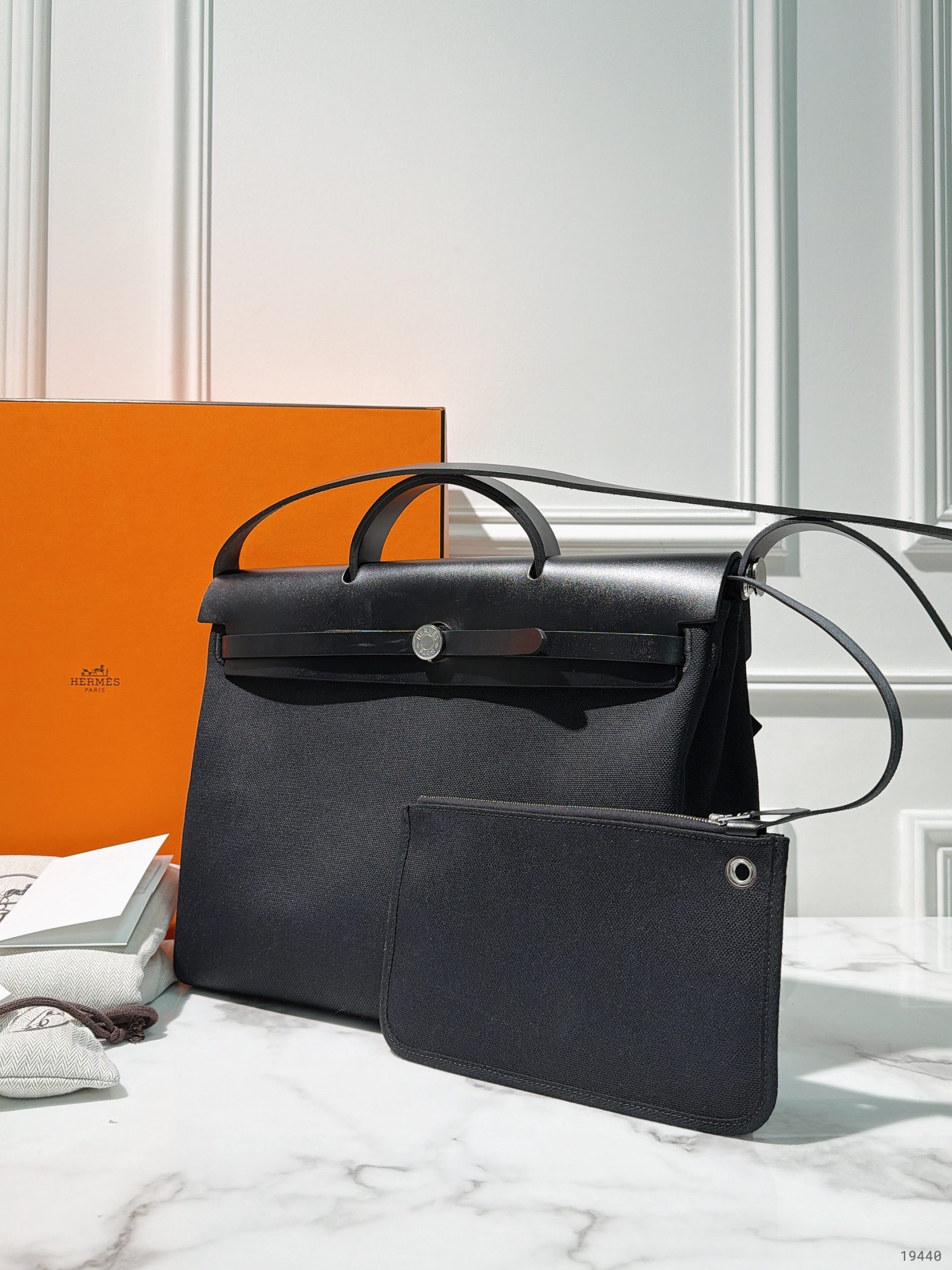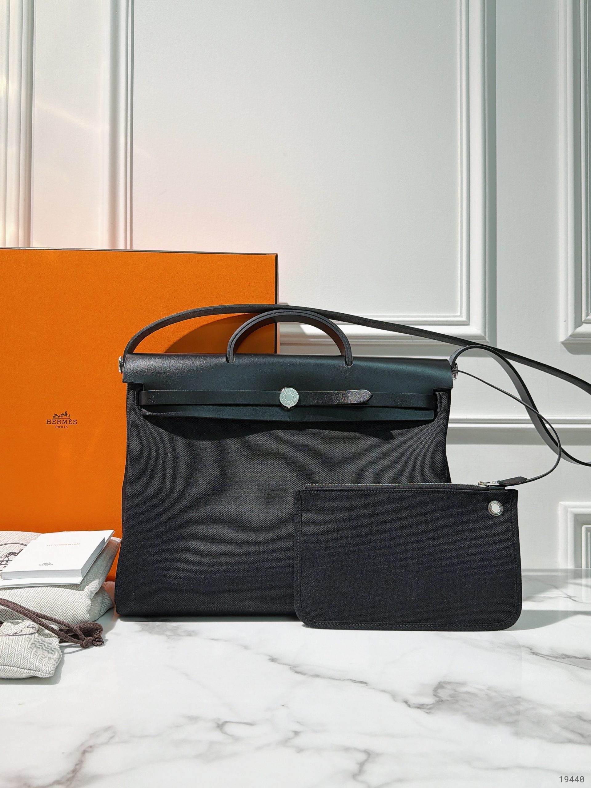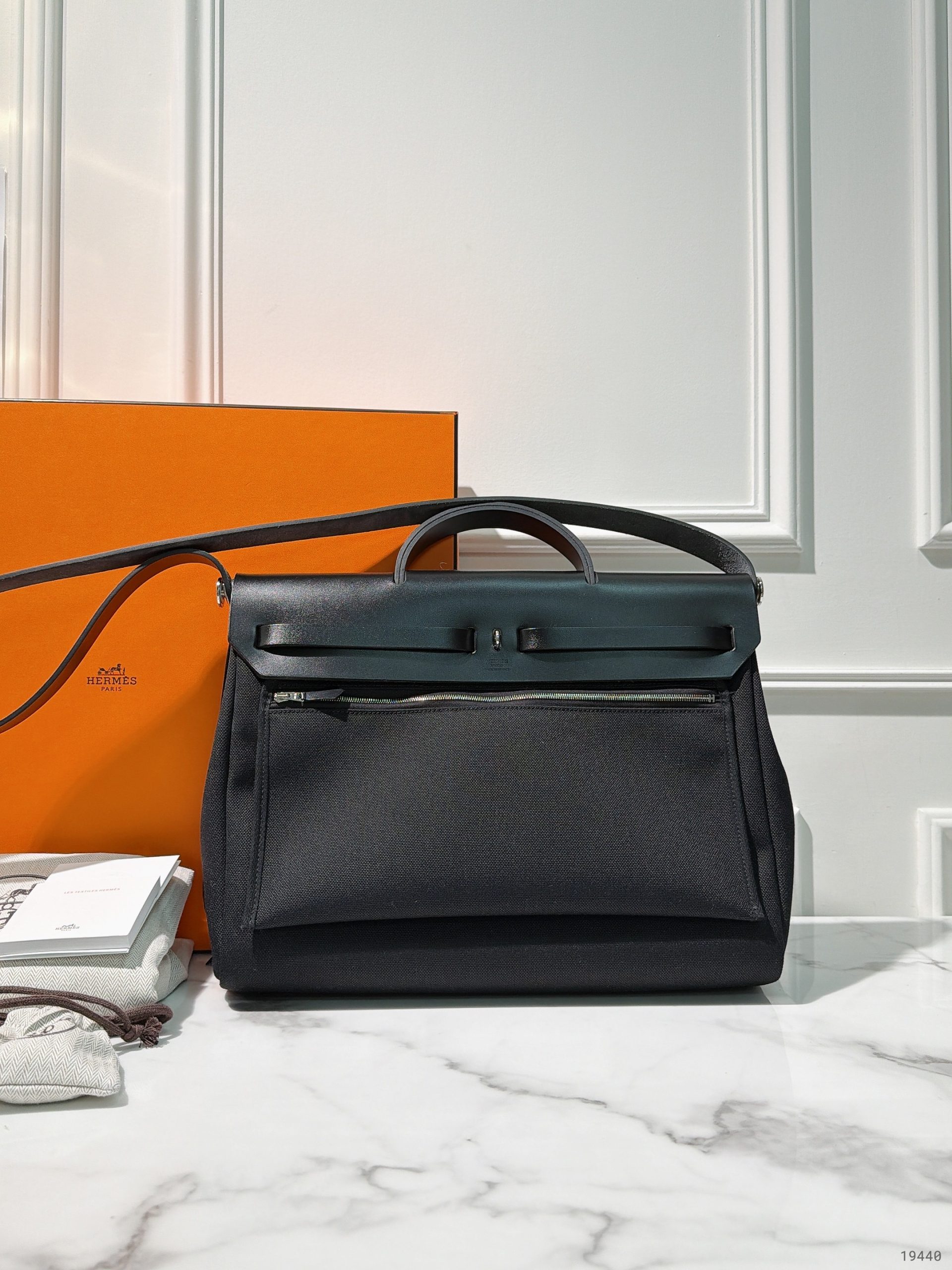 HERMES HERBAG MENSSENGER 39, Black/Silver
