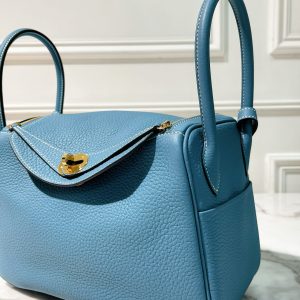 / HERMES LINDY 26, Bleu Jean/Gold