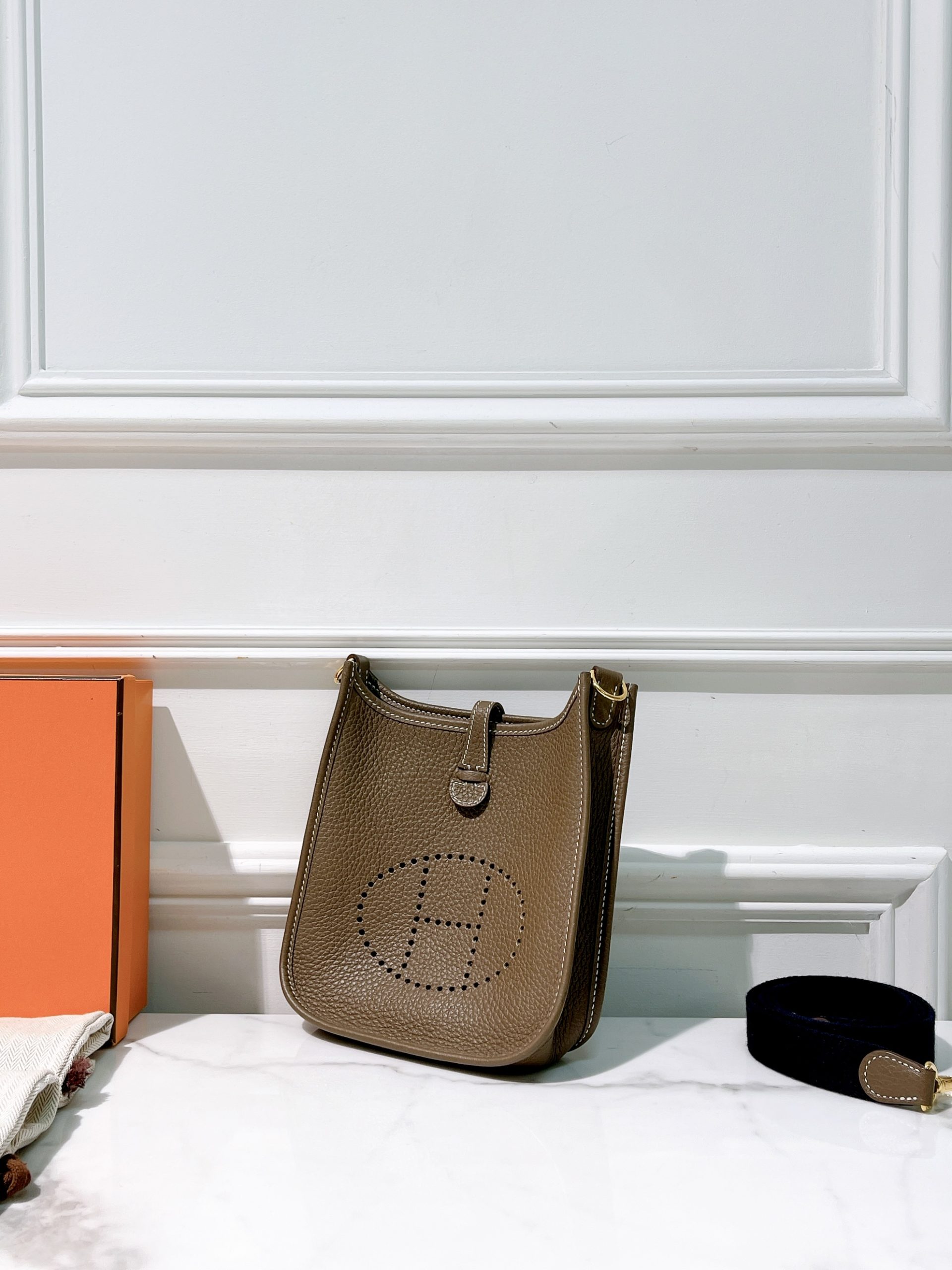 HERMES MINI EVELYNE, Etoupe/Gold