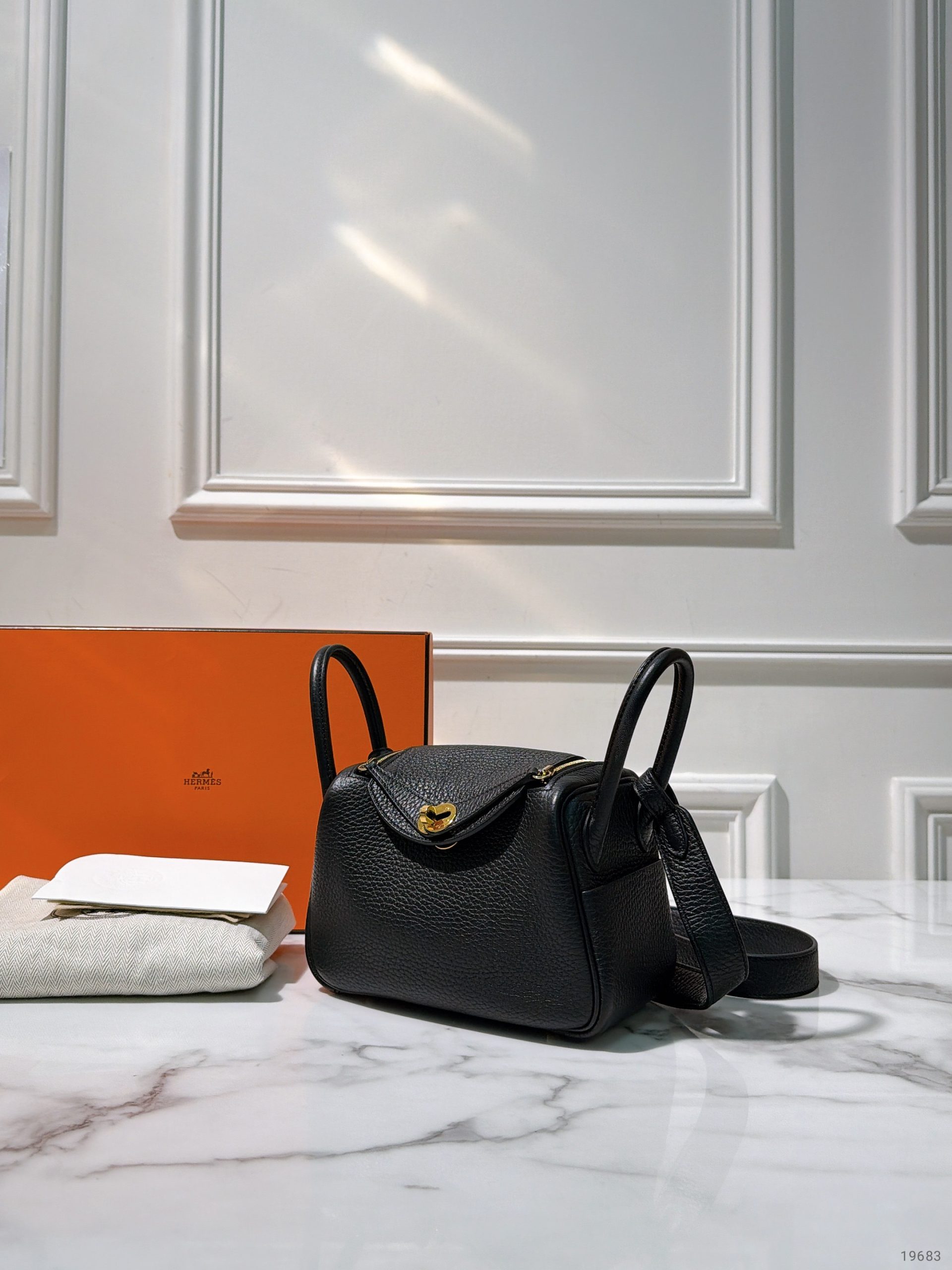HERMES MINI LINDY, Noir/Gold