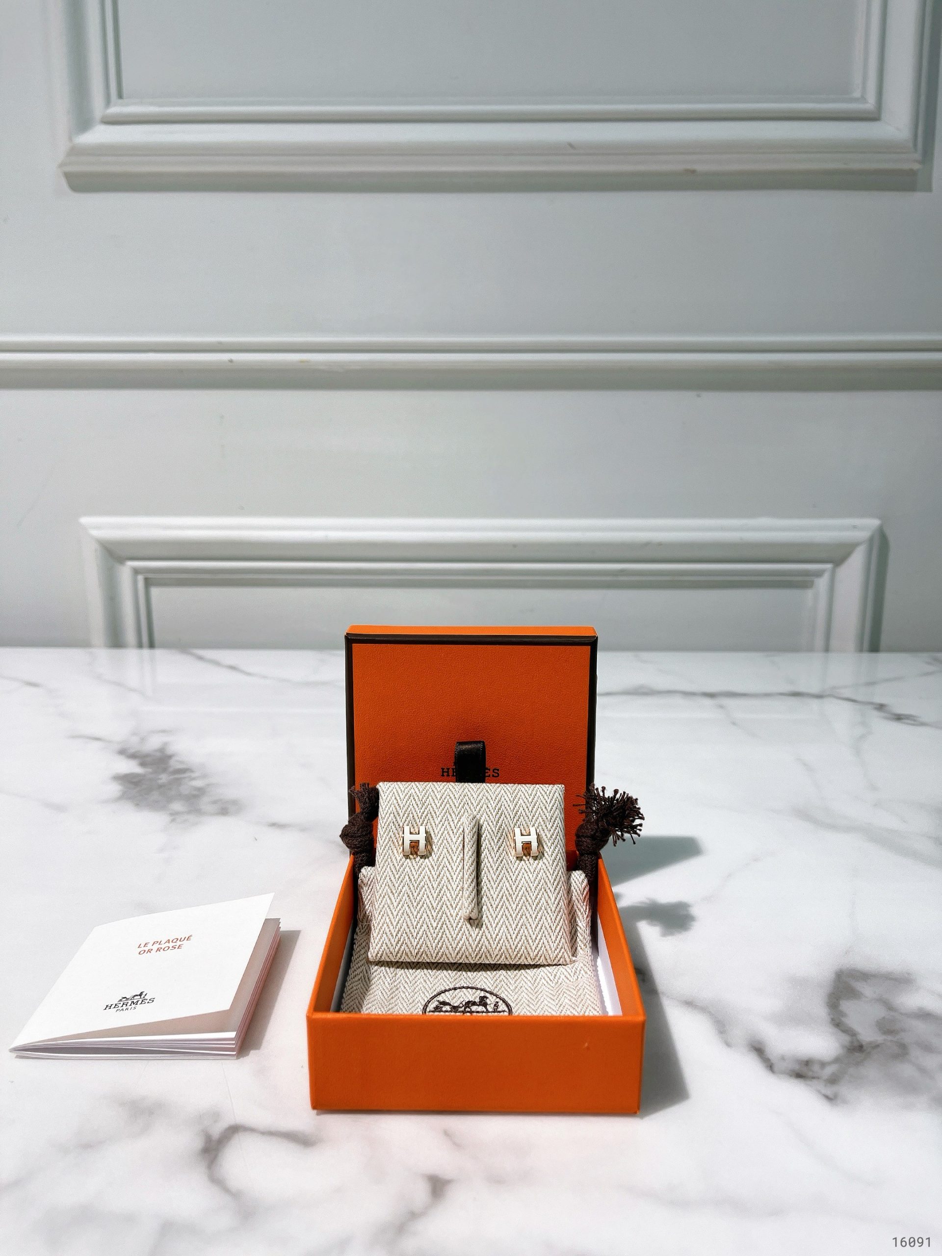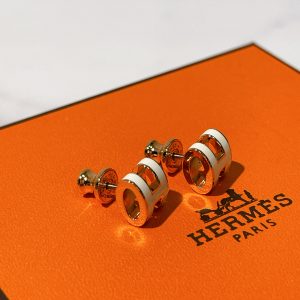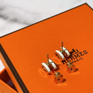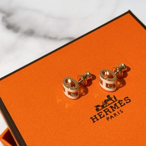 HERMES MINI POP H EARRINGS, Blanc/ Rose Gold