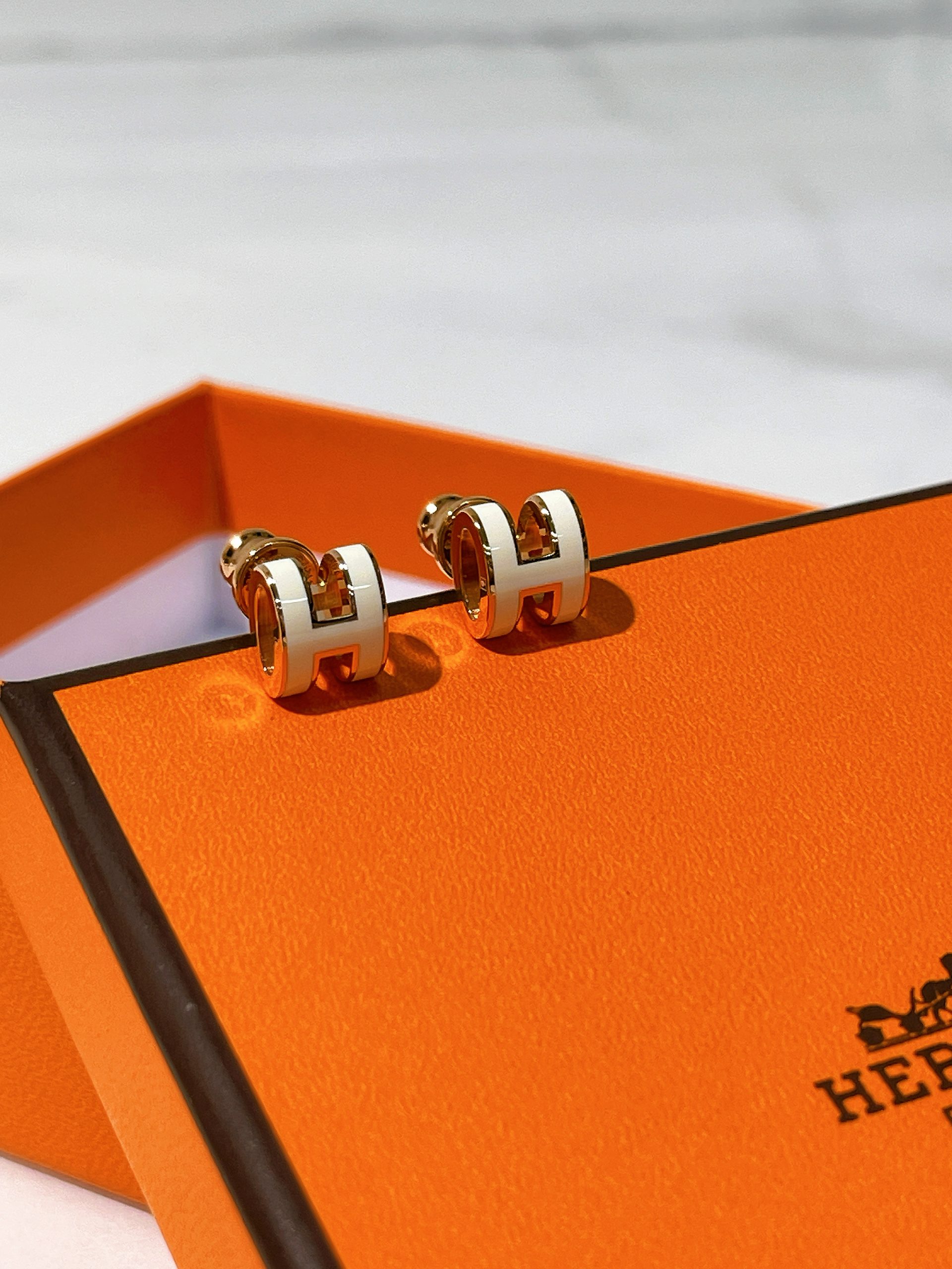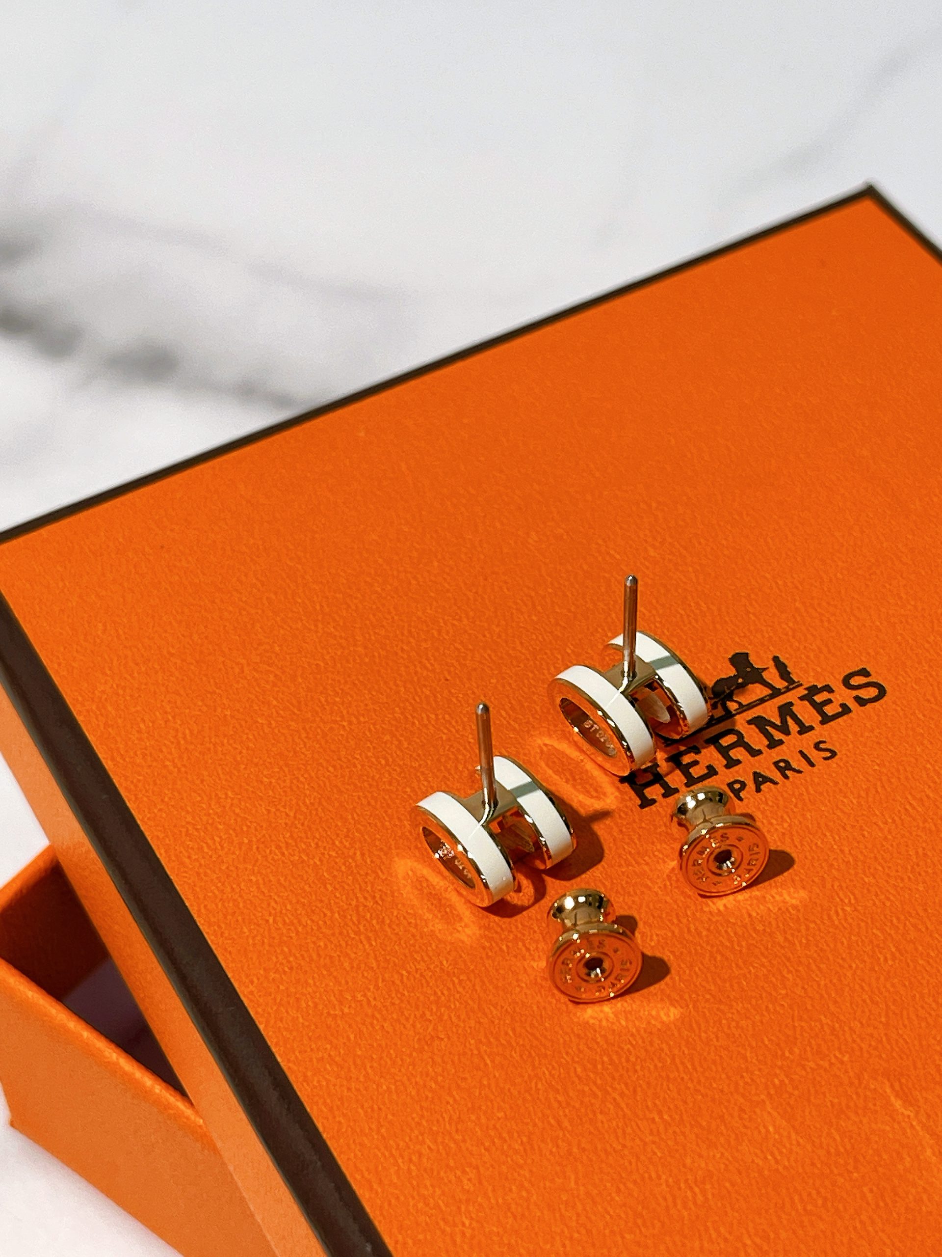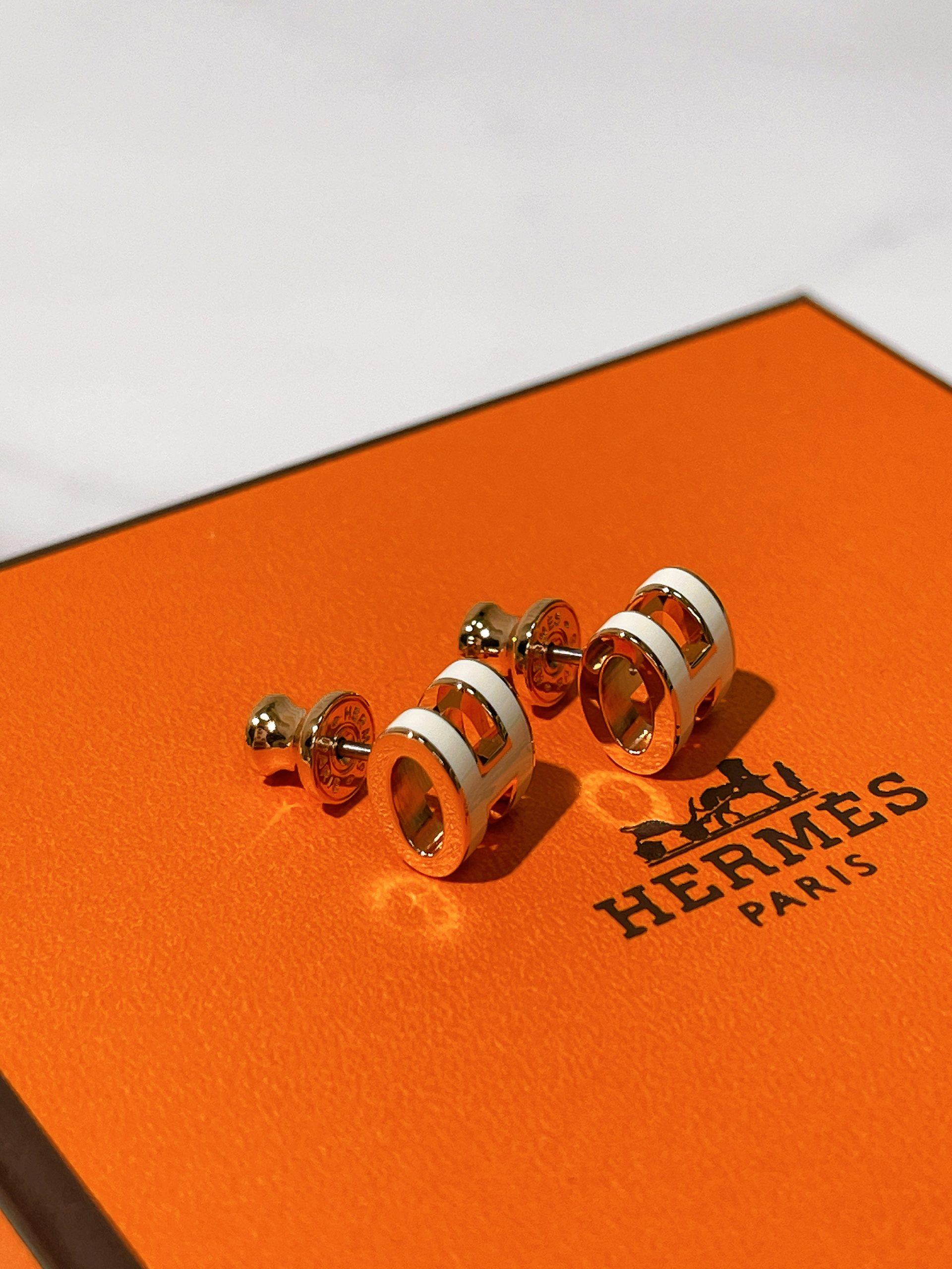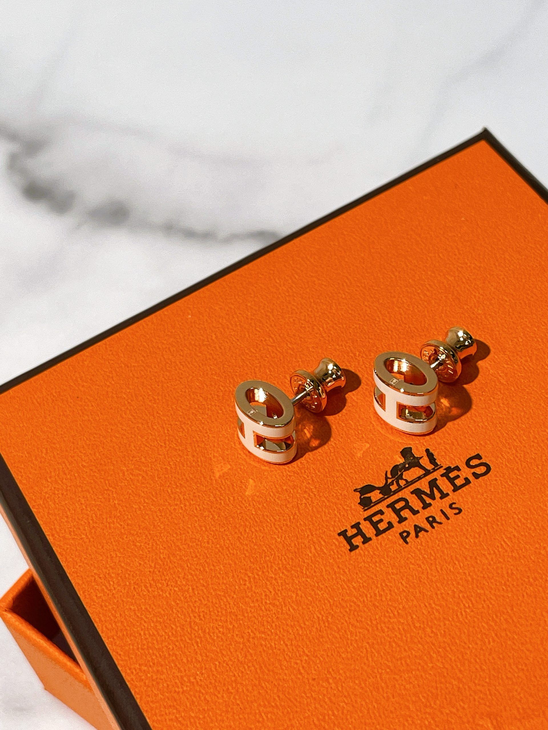 / HERMES MINI POP H EARRINGS, Blanc/ Rose Gold